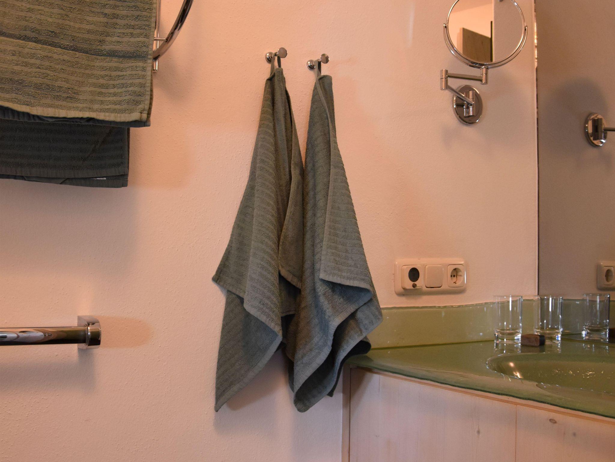 Bad: Dusche, Waschmaschine, Föhn, ein Satz Handtücher
