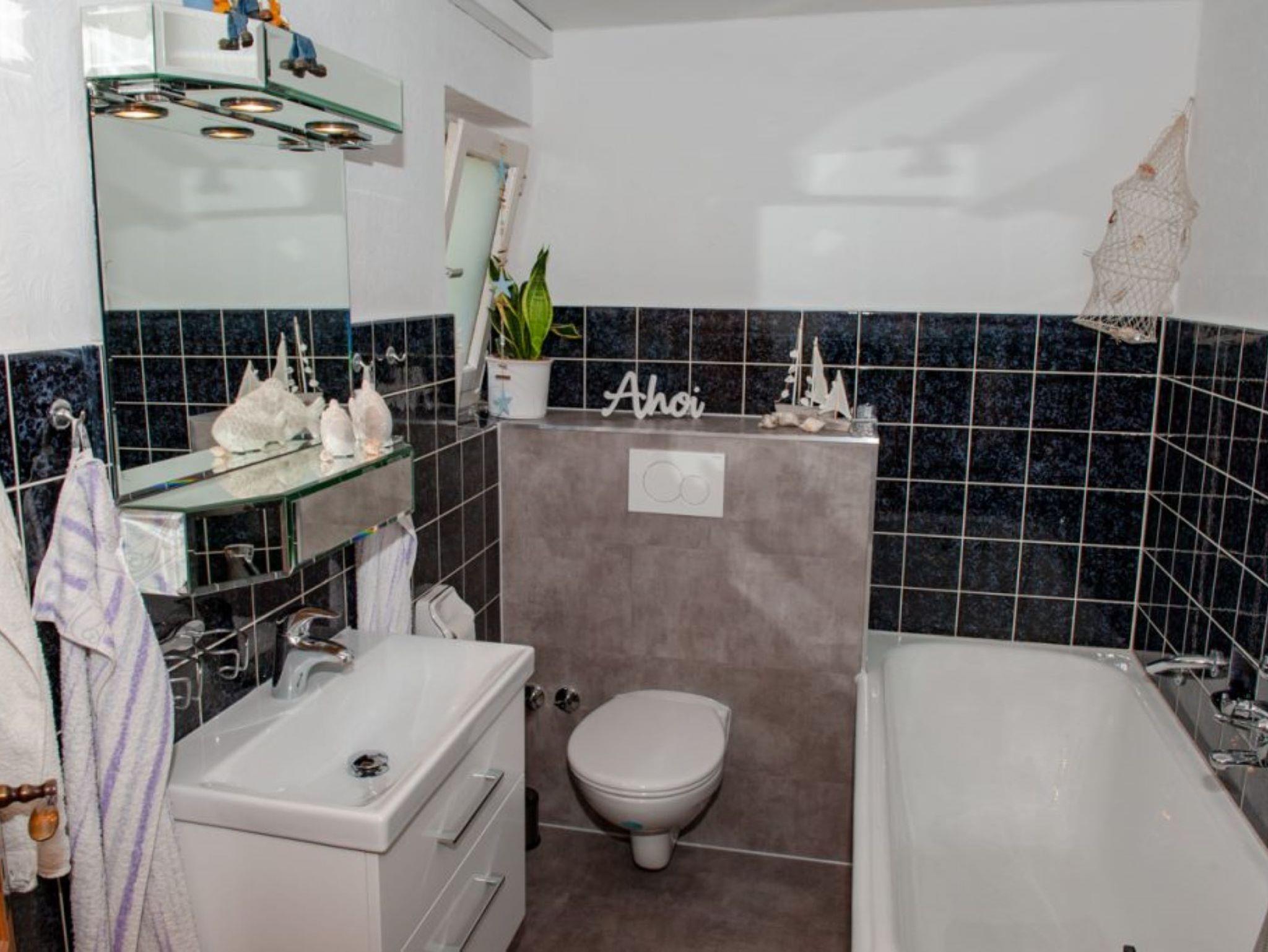 Im Wohnraum stehen ein modernes Ecksofa, ein Fernseher (mit Sat-Empfang) sowie ein Esstisch mit 6 Stühlen zur Verfügung. Die große Küche ist mit einer Eckbank, einem Tisch mit 4 Stühlen, einem Geschirrspüler, einem Kühlschrank mit Gefrierfach sowie einer Mikrowelle ausgestattet. Selbstverständlich kann auch WLAN (Glasfaser) genutzt werden. Bitte haben Sie Verständnis, dass das Rauchen und Haltung von Tieren in der Wohnung nicht gestattet sind.