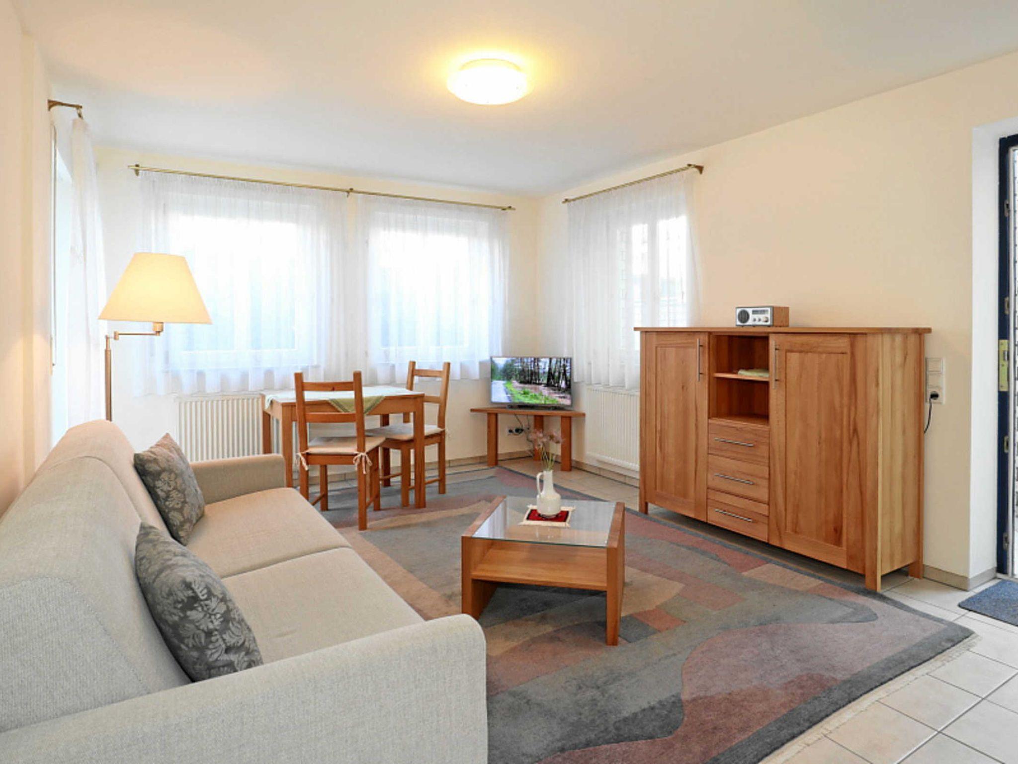 Kostenloses WLAN-Internet. Wohnzimmer: mit Schlafcouch 1,40 m breit, Couchtisch, ausziehbarem Esstisch, TV und Radio. Schlafzimmer mit Doppelbett oder 2 Einzelbetten und grossem Schrank. Badezimmer mit Dusche und WC. Küche, Mikrowelle, Backofen, Kaffeemaschine, Toaster und vielem mehr. EXTRAS inklusive: WLAN-Internet, Parkplatz, Waschmaschine (pro Waschgang 5,00 €), Abstellraum für Fahrräder, Bettwäsche, Handtücher, Kinderbett. Die Wohnung ist ideal für 1-3 Erwachsene, für Familien mit bis zu 2 Kindern, für Business, Wohnen auf Zeit und auch Monteure. Rauchen nur auf der Terrasse, nicht in der Wohnung. Bitte keine Haustiere. Abholung vom Bahnhof möglich.