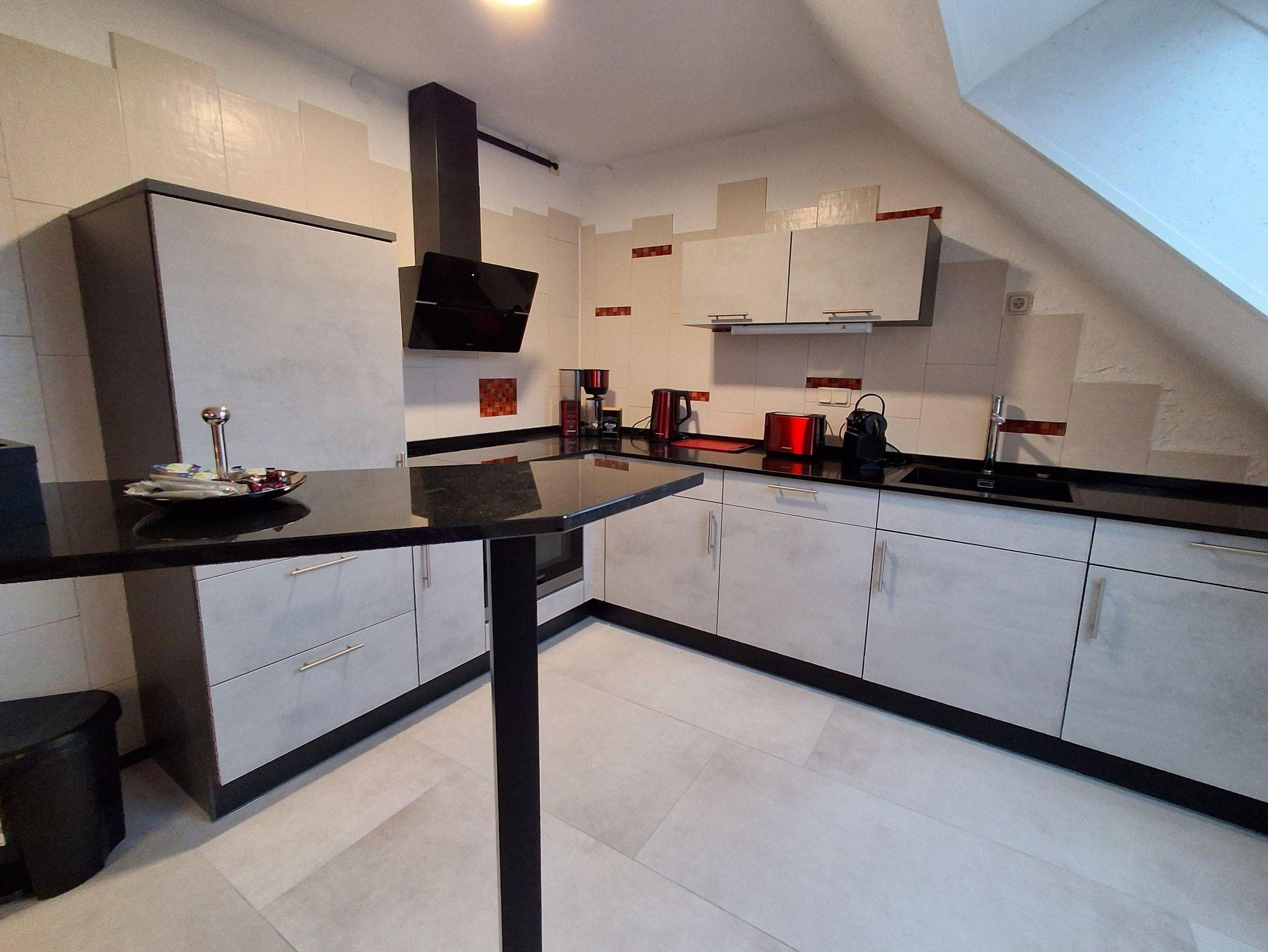 Im Essbereich laden ein Tisch mit vier Stühlen sowie ein Schrank mit Sekt- und Weingläsern zu gemütlichen Mahlzeiten oder einem Glas am Abend ein. Die voll ausgestattete Küche lässt keine Wünsche offen und bietet alles, was Sie für die Selbstverpflegung benötigen.