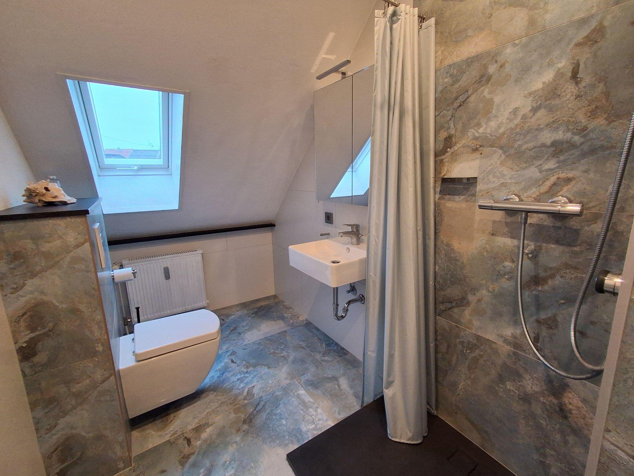 Abgerundet wird das Angebot durch das modern gestaltete Badezimmer mit Dusche und WC.