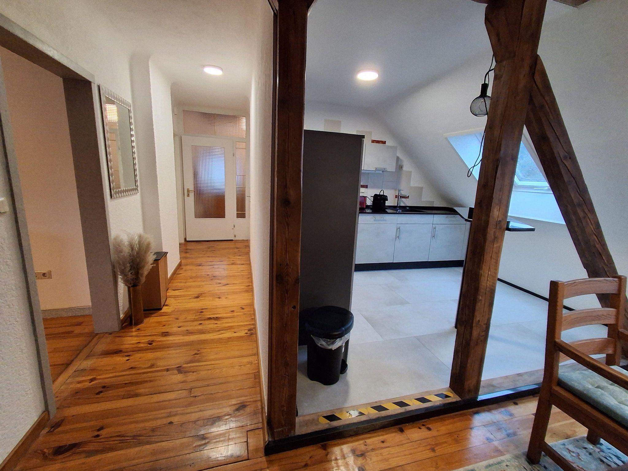 Die stilvoll eingerichtete 65 m² große Wohnung bietet Platz für 1 bis 4 Personen und überzeugt mit einer durchdachten, komfortablen Ausstattung. Bereits im Flur steht eine praktische Garderobe zur Verfügung.