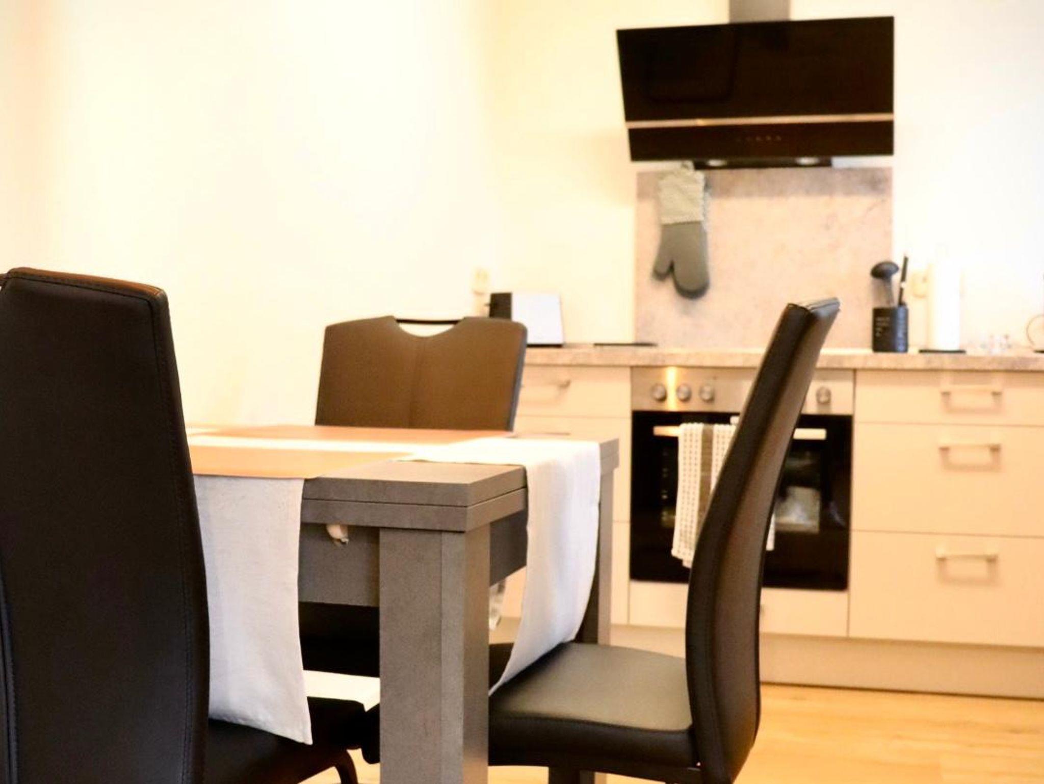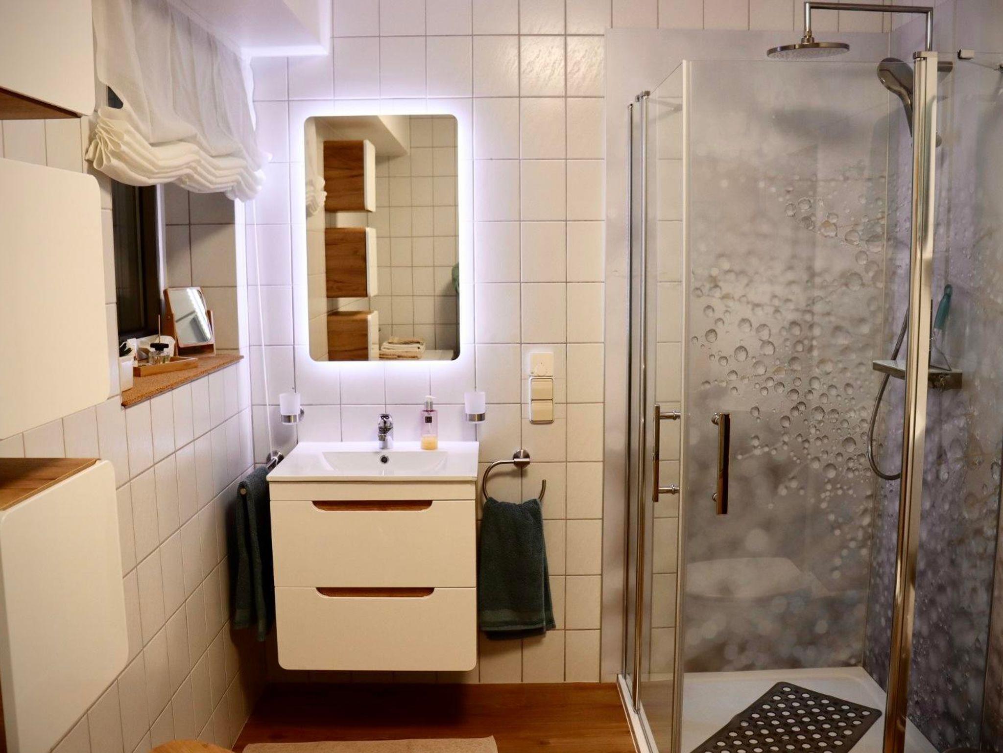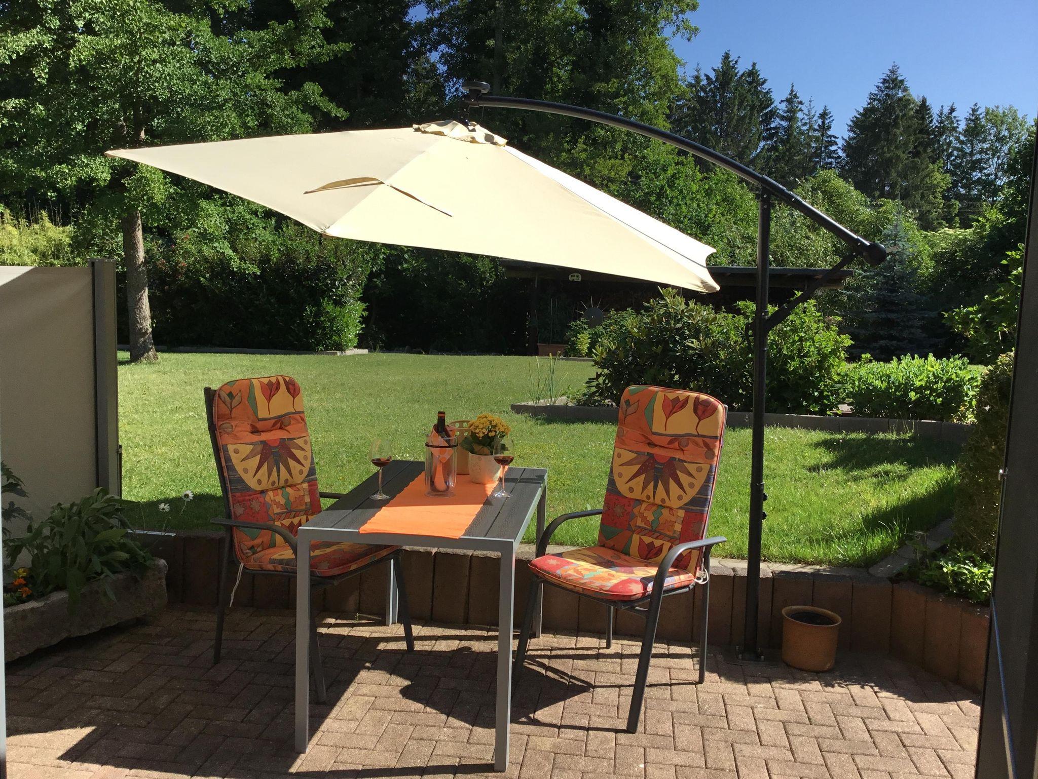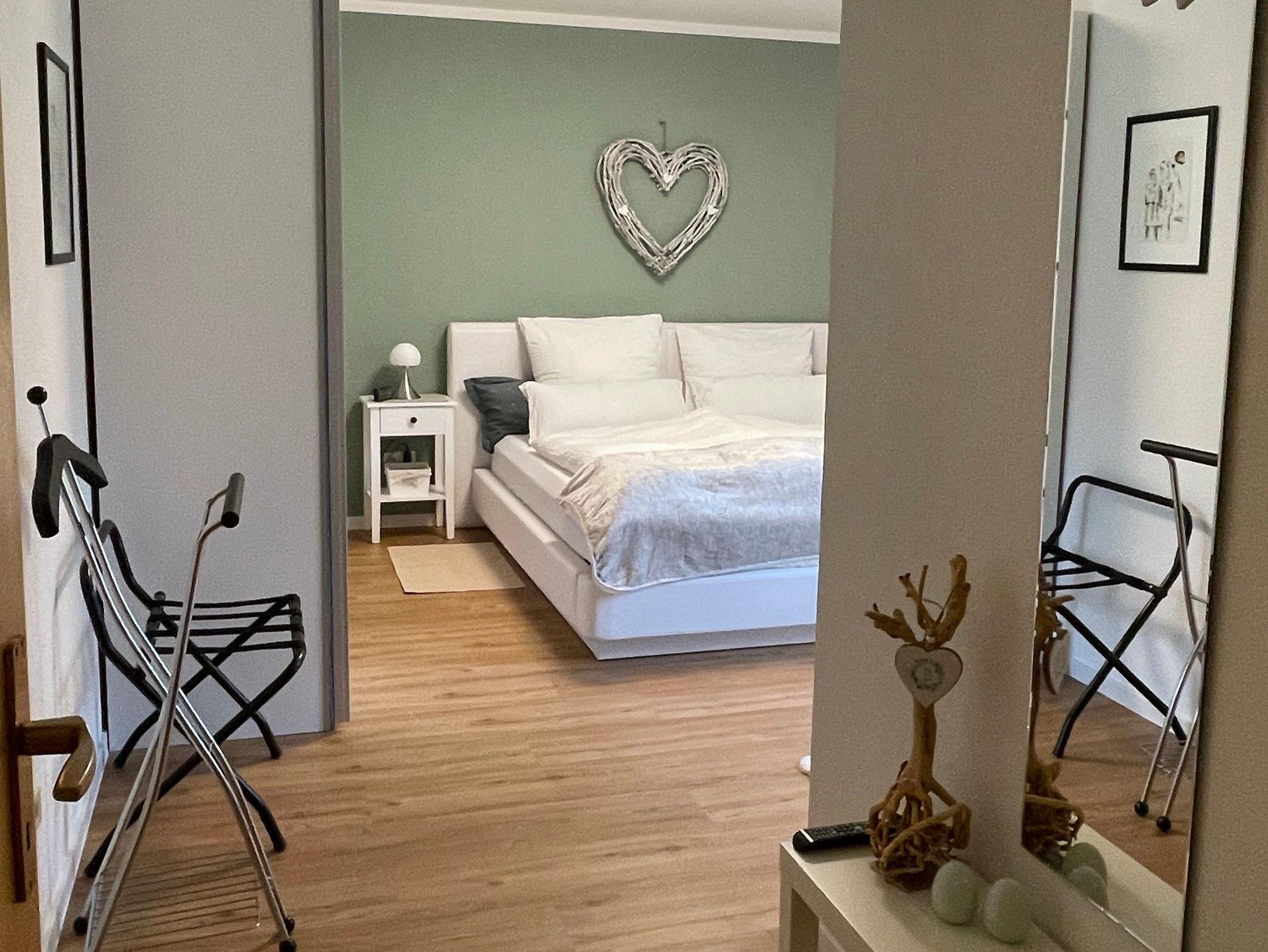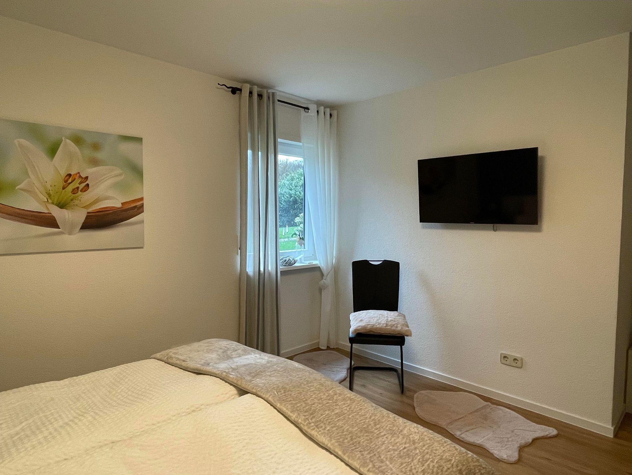 Die Nichtraucher Ferienwohnung bietet auf 68 Quadratmetern Platz für bis zu 2 Personen. Die helle und moderne Ferienwohnung besteht aus einem großen Wohnraum mit offener Küche und Essplatz. Der Wohnzimmerteil ist ausgestattet mit einer großen und gemütlichen Couch, die schnell zum Schlafpatz für eine weitere Person auszuziehen ist. Zusätzliche Decke, Kissen, Bezüge je nach Belegung vorhanden. Eine Schrankwand einhält neben einem Smart-TV eine umfangreiche Büchersammlung und Spiele. Der Essbereich ist mit einem ausziehbaren Tisch und entsprechender Anzahl von Stühlen ausgestattet. Ein Kinderhochstuhl ist zustellbar. In der L-förmigen Küchenzeile sind alle erforderlichen Elektrogeräte zum Kochen und Backen vorhanden: Cerankochfeld, Backofen, Dunstabzugshaube, Spülmaschine, Kühlschrank mit Gefrierfach. Kaffee kann mit einer Filter- oder Padmaschine bereitet werden. Wasserkocher, Toaster, Mikrowelle mit Grillfunktion vervollständigen die Ausstattung. Geschirr, Besteck, Gläser, Töpfe und sonstige Küchenutensilien sind in ausreichender Menge vorhanden. Basisgewürze, Essig, Öl. Ausziehbarer Mülleimer mit Mülltrennung, Spülmittel, Spülmaschinentabs, Spülbürste, Spüllappen, Geschirrtücher usw. sind ebenso wie Handfeger und kabelloser Staubsauger vorhanden. Für die Reinigung zwischendurch steht ein Wischmop-Set bereit. Im Schlafzimmer lädt ein gemütliches Doppelbett 1,80m mit durchgehender Matratze und Topper zum erholsamen Schlaf ein. Duo-Bettdecken, die sich der Jahreszeit anpassen lassen, je zwei Kopfkissen 80/80 bzw. 40/40cm. Betten sind bezogen, Wolldecken und waschbare Vorleger vorh. Beidseits des Bettes gibt es eine Ablage mit Leselampe. Der Schiebetüren-Schrank ist 1,80m breit und ist mit Kleider- und Hosenbügeln ebenso mit zwei Bademänteln bestückt. Ein Schranktresor ist zur Aufbewahrung von Wertgegenständen eingebaut. Kofferablage, Kleiderständer, Ganzkörperspiegel vervollständigen die Ausstattung. An der Wand gegenüber dem Bett ist ein weiteres Smart-TV angebracht. Im Flur befindet sich eine Garderobe mit Schuhabstellwanne, Schuhlöffel, Spiegel und Sitz-möglichkeit. Das Bad ist ausgestattet mit Toilette, flacher Dusche, die eine Glasabtrennung hat, ein Waschtisch mit Schubladen, beleuchteter Spiegel, kleine Wandschränke für Utensilien, Kosmetikeimer, Fön, Vergrößerungsspiegel. Hand- und Duschtücher liegen bereit. Für die Wäsche zwischendurch stehen Waschmaschine und Wäschetrockner zur Verfügung. Waschmittel, Flüssigseife, Toilettenpapier incl. Alle Räume haben neue Fenster mit Rollläden und sind mit einem pflegeleichten Holz-Designbelag auf Fußbodenheizung versehen. Die Wände sind verputzt und hell gestrichen. Gardinen und stimmungsvolle Beleuchtung sorgen für behagliches Ambiente. Die Terrasse ist ca. 12qm groß und ist mit Tisch und Gartenstühlen bestückt. In einer Box sind Textilauflagen untergebracht. Auf der Rasenfläche sind Liegestühle aufgestellt. Ein Edelstahlgrill und Buchenholz stehen für einen Grillabend bereit. Ein Carport neben dem Haus ist für die Nutzer der Ferienwohnung reserviert. Fahrräder können in einem von außen begehbaren Abstellraum sicher untergestellt werden. Der Zugang ist beleuchtet.