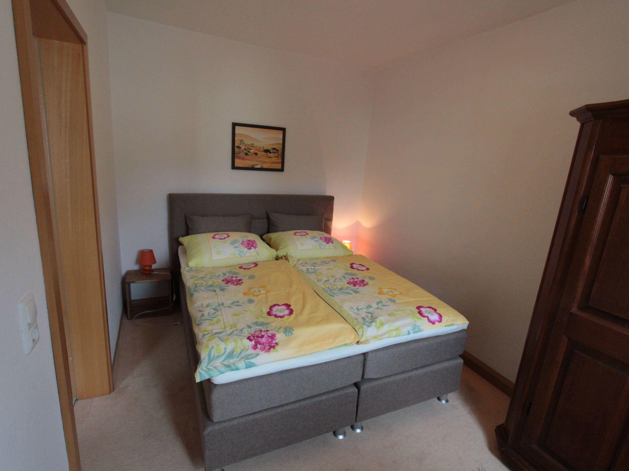 The holiday flat is 45m² in size and includes a living room with sofa bed with a view of the garden. A comfortable box-spring bed awaits you in the bedroom. A travel cot for children is also available on request. The kitchen with dining area is equipped with all important kitchen utensils. The tiled bathroom is equipped with a shower and WC. There is a washing machine and tumble dryer in the bathroom. Please note that this is a non-smoking flat. The flat is partially equipped with underfloor heating.