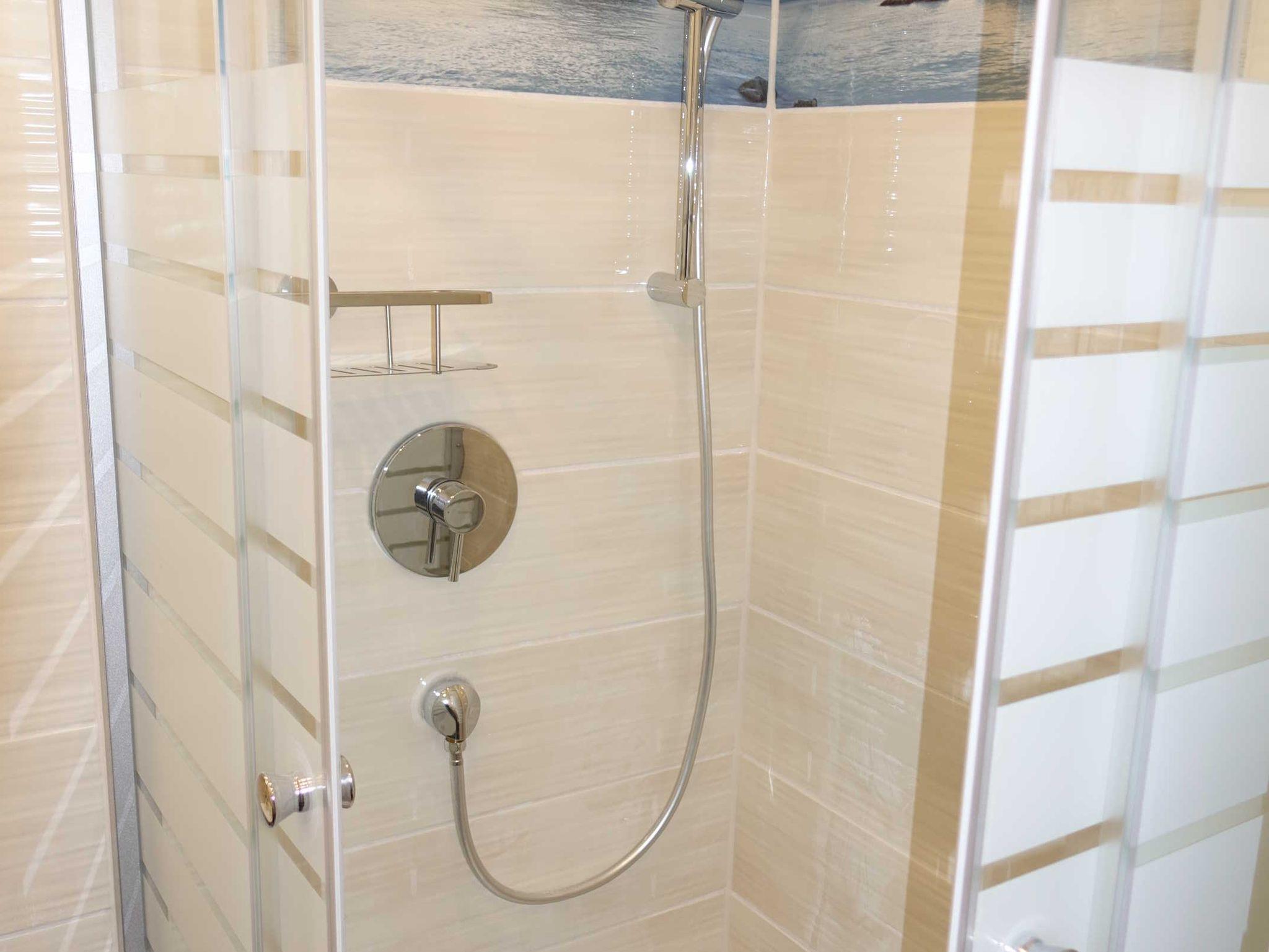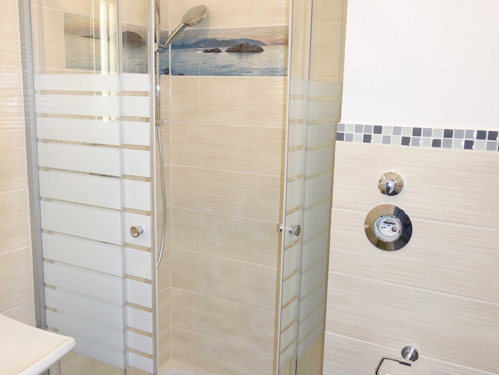 Das kleine aber gemütliche Badezimmer verfügt über Dusche, WC und Waschbecken, Toilettenpapier und ein Handtuchset stehen Ihnen selbstverständlich kostenlos zur Verfügung.