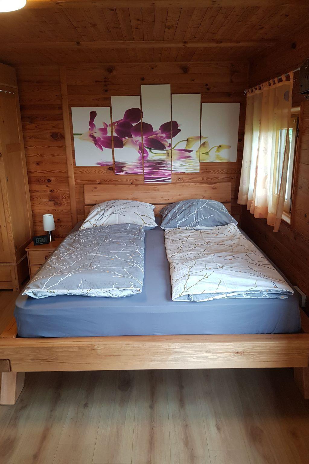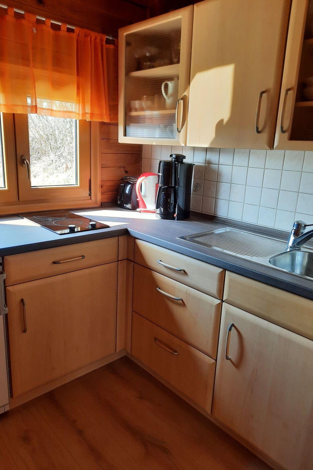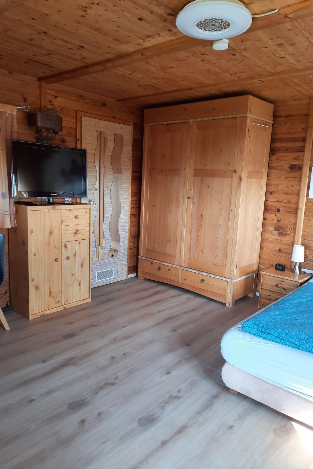 Inside the house you will find a cosy atmosphere, carefully furnished to make your stay as pleasant as possible. In addition to a sturdy double bed in solid wood for restful nights, the living area also offers a satellite TV for cosy evenings. Practical amenities such as a coffee machine and kettle round off the interior and ensure a carefree stay.