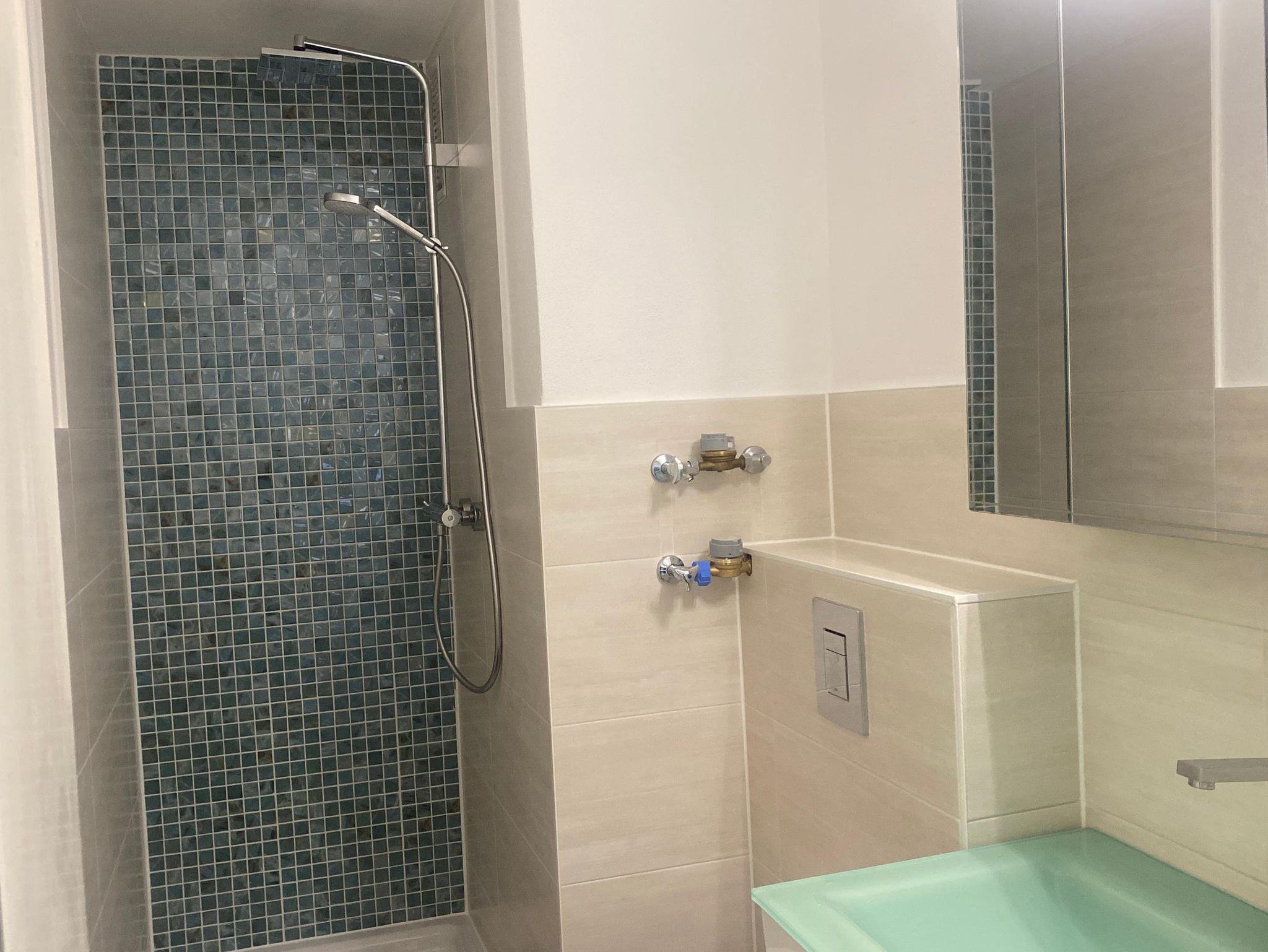 Im separaten Schlafzimmer finden Sie ein komfortables Doppelbett, einen geräumigen Kleiderschrank sowie ein Etagenbett – ideal für Familien. Das modern gestaltete Badezimmer mit Dusche ist neu renoviert und entspricht aktuellem Standard.