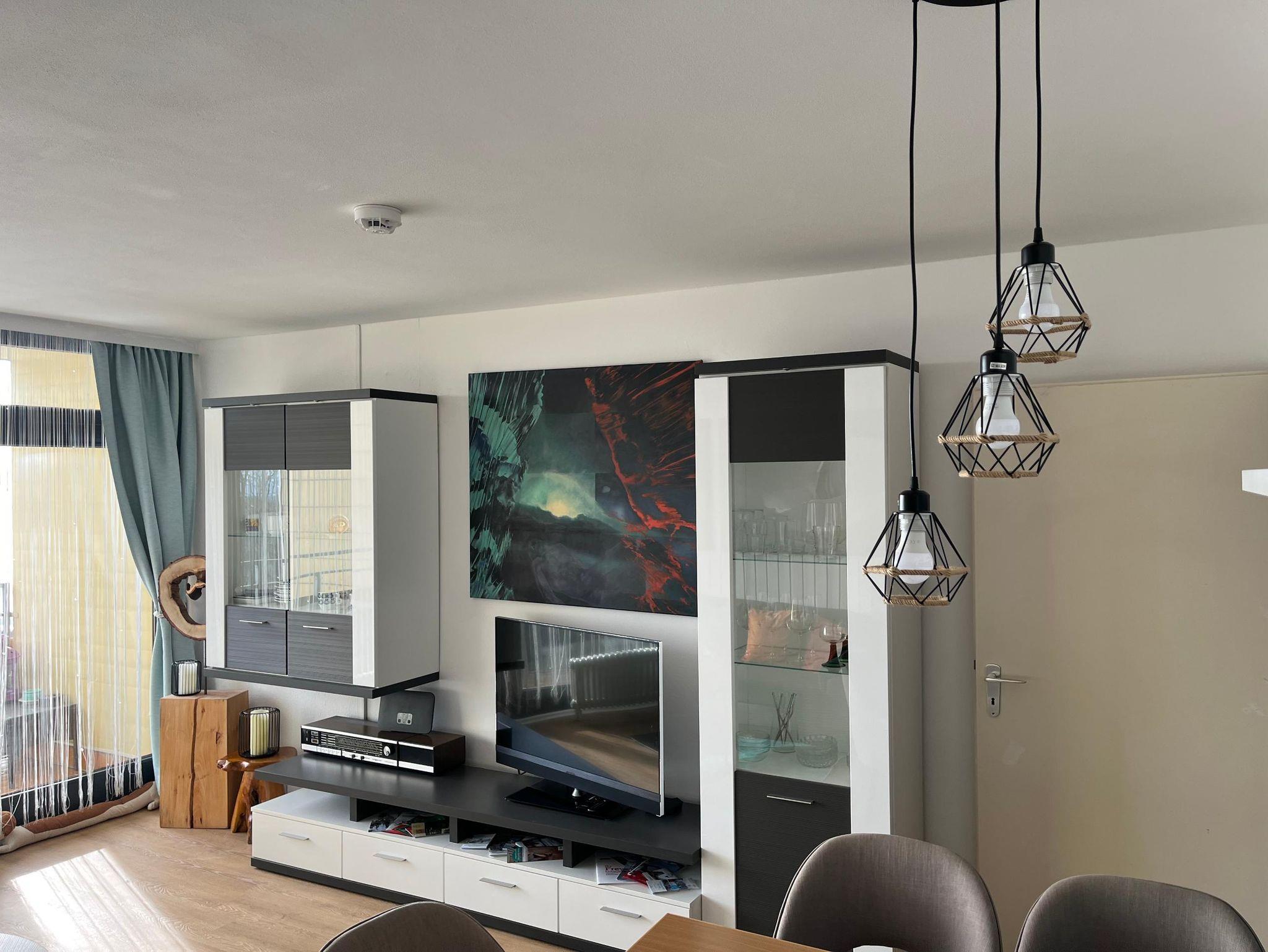 Zum Entspannen und Verweilen lädt das gemütliche Wohnzimmer mit bequemer Schlaf- Couch, Kabel-TV, Radio, WLAN und viel Platz für gemeinsame Zeit ein.