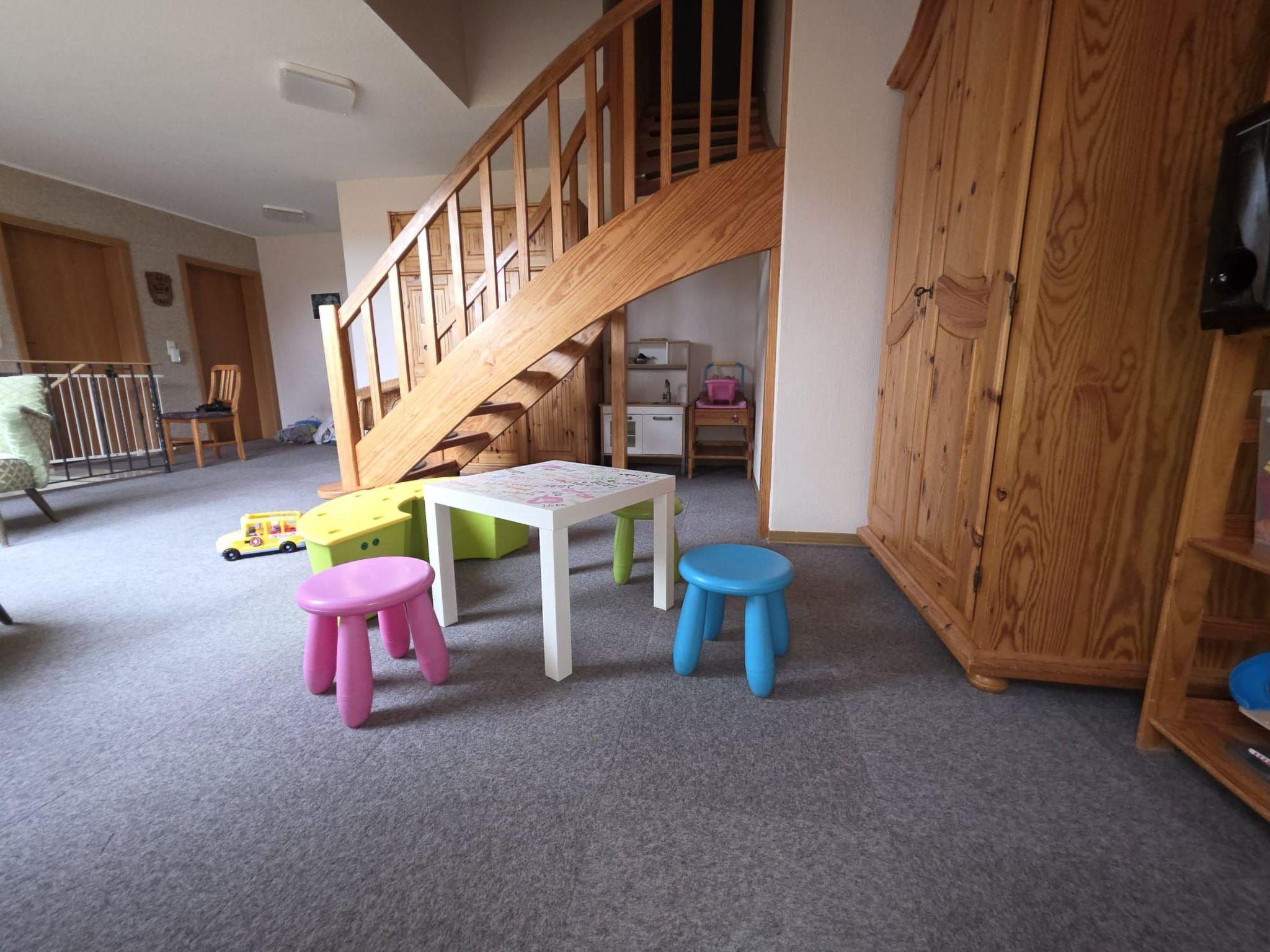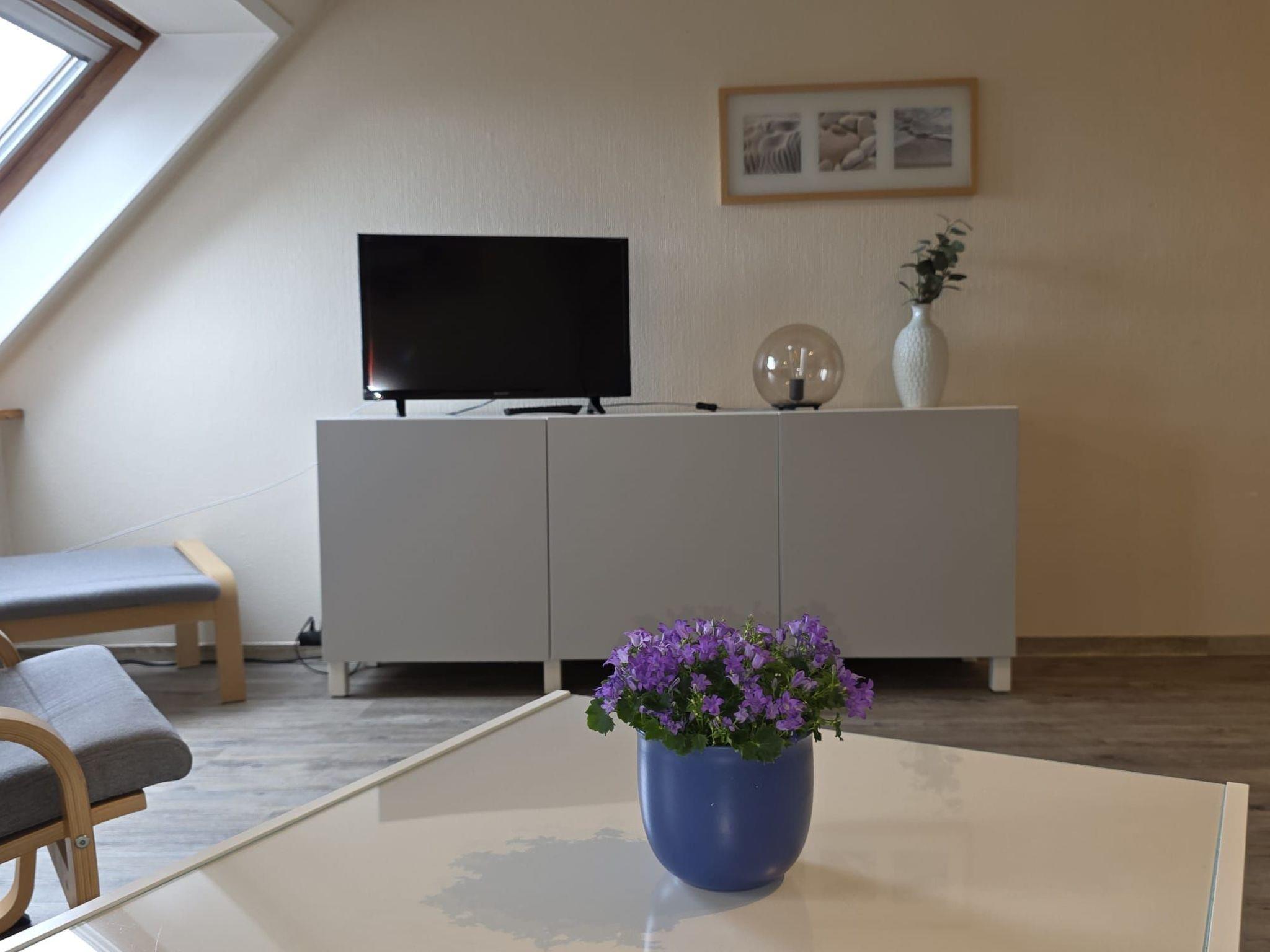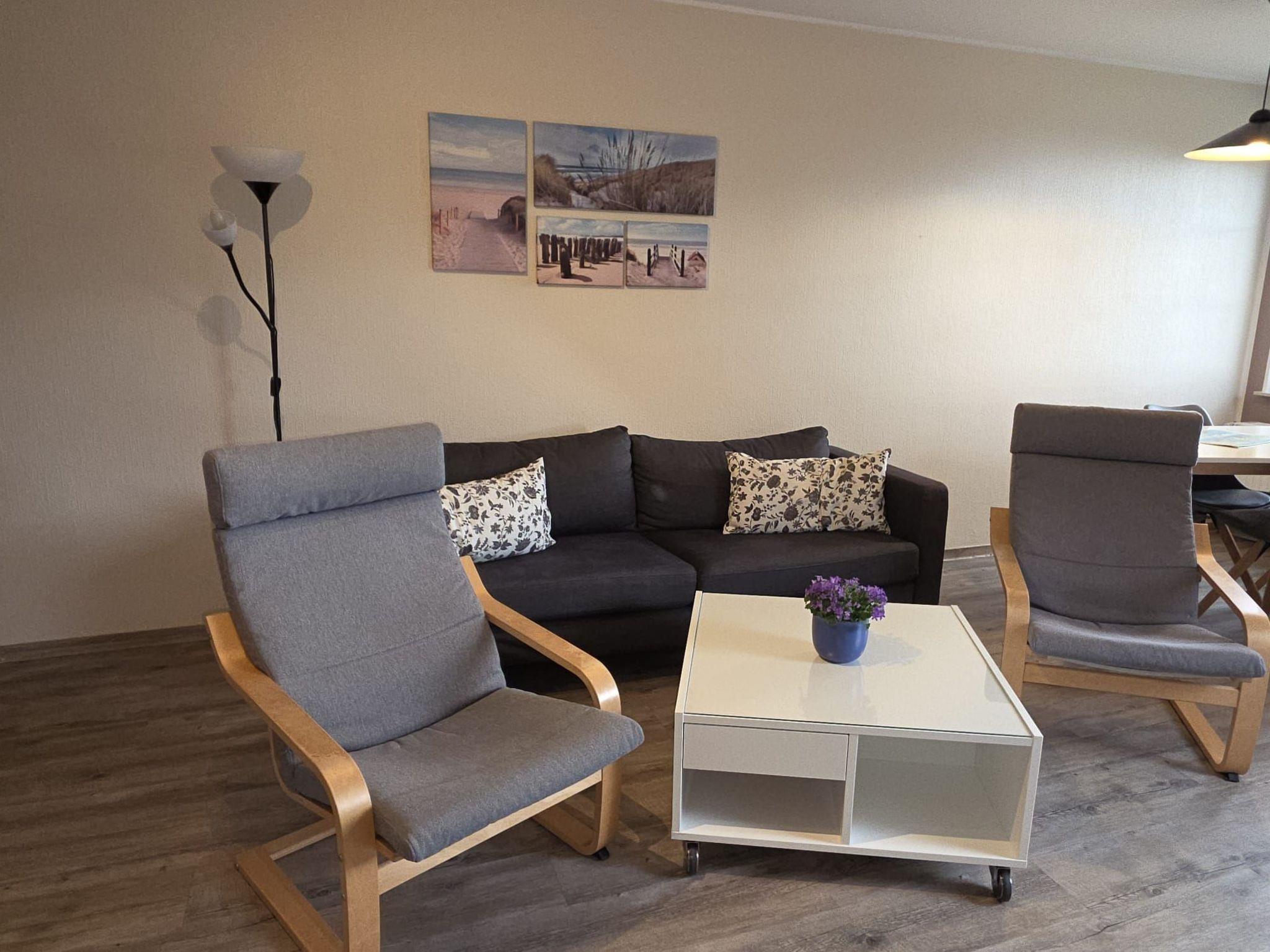 You will stay in a comfortably furnished, approx. 60 square metre, barrier-free 3-room holiday flat on the 1st floor. The centre of the flat is a spacious living area with an open-plan kitchen and dining area for four people. Here you will also find cable TV and a DVD player. Highchairs for children are available if required.
