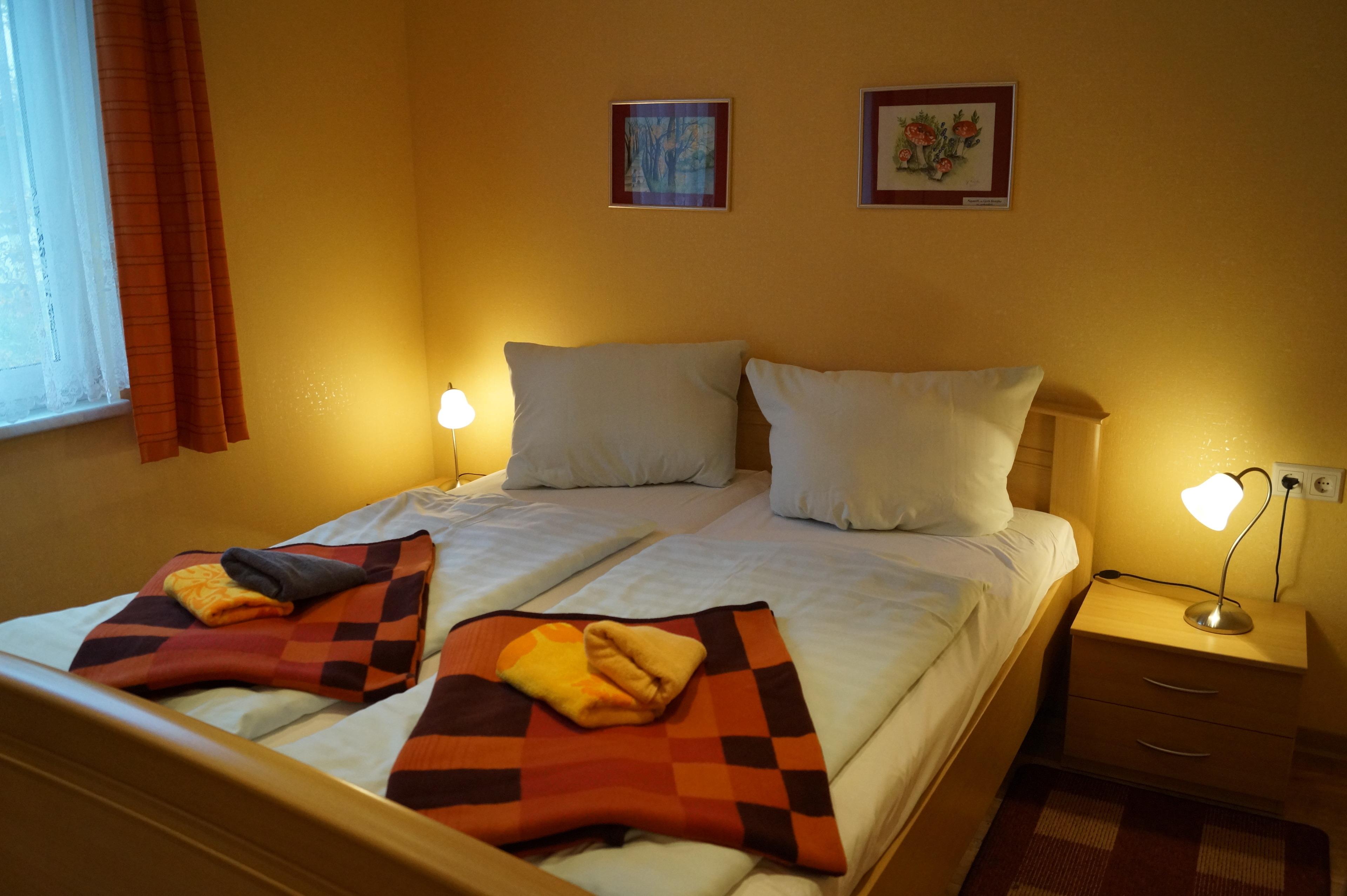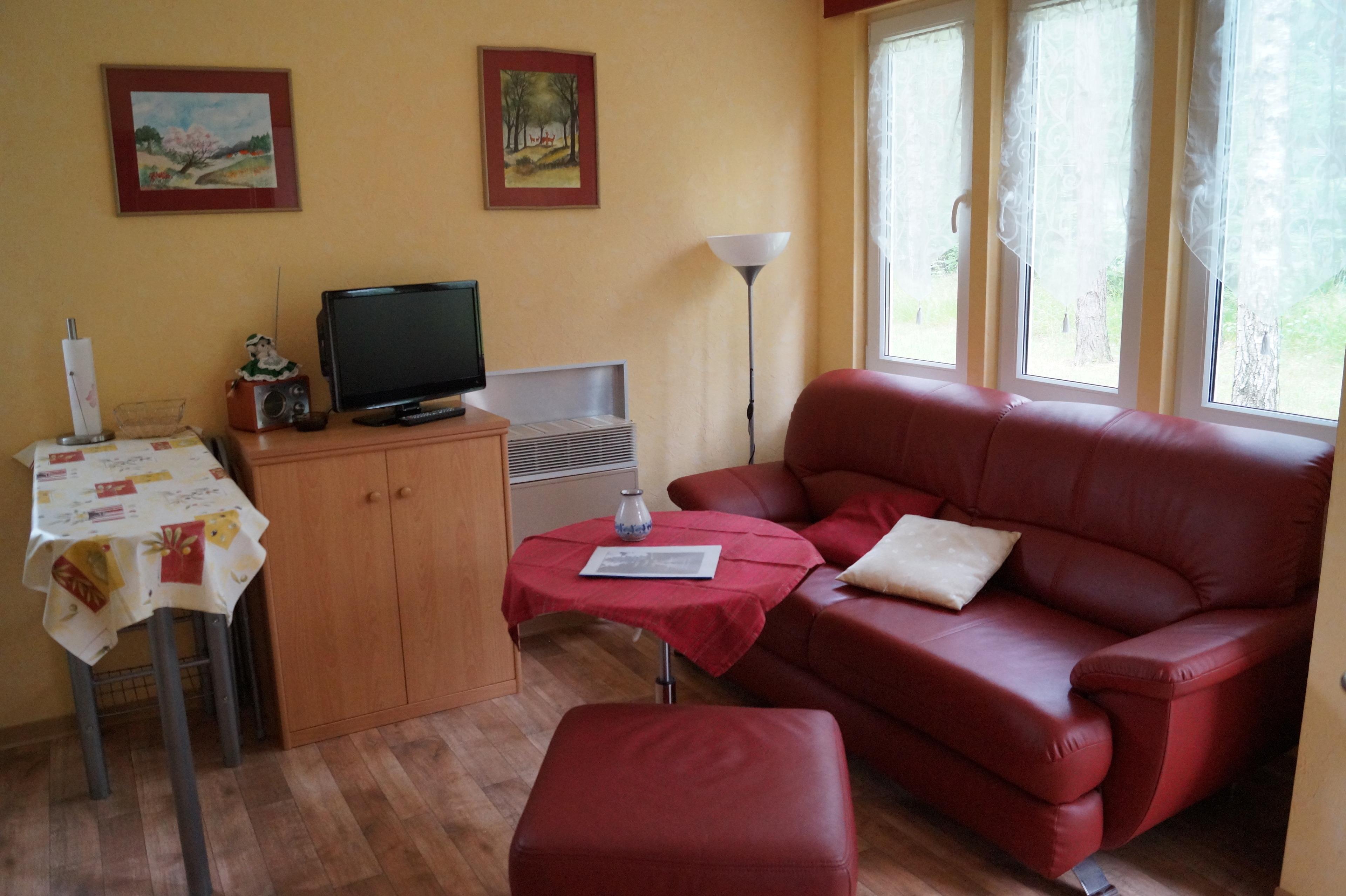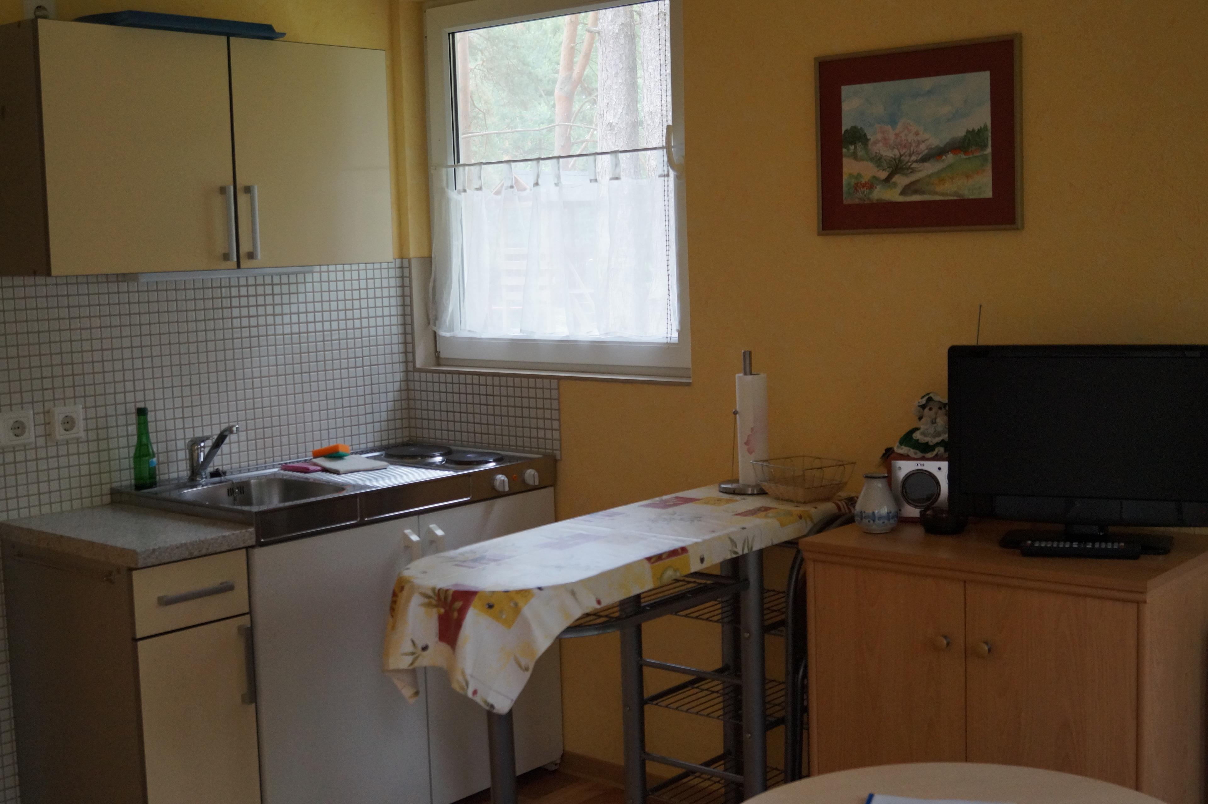 Doppelhaus Typ 7 ist eine komplett renovierte Doppelhaushälfte mit Fußbodenheizung für bis zu 2 Pers. (2 Erw.). Die Nutzfläche beträgt ca. 34m² Nutzfläche incl. eine mit Gartenmöbeln ausgestattete überdachte Terrasse, eine komplett eingerichtete Wohnküche mit Elektrokochplatten, Kühlschrank, Spüle, Kaffeemaschine etc., einen Schlafraum mit Doppelbett sowie ein Bad mit Dusche & WC.