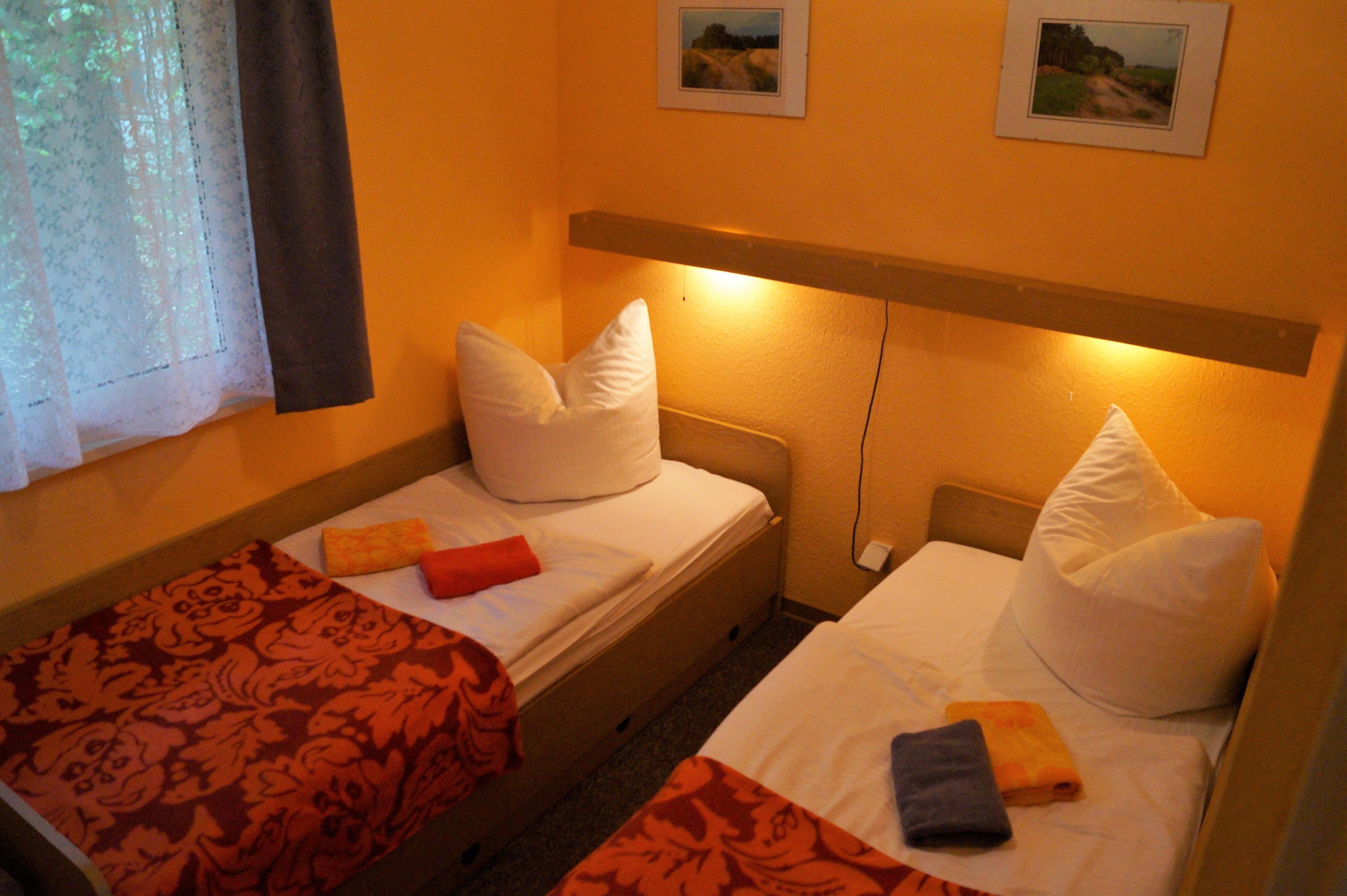 Bungalow Typ 2 ist ein komplett renoviertes Ferienhaus für bis zu 3 Personen (3 Erw.). Die Nutzfläche beträgt mit ca. 43m² incl. einer mit Gartenmöbeln ausgestatteten Terrasse, einem Wohnraum sowie zwei Schlafräumen, einem mit Doppelbett und einem mit einem Bett, einer komplett eingerichteten Kleinküche mit Elektrokochplatten, Kühlschrank, Spüle, Kaffeemaschine etc. sowie einem Bad mit Dusche & WC. Teilweise sind bei diesem Typ keine Haustiere erlaubt, daher ist eine Buchung von Haustieren nur auf Anfrage möglich!