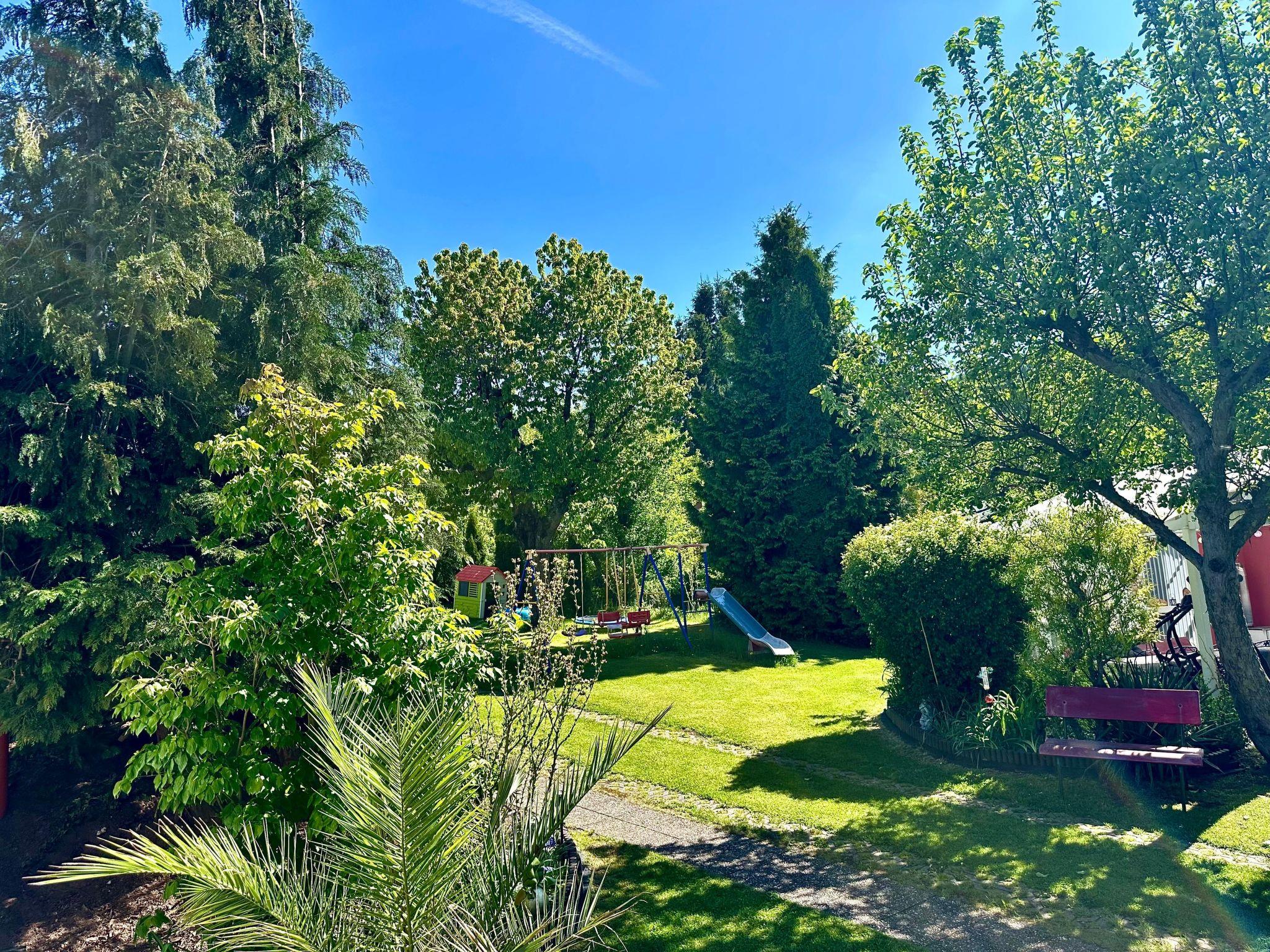 Outside, you are greeted by a wonderfully green garden with play equipment for children, a barbecue area and garden furniture for enjoyable hours in the open air. A carport and additional parking spaces provide convenient parking. The covered terrace with comfortable seating invites you to spend relaxing moments in the fresh air, complemented by the opportunity to enjoy the full patio furniture in the summer months.
