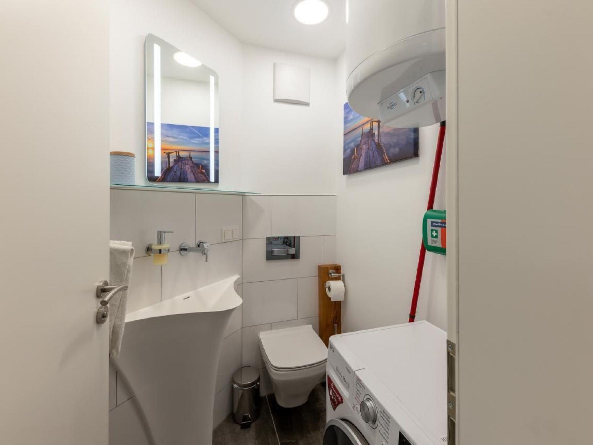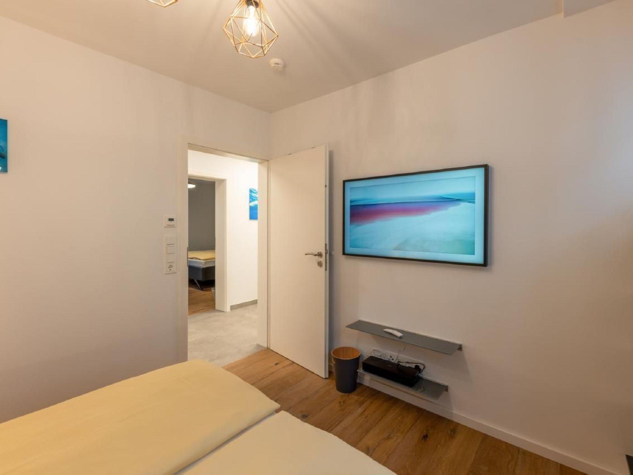 In the living room, a large-screen TV awaits you, supported by high-quality Nubert speakers for excellent sound. Each of the three bedrooms is equipped with a "The Frame" TV and a comfortable double bed. The spacious living area can also be used as overnight accommodation for additional guests. The property features a bathroom and a separate toilet. On the balcony, you'll not only find a grill but also a view of the lake.