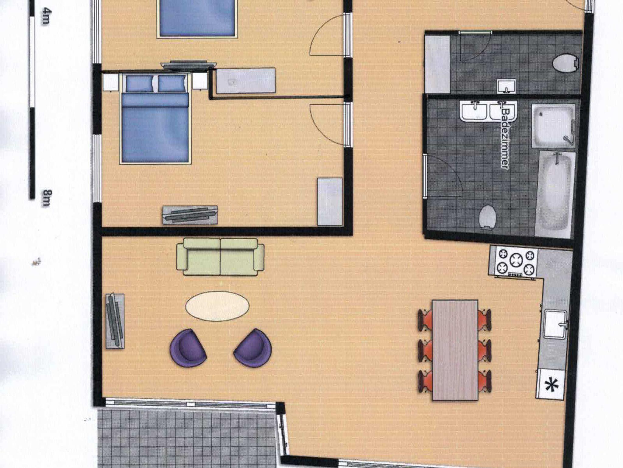 Die Wohnung verfügt über eine gehobene Austattung und 2 Schlafzimmer und Schlafcoach für bis zu 6 Personen: - 1 Doppelbett mit 200 x 200 Boxspringbett mit Komfortmatratze / 1 Doppelbett 160 x 200 Boxspringbett mit Komfortmatratze / 1 Schlafcoach für 2 weitere Personen im Wohnraum mit 160 x 200 Liegefläche, großes Badezimmer mit Dusche und Toilette - separates Gäste-WC - offenes Wohn- und Esszimmer mit umfangreichem Küchenequipment, und einem Esstisch für bis zu 6 Personen - Nespresso Kaffeemaschine - 3 moderne Smart- TV's, High-Speed W-LAN - großzügiger Balkon mit Platz für bis zu 6 Personen - eigener Tiefgaragenstellplatz und Fahrradkeller direkt im Haus. - Waschmöglichkeiten auf Anfrage, Bügelbrett etc. sind vorhanden. Alle Räume (bis auf das Bad) sind mit Eichenholzparkett und einer Fußbodenheizung ausgestattet.