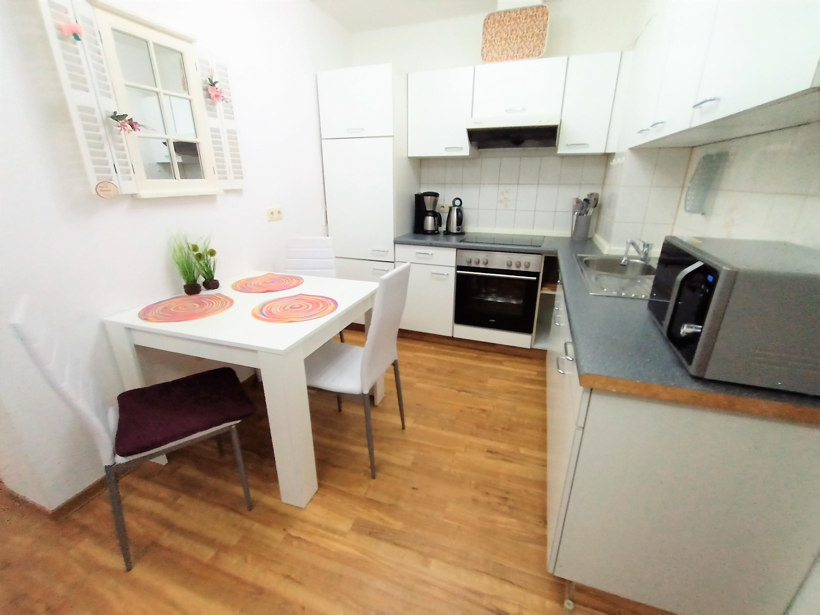 An der Unterkunft angekommen erreichen Sie mit einem Aufzug das Apartment im 3. Stock bequem und barrierefrei. Es handelt sich um eine 1-Zimmerwohnung. Sie schlafen auf einem hochwertigen Doppelbett (160 cm x 200 cm breit).