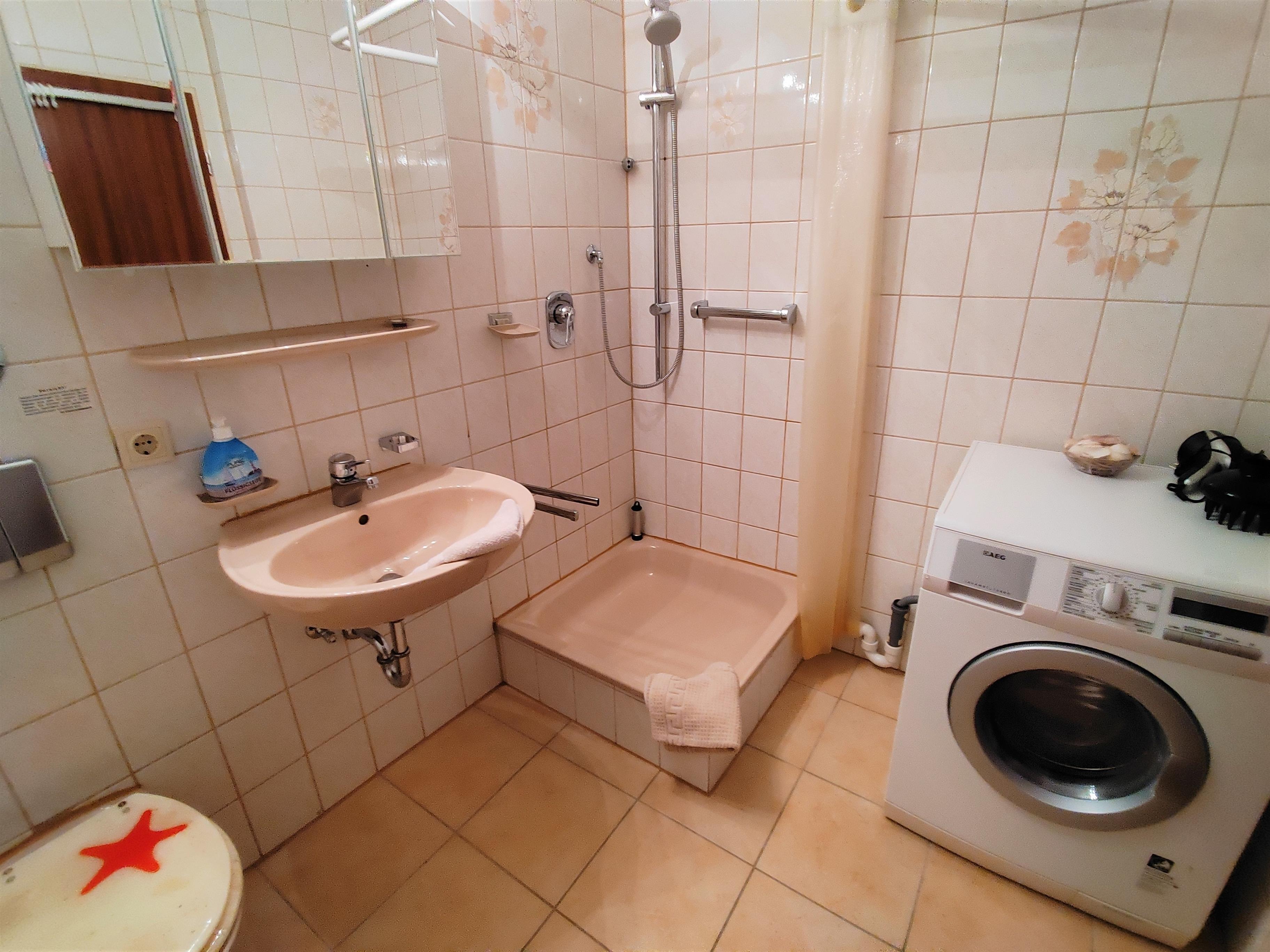 Die Küche ist etwas separiert und voll ausgestattet plus Essplatz. Das Badezimmer verfügt über DU / WC sowie Waschtrockenautomat.