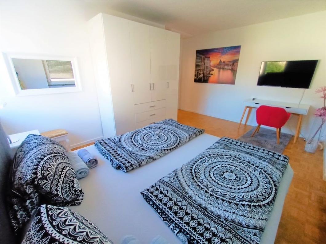 Die Ferienwohnung liegt so zentral in Friedrichshafen, dass fast alle Sehenswürdigkeiten, Unternehmen und Verkehrsanbindungen schnell zu erreichen sind. Trotzdem ist die Wohnung in einem verkehrsberuhigten Bereich mit einem schnellen Zugang zur Durchgangsstraße. Zum Bodenseeufer und zum Freibad sind es nur wenige Minuten, ebenso zu einer Bäckerei in der Nachbarschaft. Zum Stadtzentrum von Friedrichshafen sind es nur 950 m, zur Messe und zum Flughafen ca. 4,4 km.