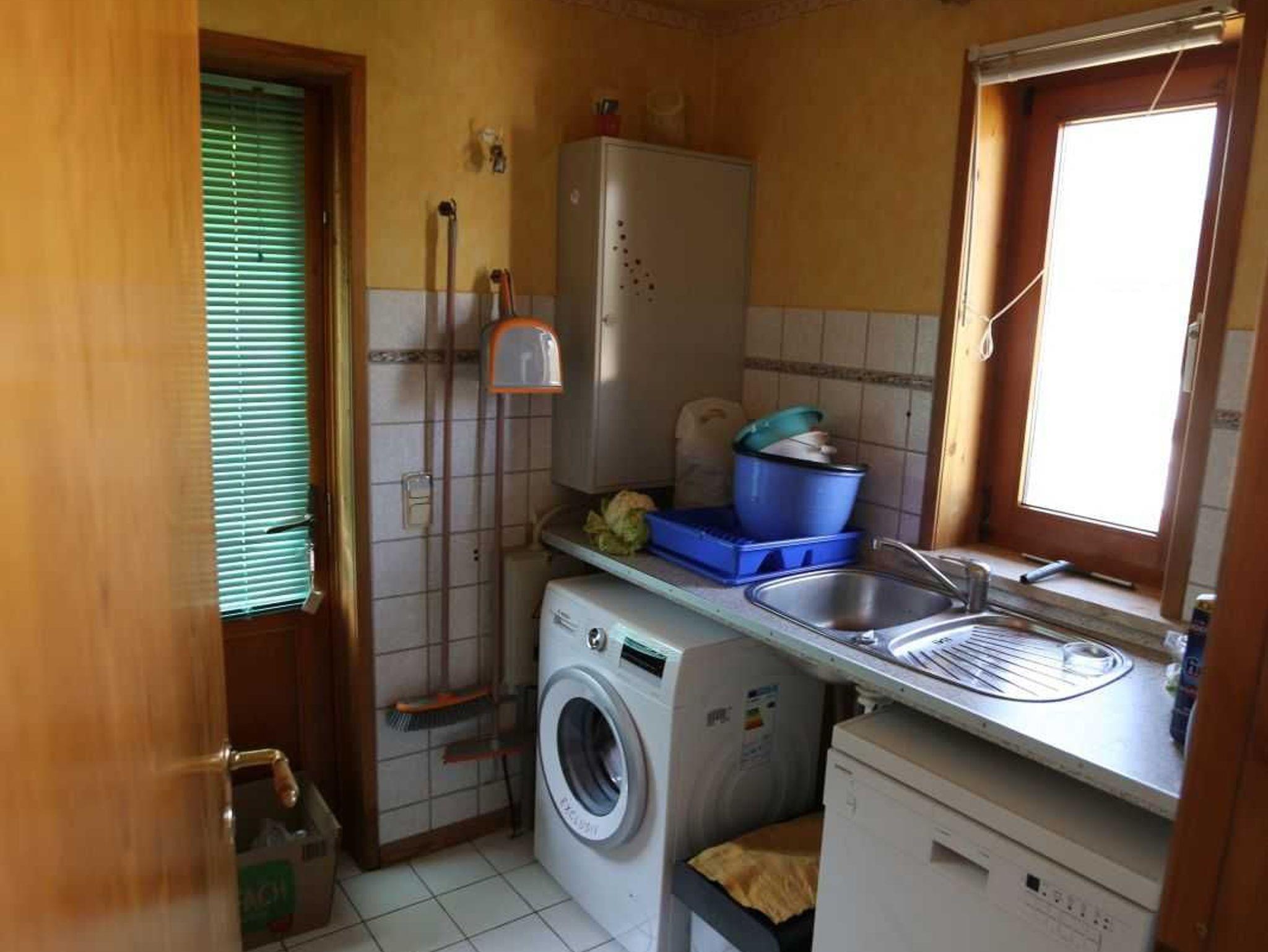 Wirtschaftsraum: Geschirrspüler, Waschmaschine, Ablageregale, Bügelbrett und Bügeleisen etc.