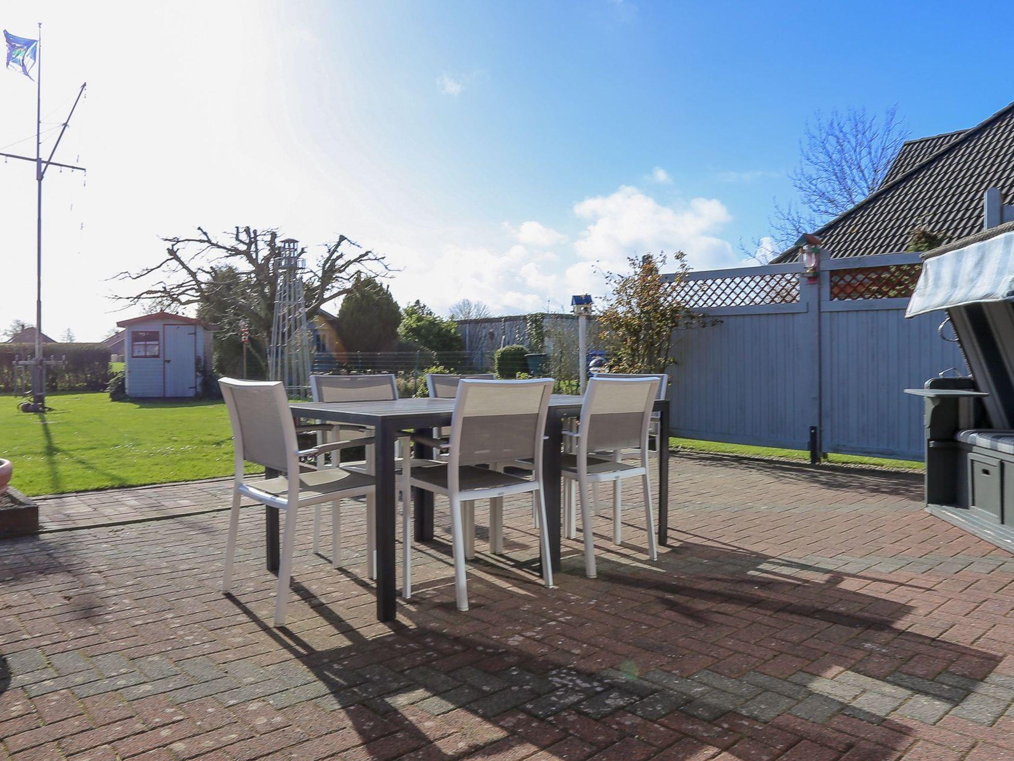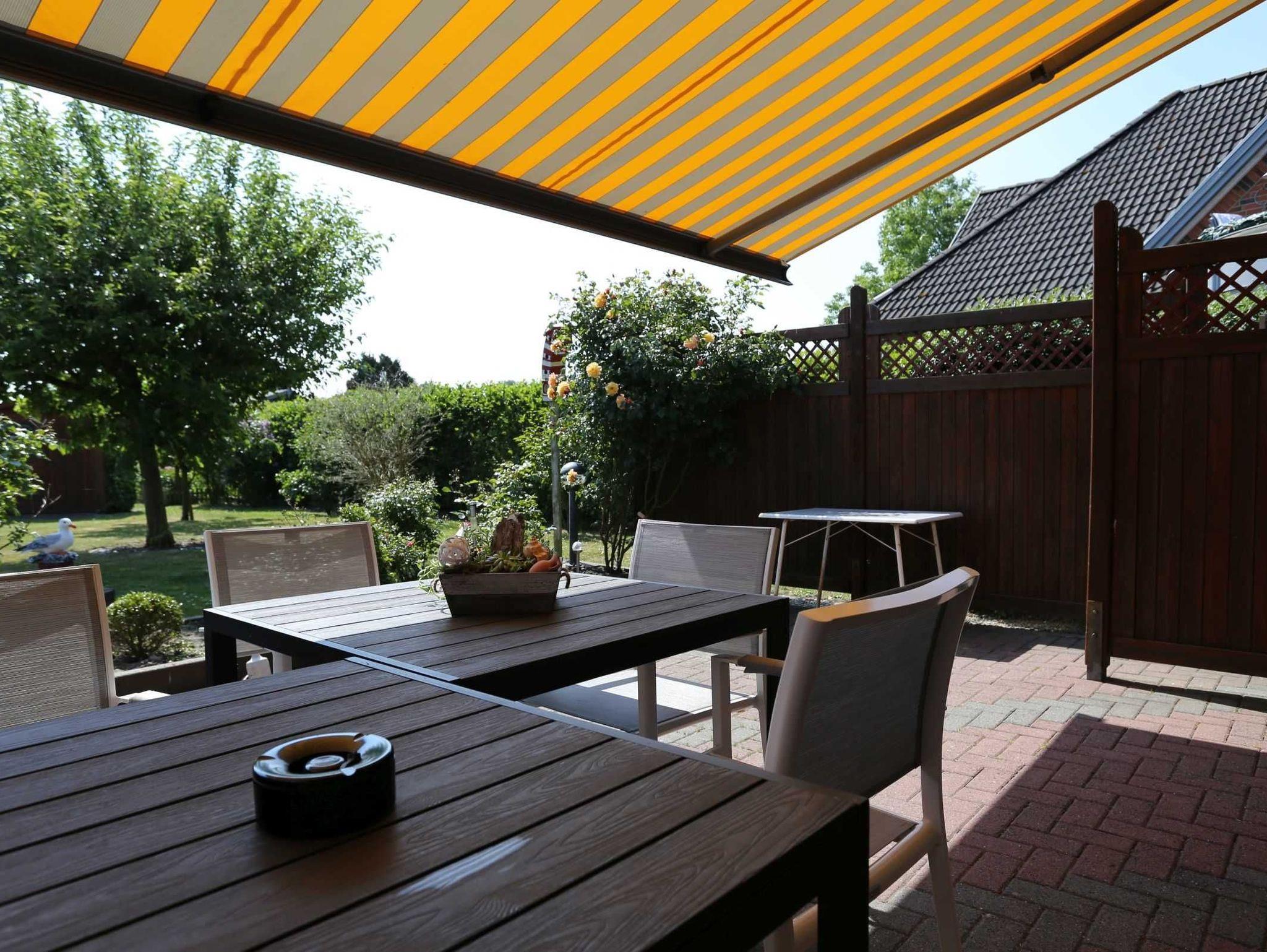 Terrasse: Auf der Terrasse stehen Ihnen 8 Gartenstühle und 2 Gartentische zu Verfügung. Weiterhin steht Ihnen auch eine Sonnenschutzmarkise zur Verfügung.