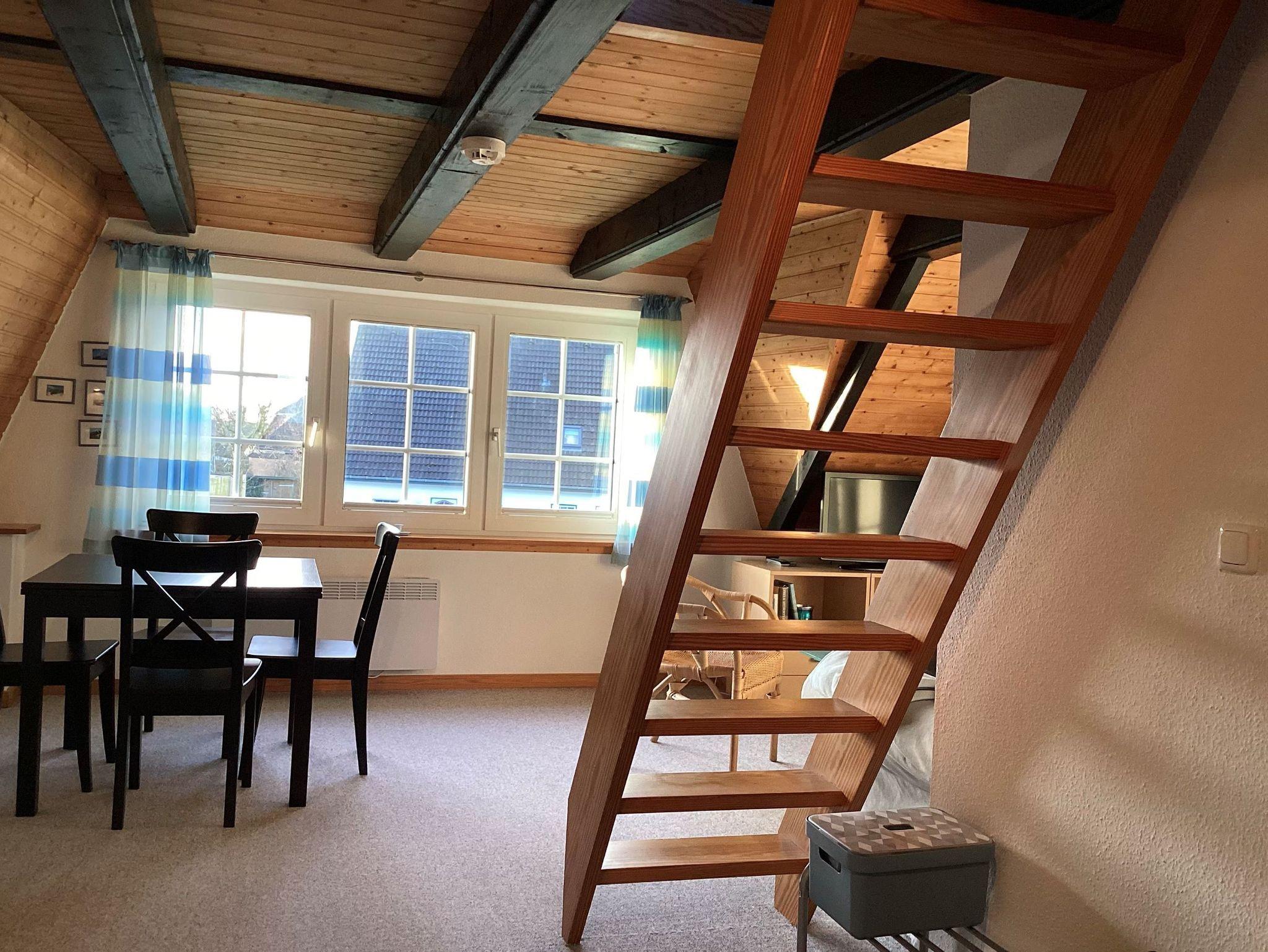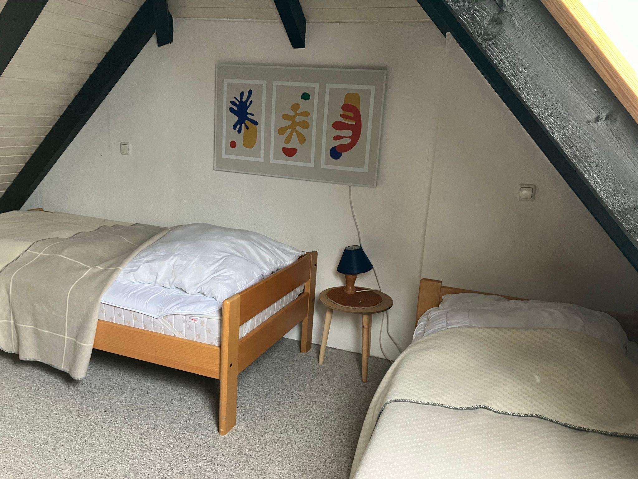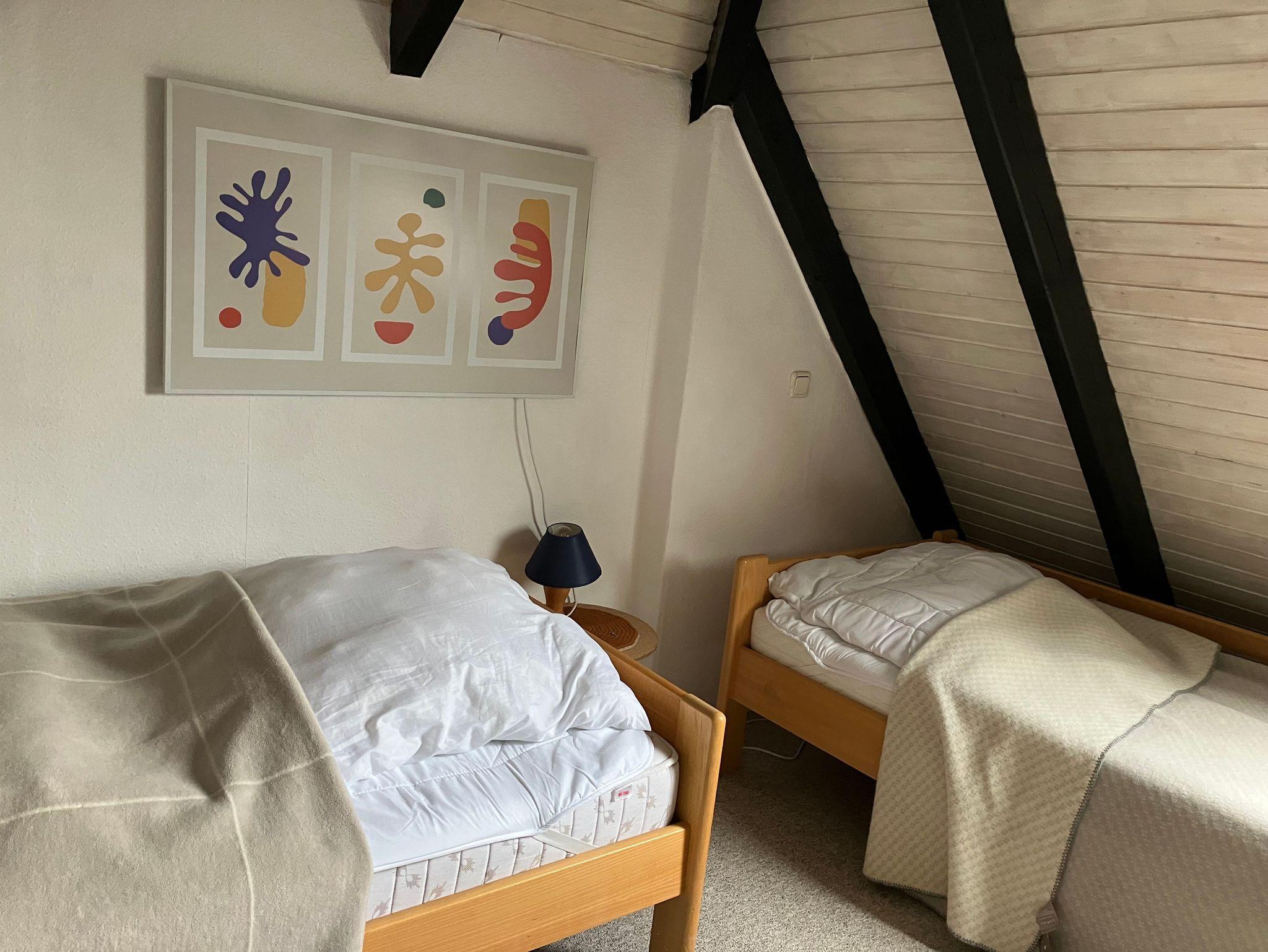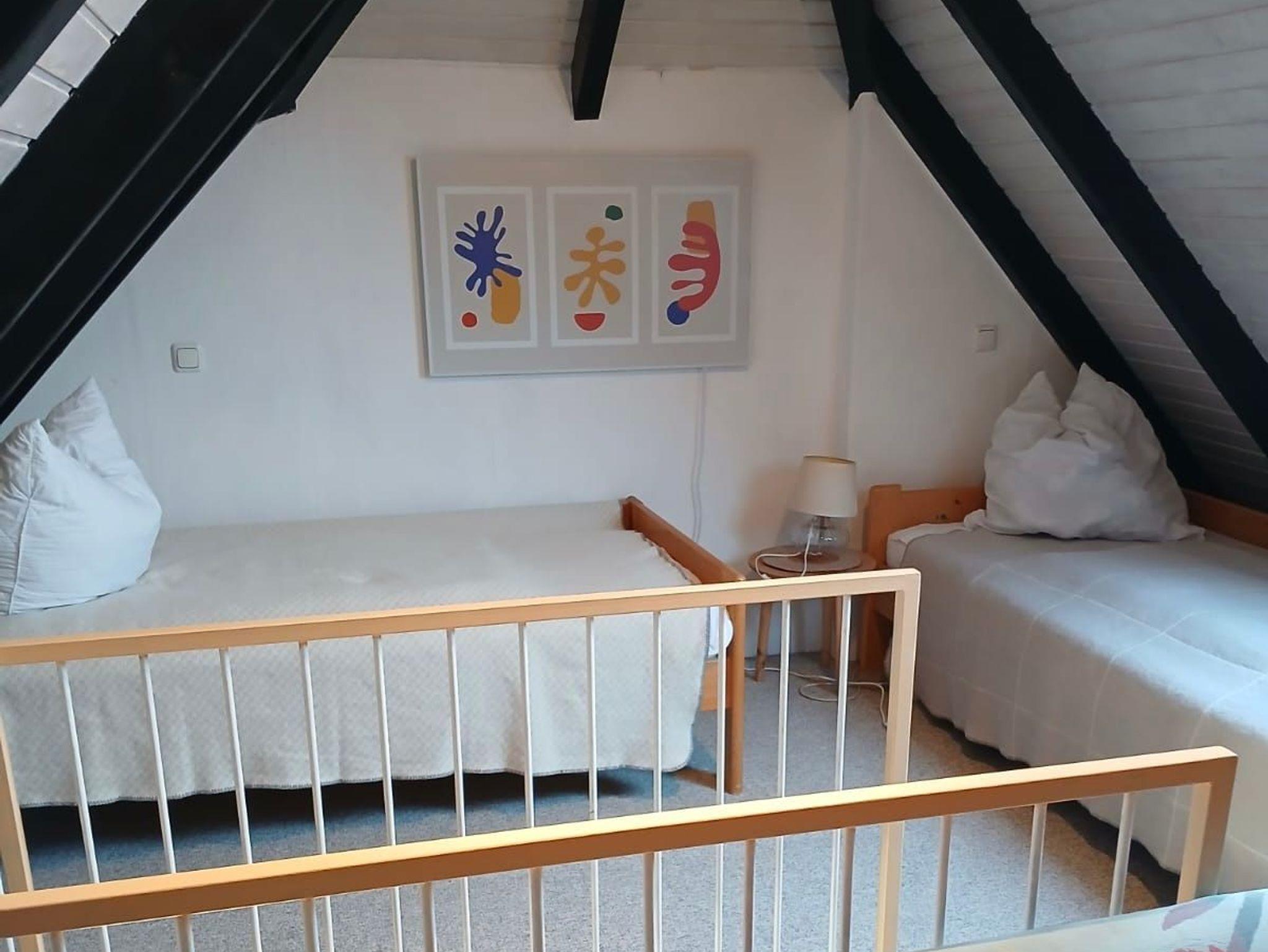 • 1 Schlafzimmer mit 2 Einzelbetten (90x200cm) im ausgebauten Dachboden - Treppe ist ohne Geländer und für Kinder unter 6 Jahren nicht geeignet (ohne Tür zum Wohnraum).
