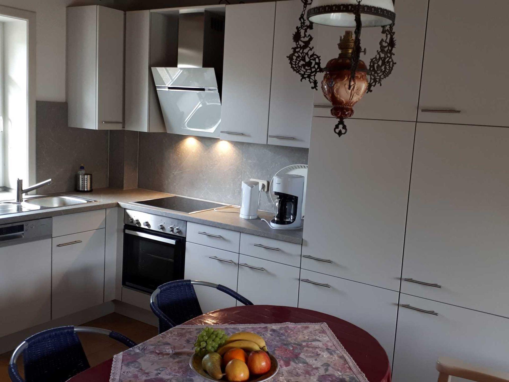 • kombiniertes Wohn-/Esszimmer mit Einbauküche (mit Geschirrspülmaschine). Im Wohnzimmer sind zwei Schlafcouchen, die bei Bedarf ausgezogen weren können.