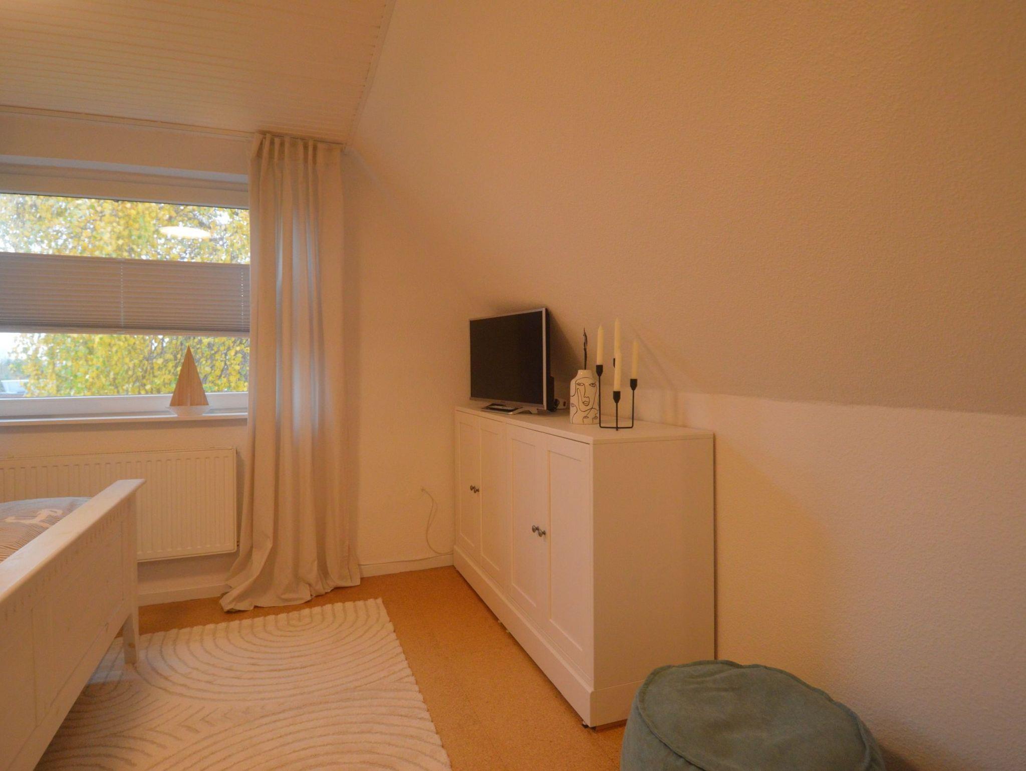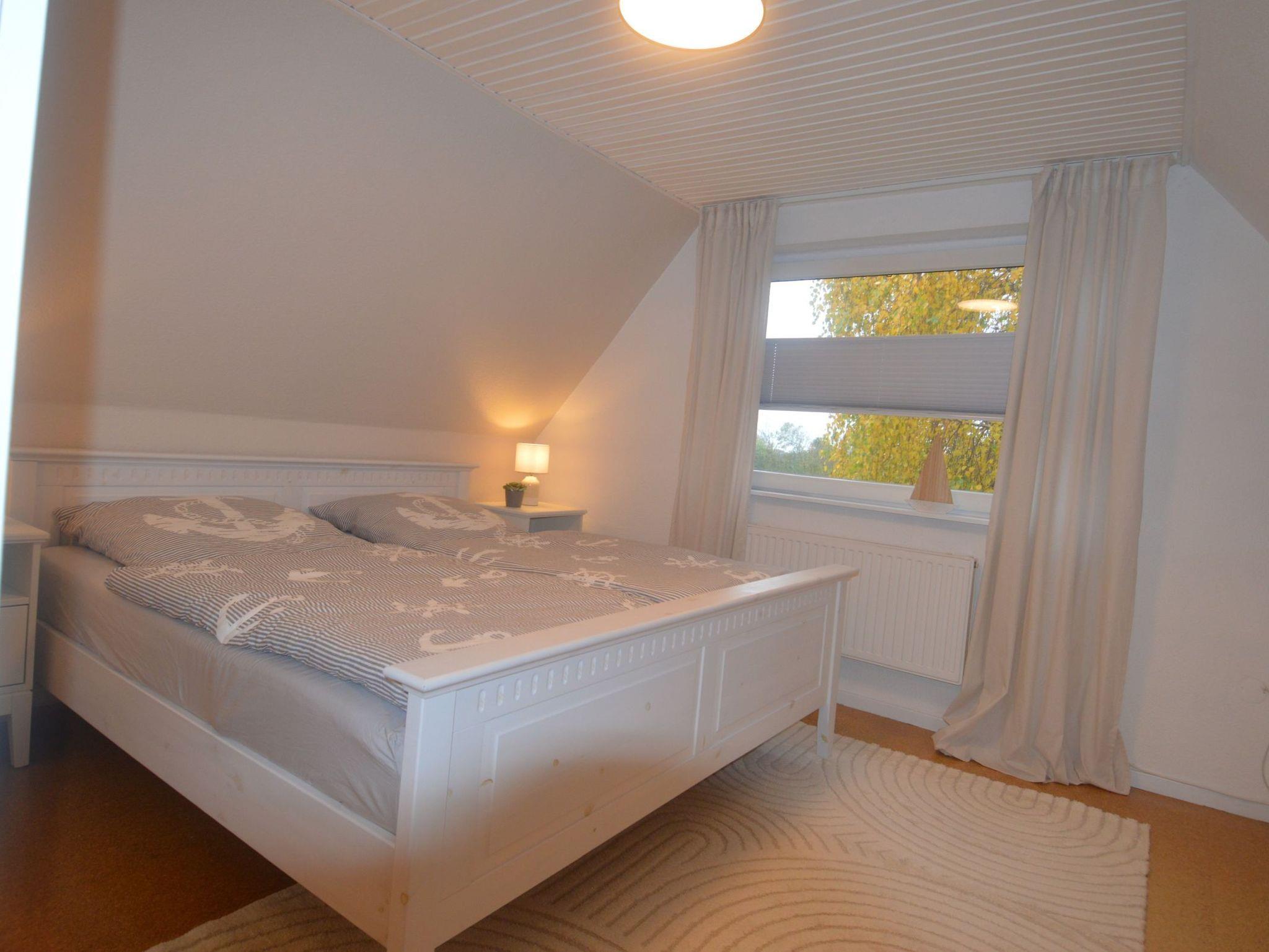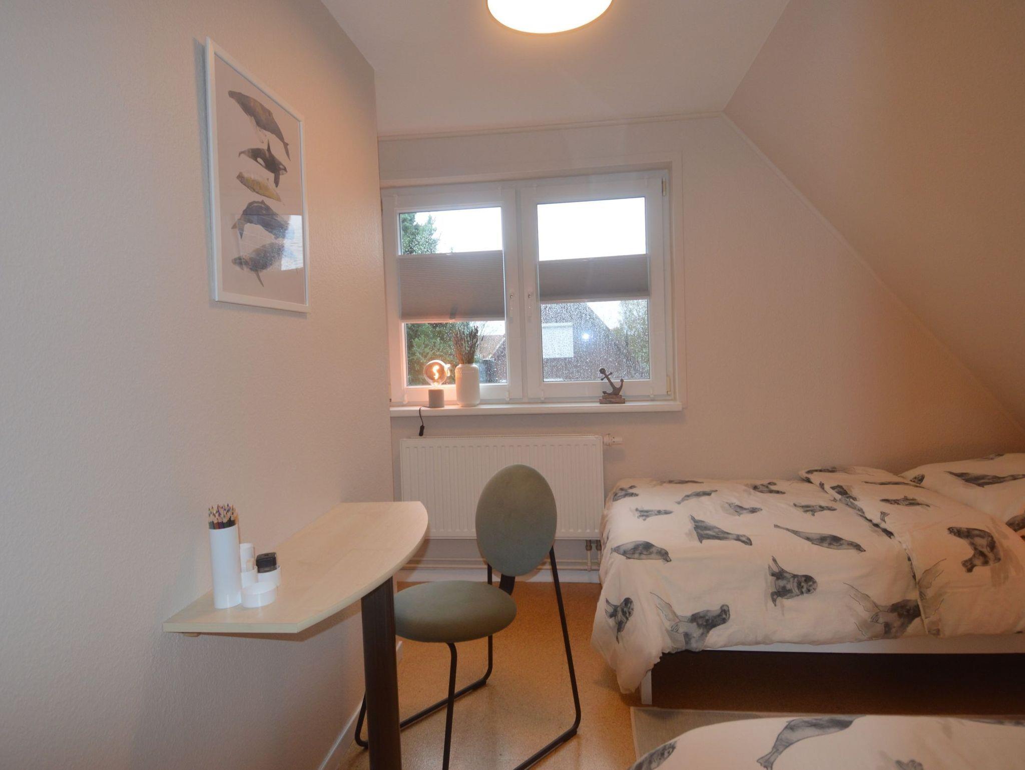 Das Ferienhaus hat 2 Schlafzimmer (2 Einzel-, 1 Doppelbett), Duschbad/WC mit Fußboden-heizung. Komplett eingerichtete Einbauküche mit Wasch- u. Spülmaschine, Mikrowelle, Cerankochfeld etc.