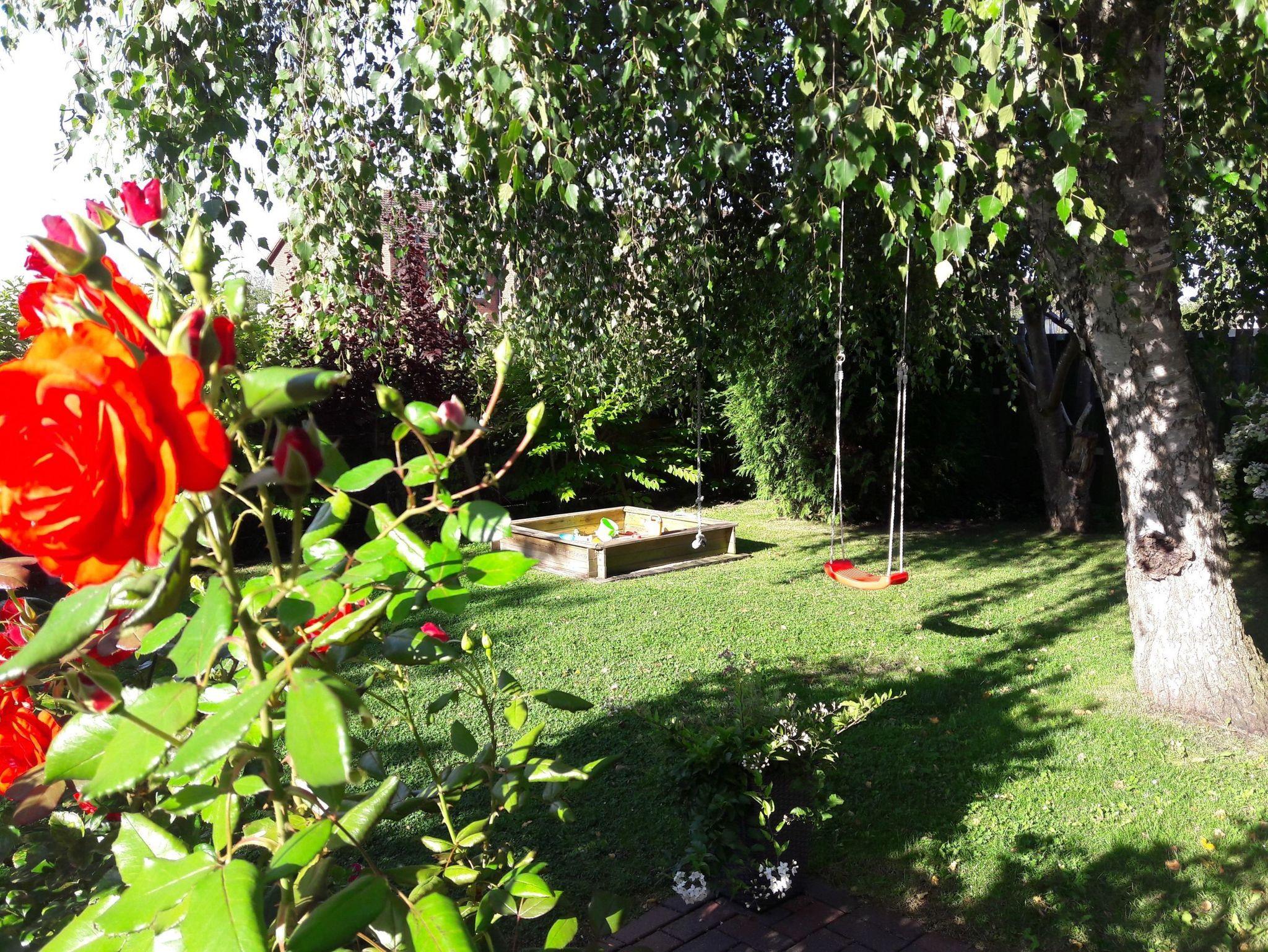 Für schöne Stunden draußen hat unser Haus Gartenliegen, Stühle und Grillmöglichkeit. Die kleinen Gäste dürfen sich über eine Sandkiste, zwei Schaukeln und Outdoor-Spielzeug freuen.