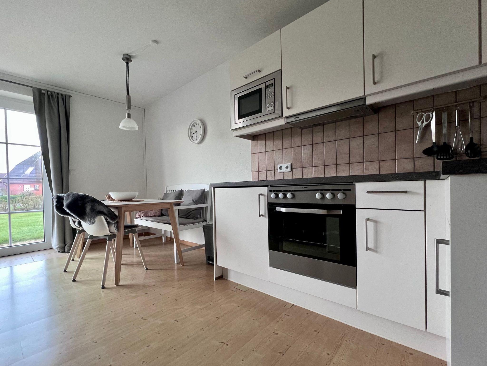 Die im Erdgeschoss liegende Wohnung befindet sich in einer gepflegten Anlage am Ende einer ruhigen Sackgasse. Der Zugang zur Wohnung erfolgt über die Terrasse. Auf der nach Süden liegenden Terrasse stehen in der Sommerzeit Gartenmöbel bereit. Der Badestrand sowie Restaurants und Eiscafes sind ca. 600 Meter entfernt. Einkaufsmöglichkeiten und die bekannte Seehundstation sind ca.4 km entfernt. Die Wohnung verfügt über ein Wohnzimmer und Küchenbereich (unter anderem mit Backofen, Mikrowelle), ein Schlafzimmer mit Doppelbett, ein Zimmer mit Einzelbett, Duschbad (NEU 2019), Sat-TV mit DVD-Player. In der Anlage ist ein Waschraum mit Waschmaschine und Trockner vorhanden. Bettwäsche und Handtücher können auf Wunsch gemietet werden.