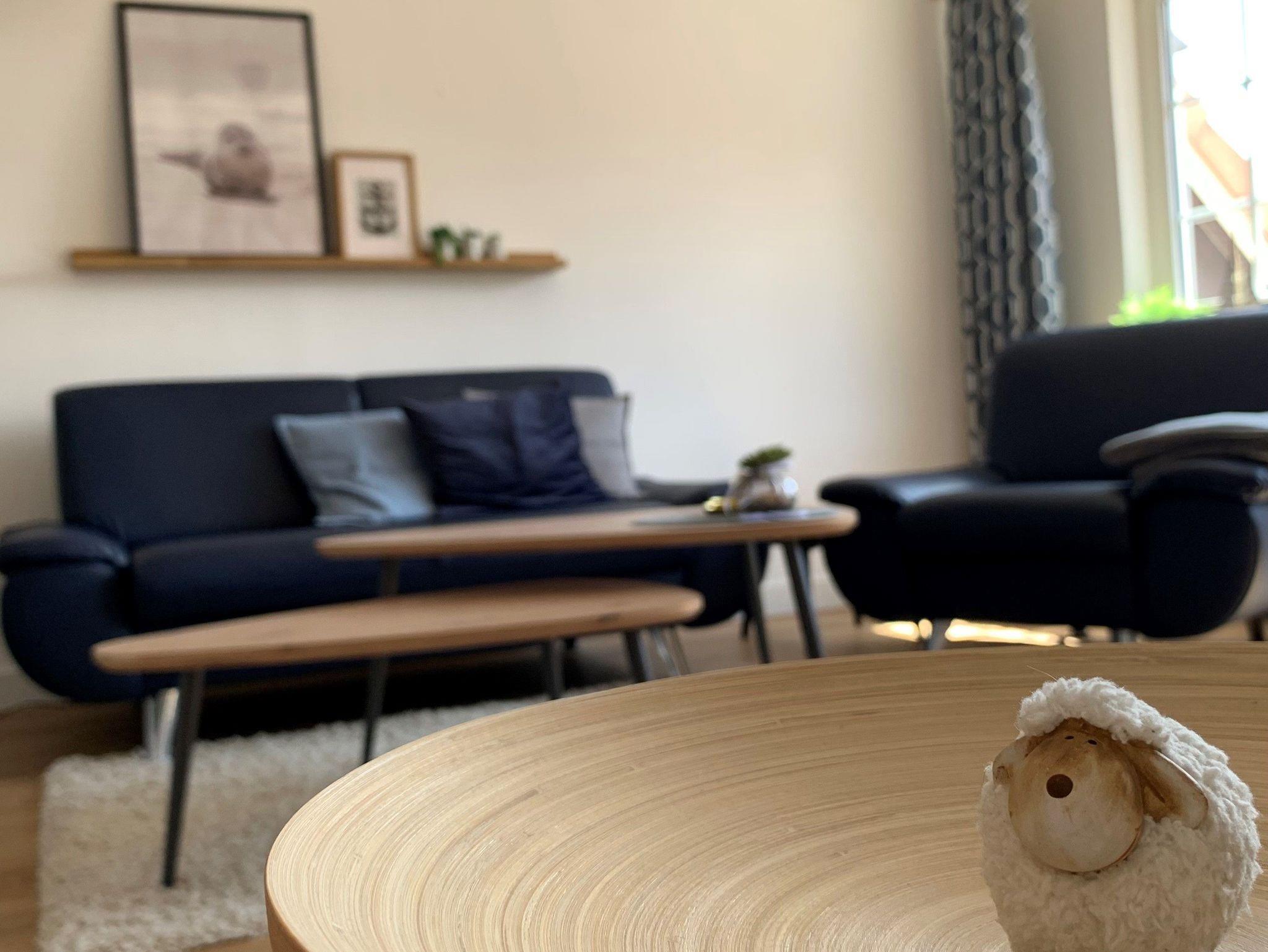 Morgens begrüßt Sie in der voll ausgestatteten Küche die Sonne. Frische Brötchen erhalten Sie in der Bäckerei im Erdgeschoss. Vom gemütlichen Wohnzimmer aus führt eine Raumspartreppe ins Dachgeschoss, wo sich das Elternschlafzimmer mit einem Doppelbett befindet und vom dem aus Sie einen herrlichen Blick über den Deich und auf das Wattenmeer haben. Ein weiteres kleines Schlafzimmer mit zwei Schlafplätzen im Ausziehbett ist in der unteren Etage vorhanden. Auf der schönen Loggia können Sie vom späten Vormittag bis zum Abend die Sonne genießen. Die 2022/23 teilmodernisierte Wohnung verfügt über einen kostenfreien WLAN-Zugang. Ein eigener Stellplatz befindet sich auf dem Grundstück.
