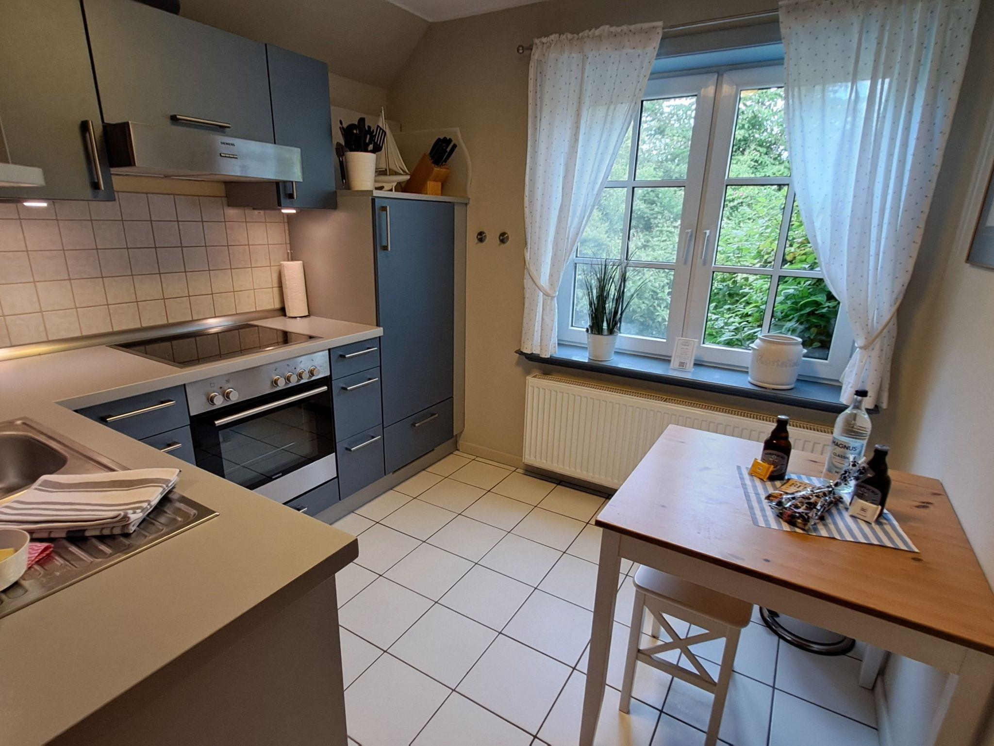 Die moderne Küche ist mit hochwertigem Equipment wie z.B. Geschirrspüler, Stabmixer, Toaster, Kaffeemaschine, Teebereiter, WMF-Kochtöpfen, Messerblock und vielem mehr ausgestattet, so dass es hier an nichts mangeln sollte. In der Grundausstattung sind z.B. Geschirrspültabs, Schwämme, Spülmittel und Gewürze vorhanden.