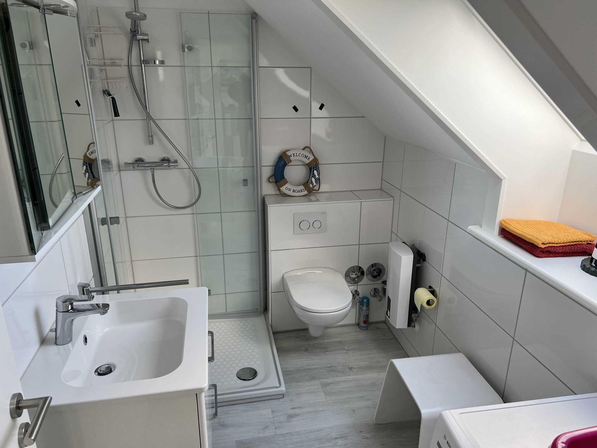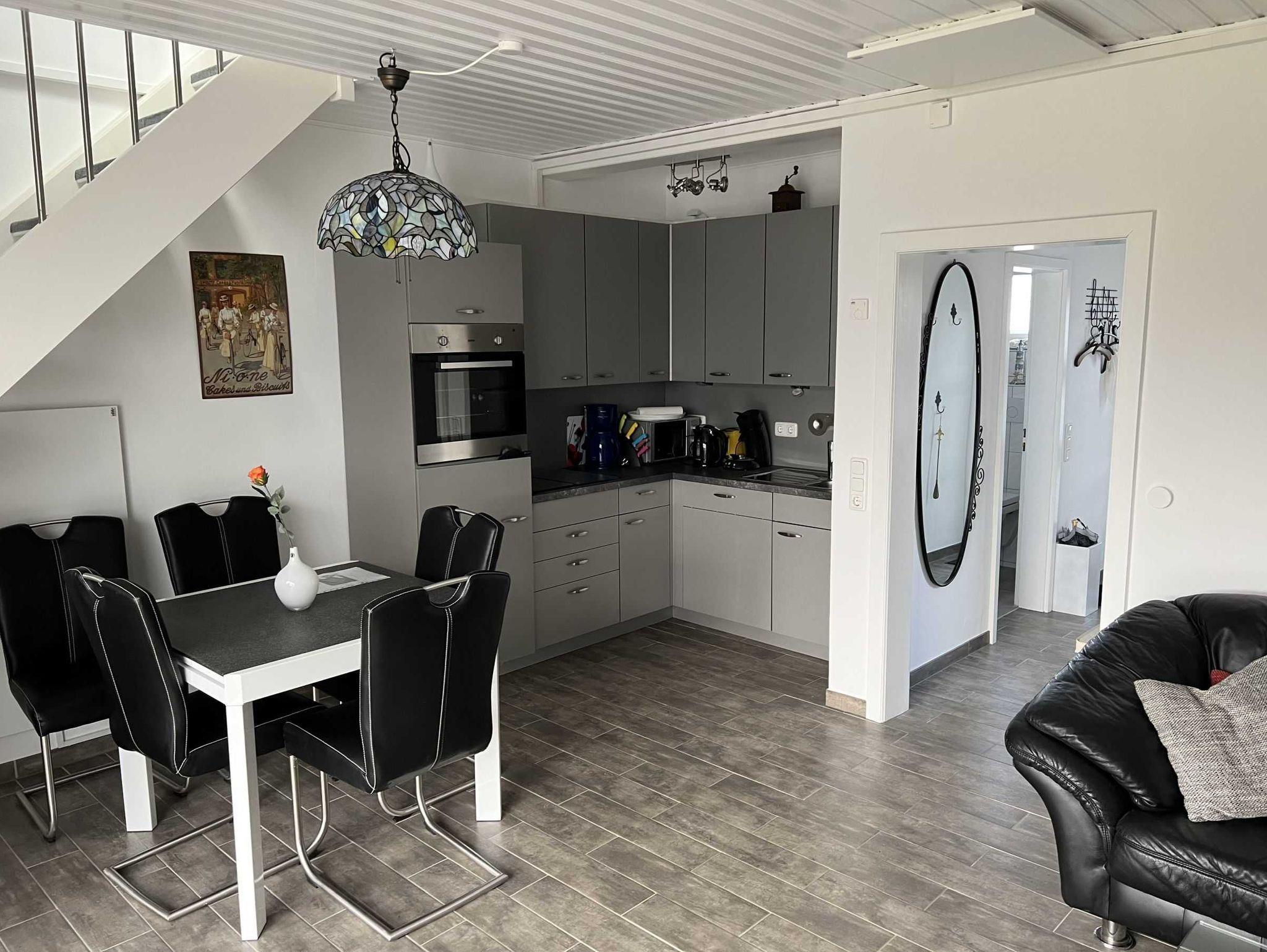 EBK mit Geschirrspüler, Backofen, Kühlschrank + Mikrowelle im Erdgeschoss, SAT-TV + Radio, DVD. Das Reihenhaus verfügt über 3 Fernseher, Waschmaschine, Infrarot-Heizung