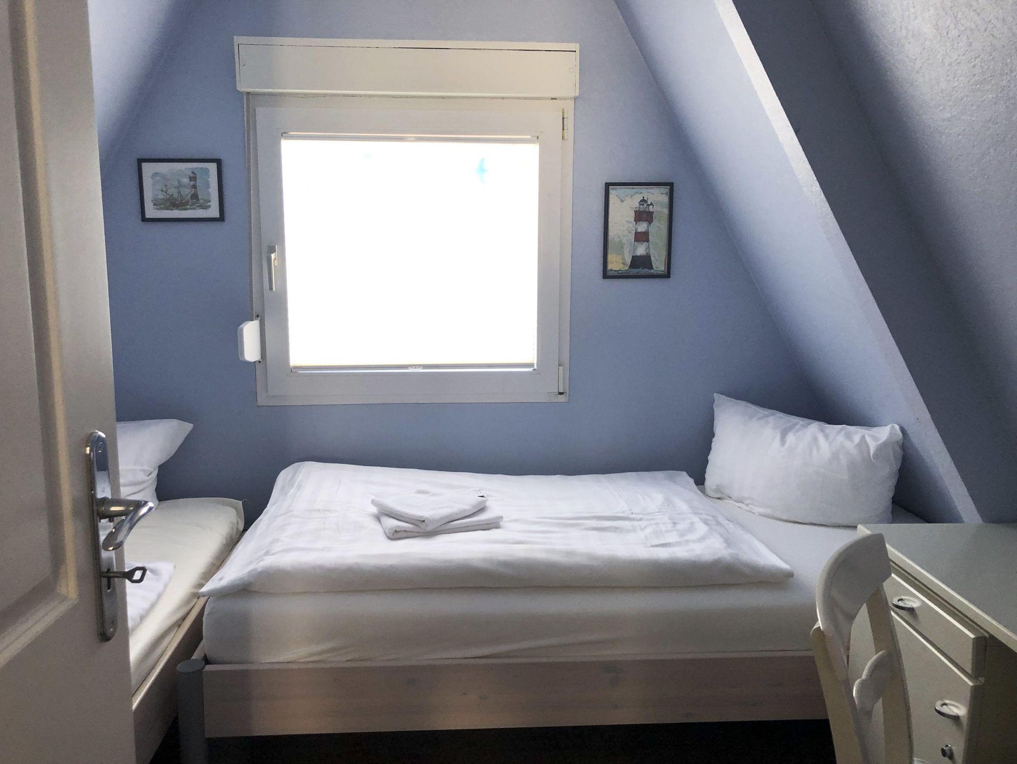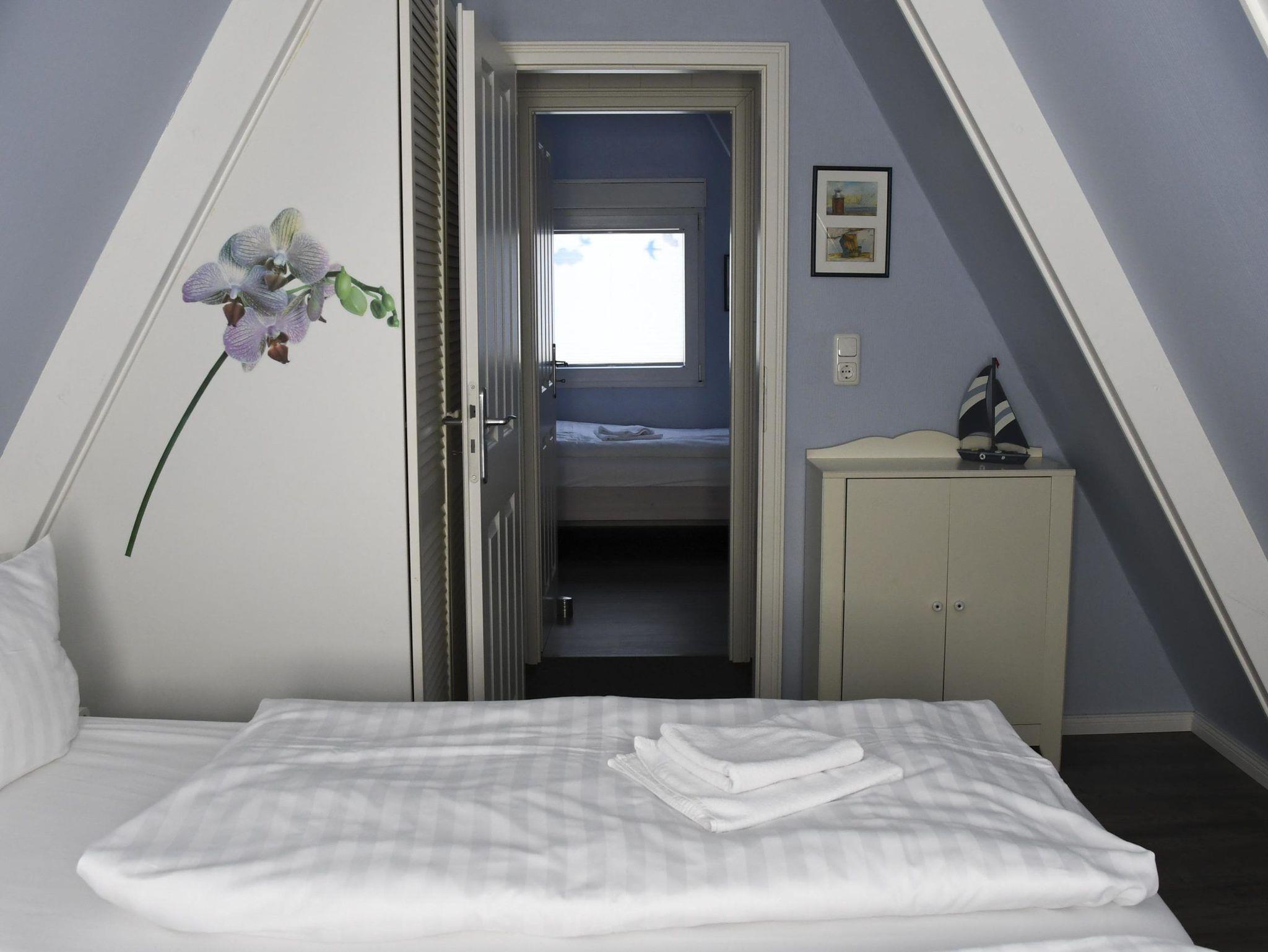 1 Schlafraum mit 2 Einzelbetten 90 cm x 200 cm mit TV-Fernseher, Sämtliche Fußbodenbeläge sind wischbar!