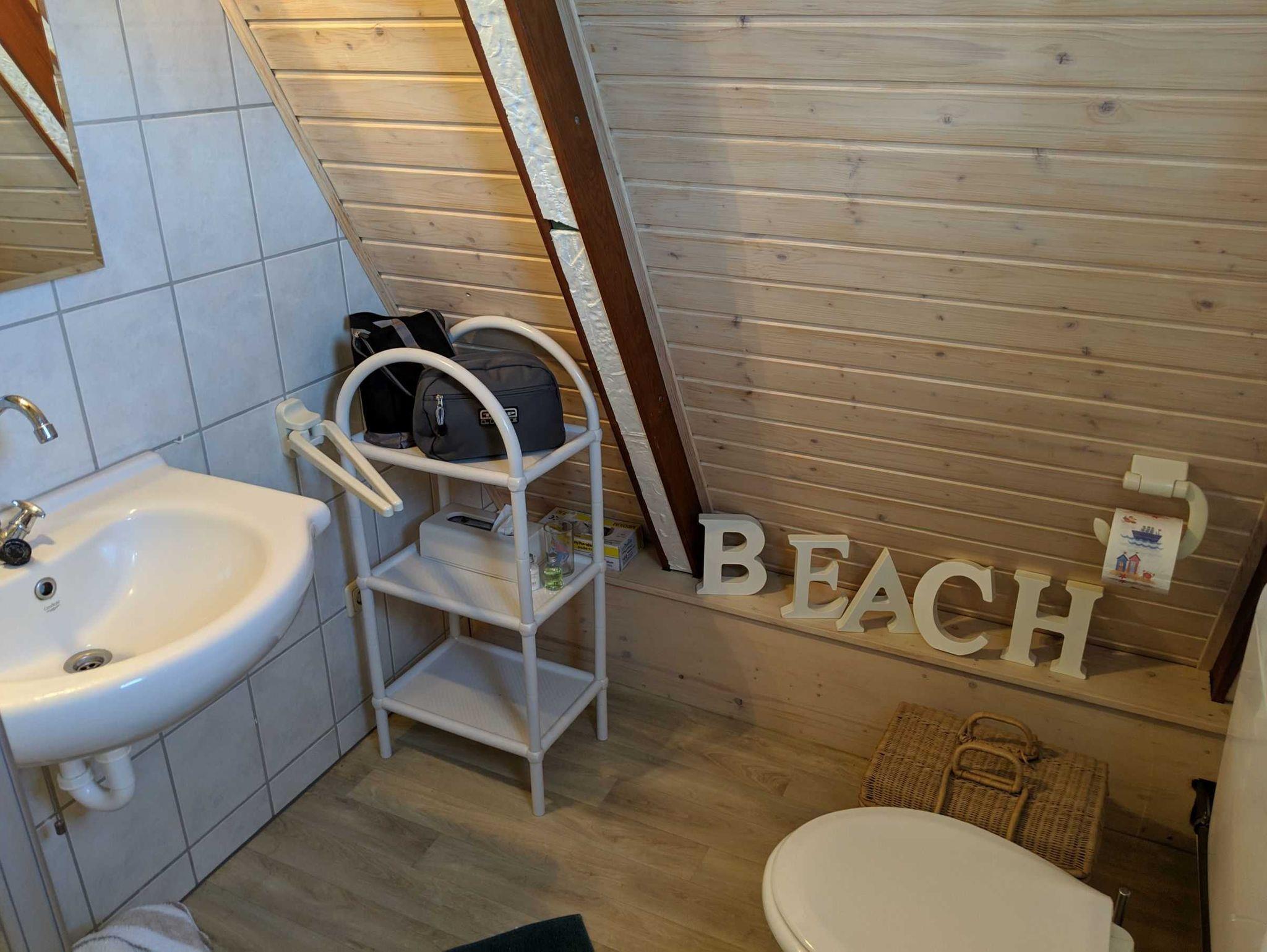 Gemütliches individuell eingerichtetes Nurdachferienhaus für maximal vier Personen mit zirka 65 m². Mit großem Garten am Eckgrundstück im Wendehammer nur 100 Meter vom Deich mit Badestrand. Die Einrichtung des Wohnzimmer u.A. Sitzecke mit Couch, Essbereich, Fernseher mit Sat-Anschluß, Video und Radio/CD. Voll ausgestattete Küche u.A. Spüle, 4-Plattenherd mit Backofen, Mikrowelle und Spülmaschine. Zwei Schlafzimmer u.A.jeweils zwei Einzelbetten, Nachttisch, Schrank, Kinderreisebett. Bad u.A. Dusche, Waschbecken und Toilette.