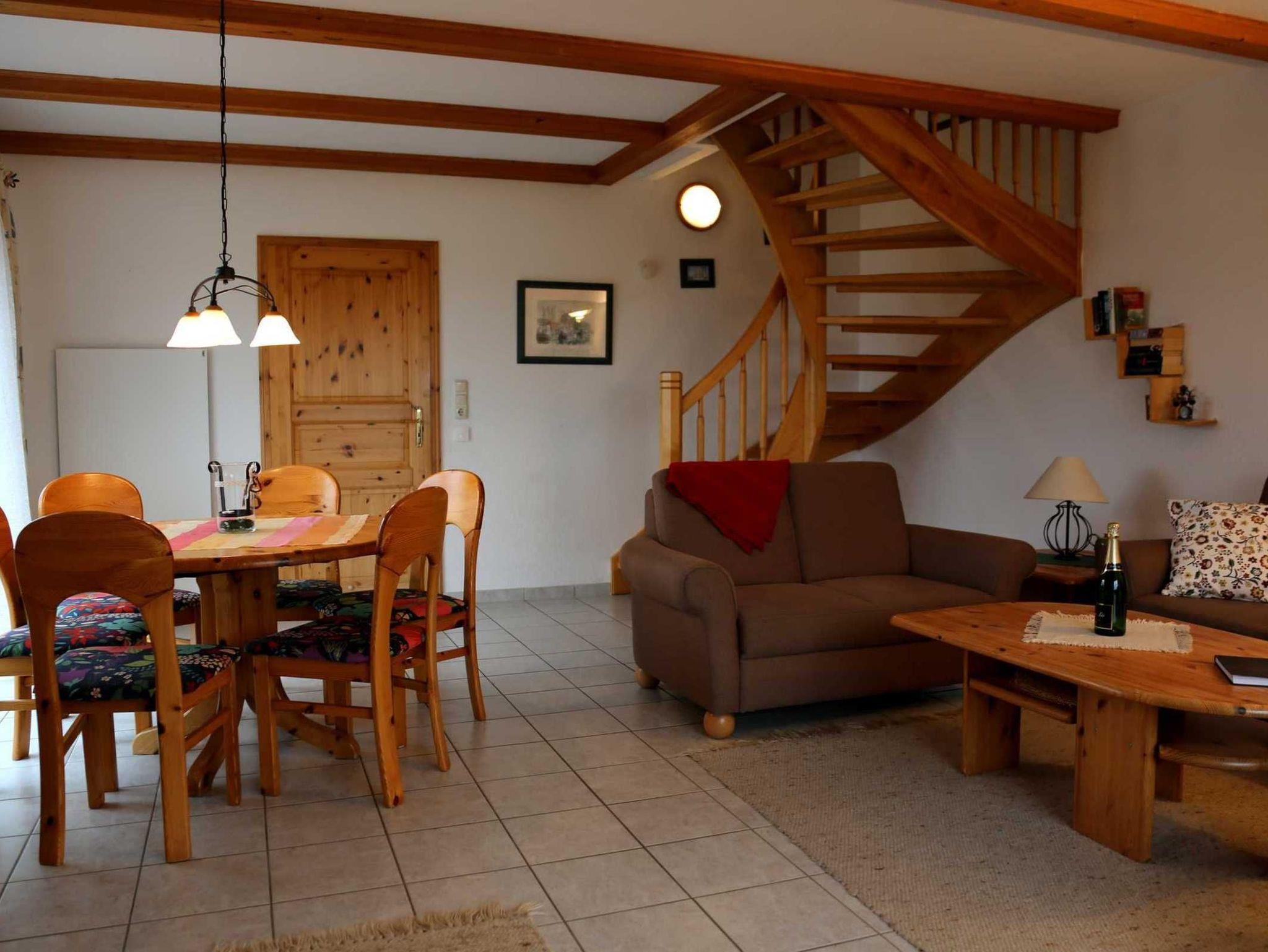 Erdgeschoß: Großer Wohnraum mit Sitzgruppe und Eßtisch, LCD-TV, Radio.
