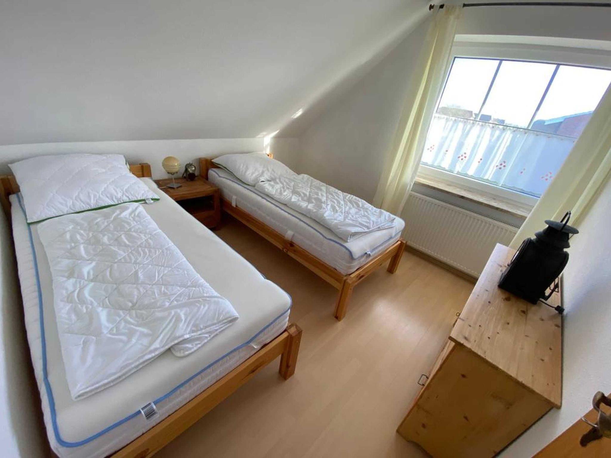 • 1 Schlafraum mit 2 Einzelbetten (als Doppelbett gestellt) im OG
