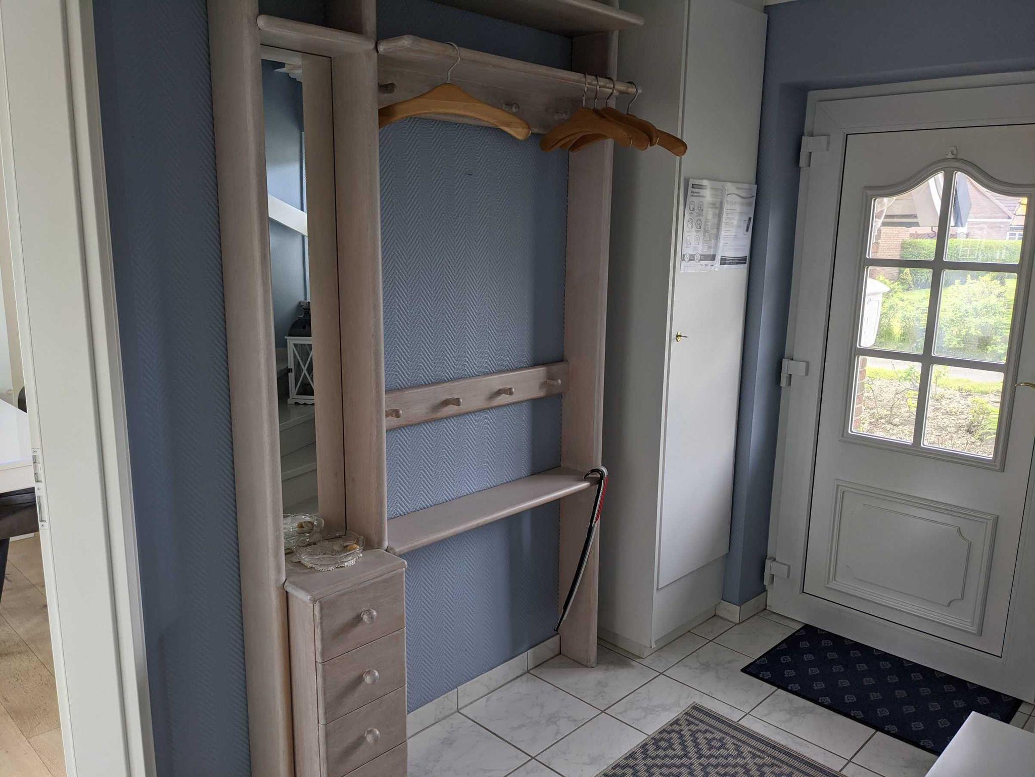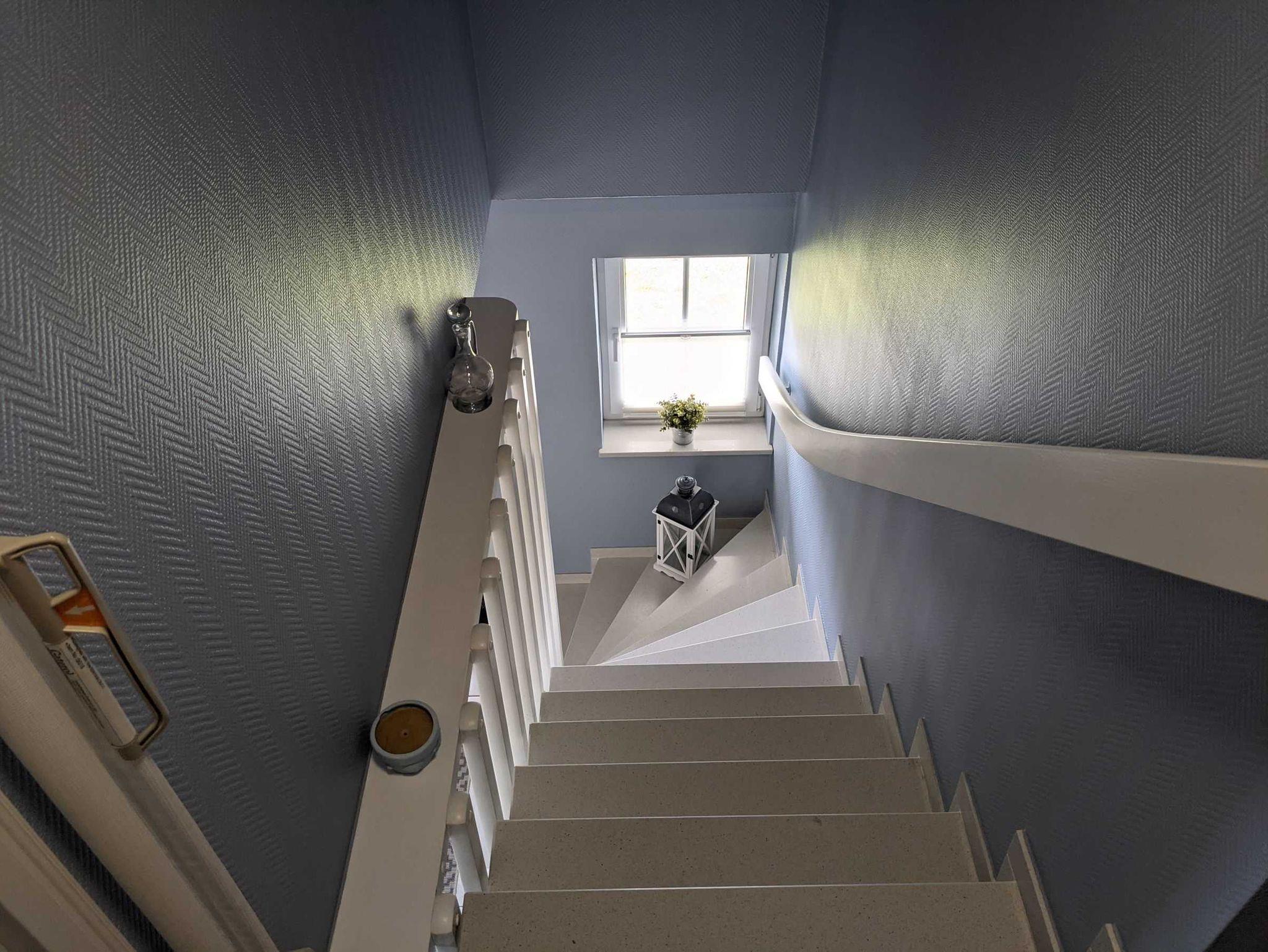 • Das Obergeschoß ist mit Vinylboden ausgelegt. Das Erdgeschoß mit Fliesen und Parkettboden.