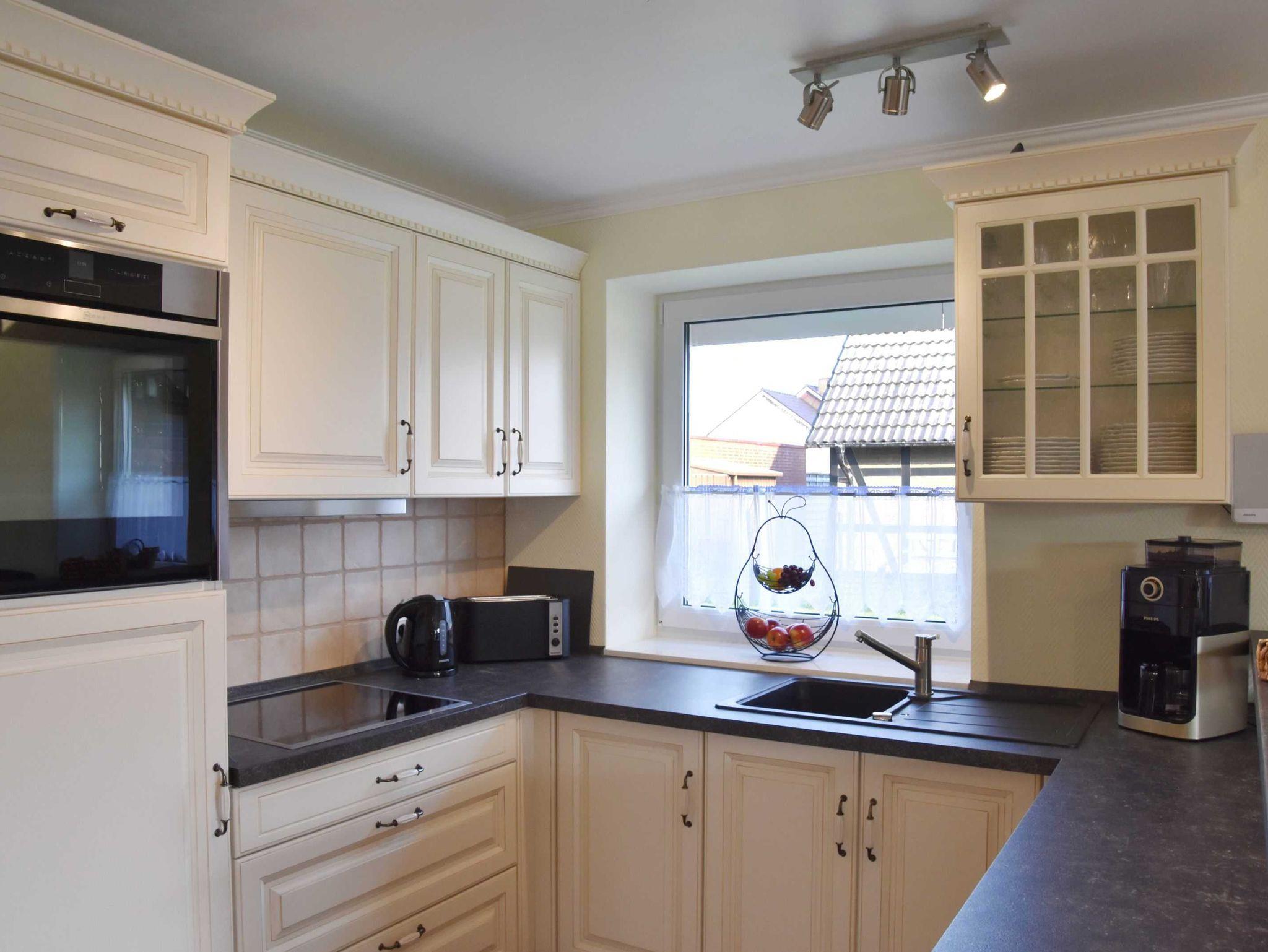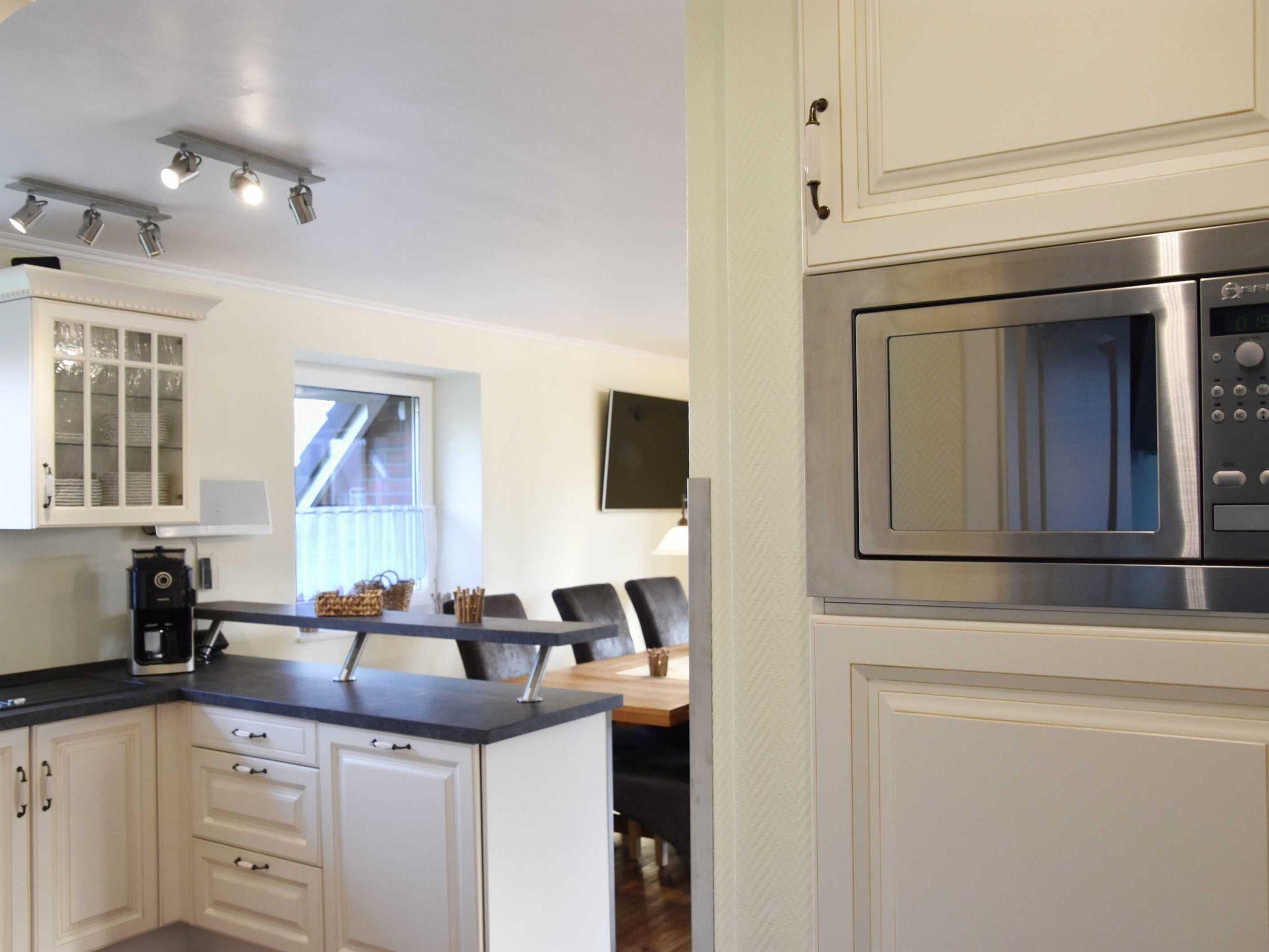 • Ausstattung Küche: Geschirrspüler extra leise, Ceranfeld, autark Dunstabzugshaube, Heißluftherd, Mikrowelle, Kühlschrank mit 3 Sterne Gefrierfach, Toaster, Wasserkocher, Kaffeemaschine mit Mahlwerk, Geschirr und Gläser für 12 Personen, Besteck, Töpfe usw. in ausreichender Anzahl, Stauraum für Lebensmittel und Getränke