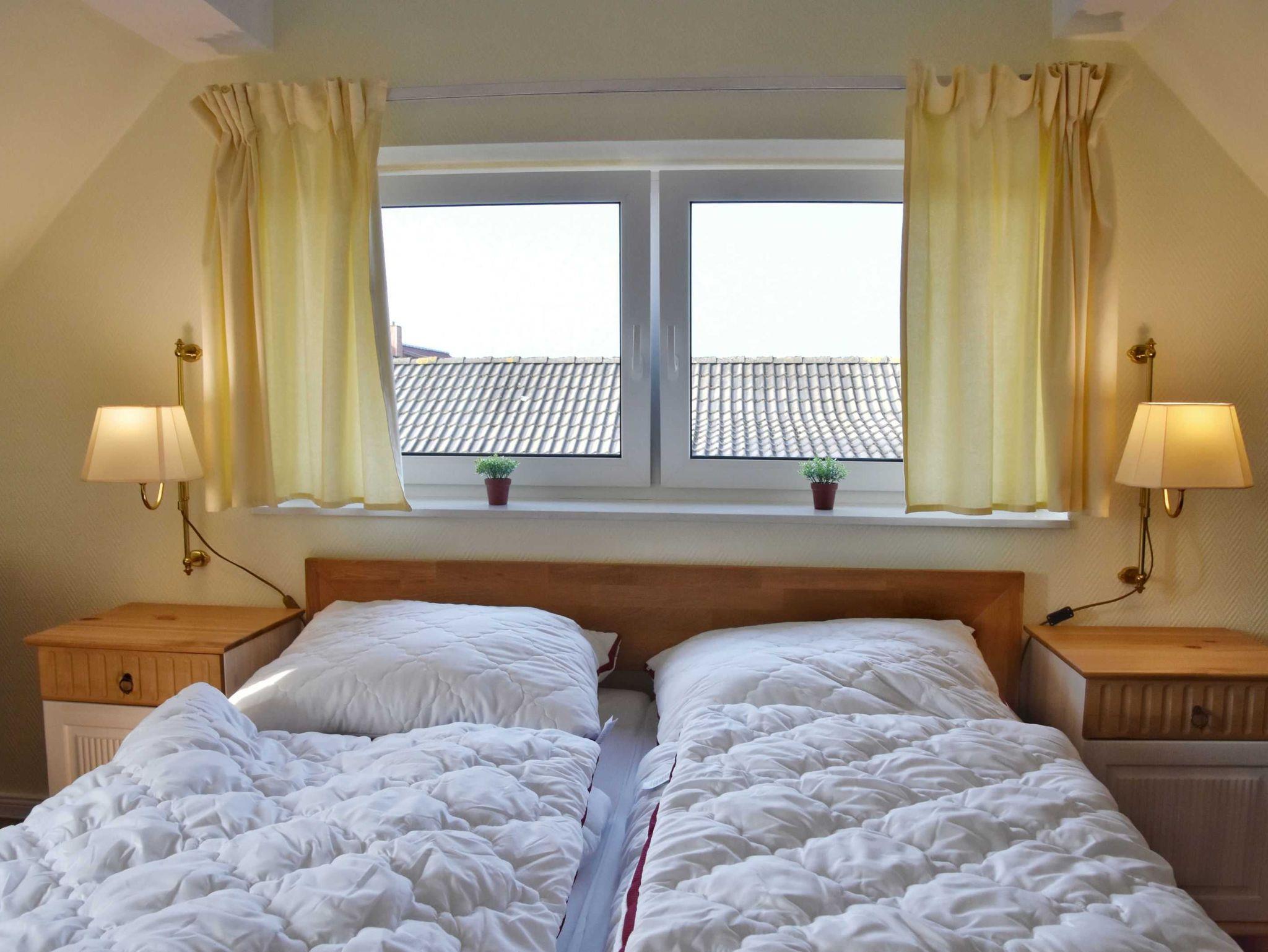 2 Schlafzimmer mit Doppelbett (160x200) im Erdgeschoß. 1 Schlafzimmer mit Doppelbett (160x200) im 1. Obergeschoß. Je 1x Dusche/WC im EG und OG. Der Garten ist komplett eingezäunt und hat einen abschließbaren Abstellraum für Fahrräder. Terrasse und Balkon mit Lounge-Möbel. Bettwäsche und Handtücher sind inklusive. Privatparkplatz auf dem Grundstück. Haustiere sind nicht erlaubt!