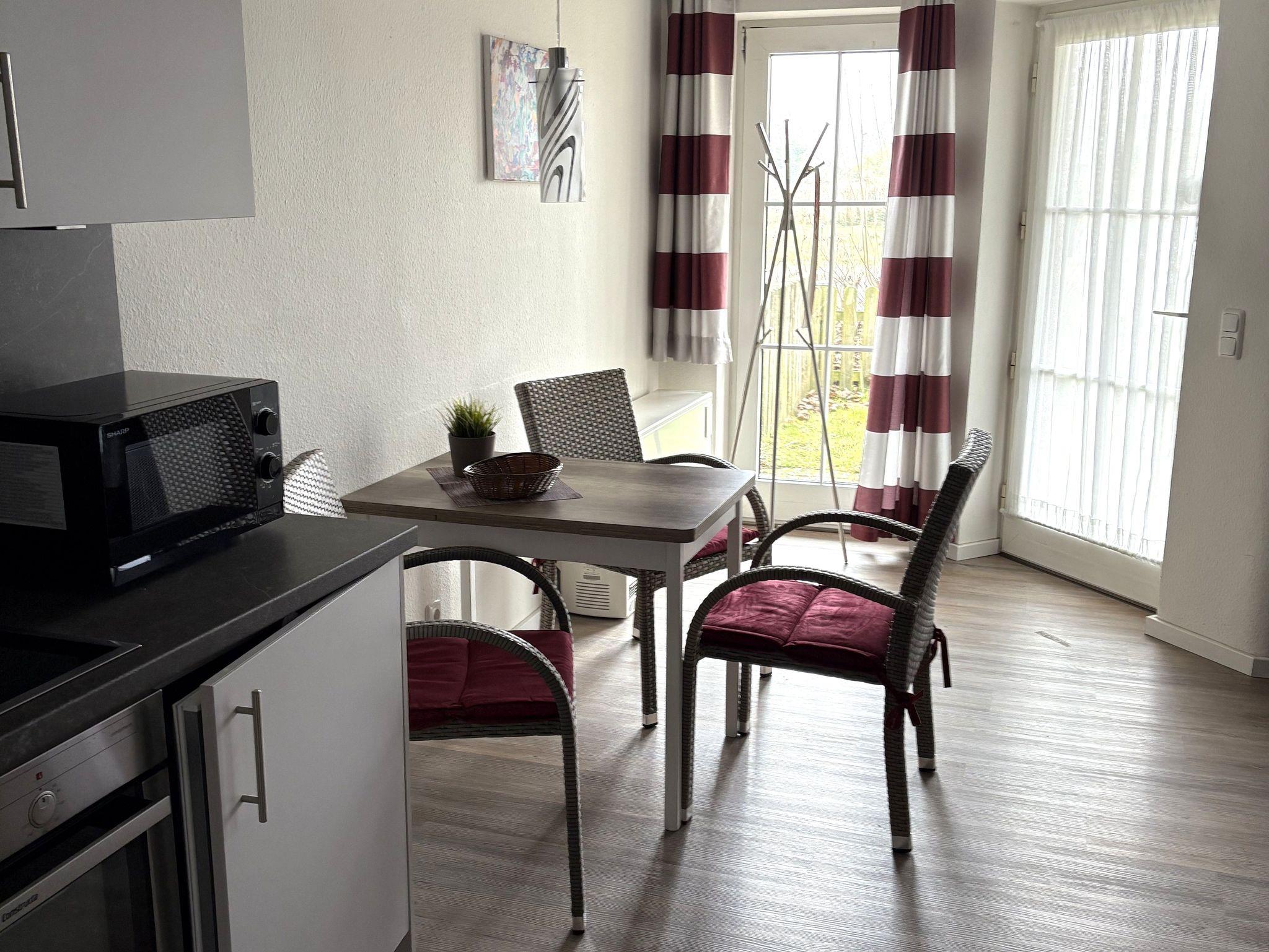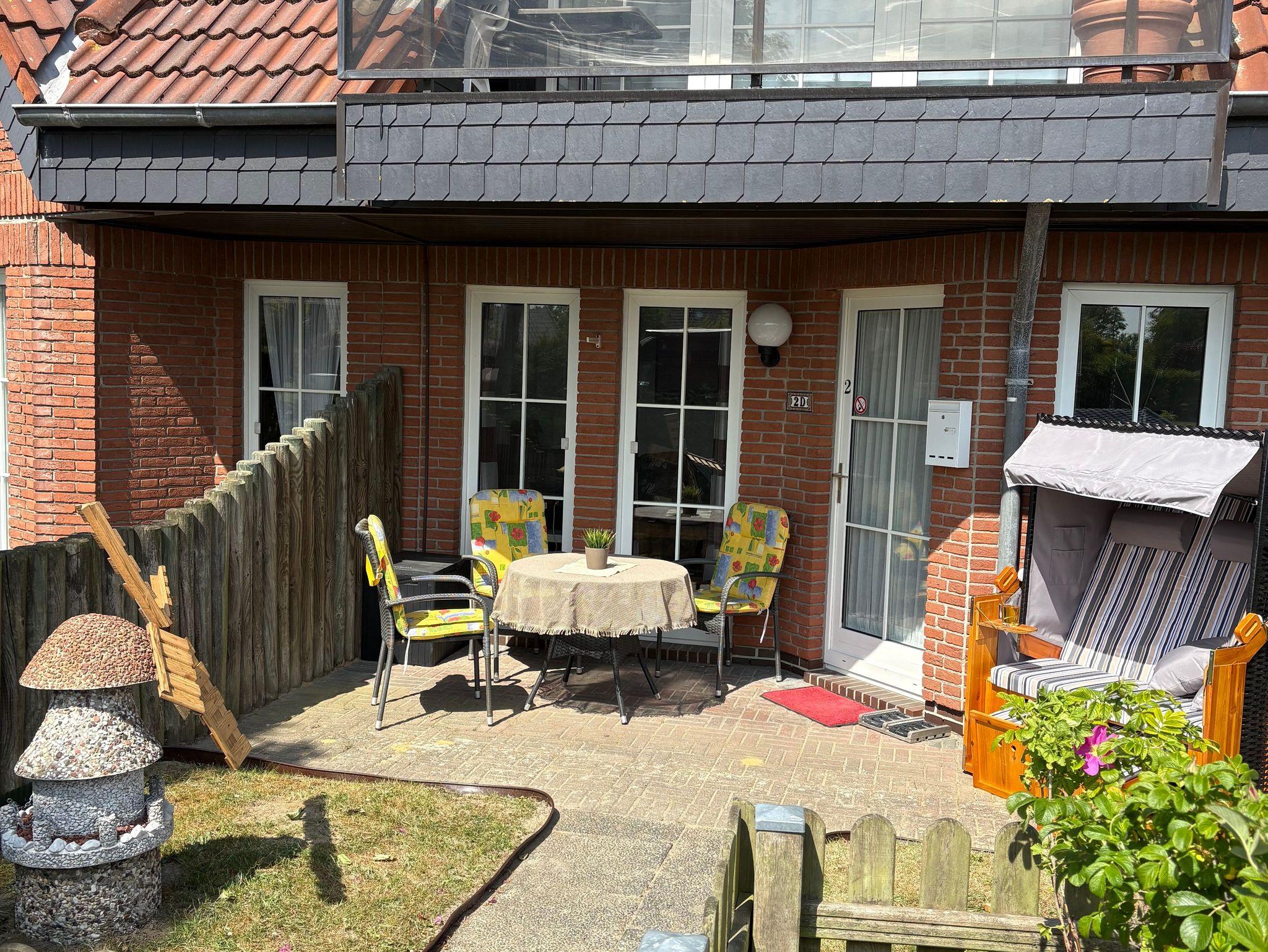 Zur Wohnung gehört außerdem eine teils überdachte Terrasse mit Gartenmöbeln und ein kleiner, eingezäunter Garten ideal zum Entspannen oder für den Urlaub mit Hund. Bis zu zwei Hunde sind in der Ferienwohnung herzlich willkommen.