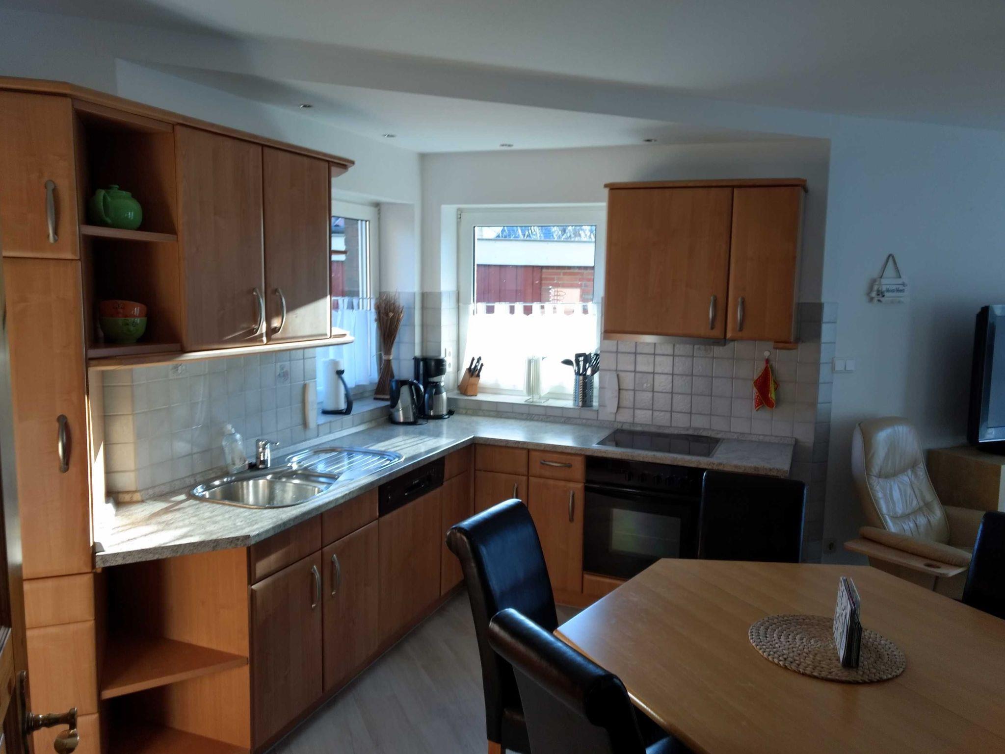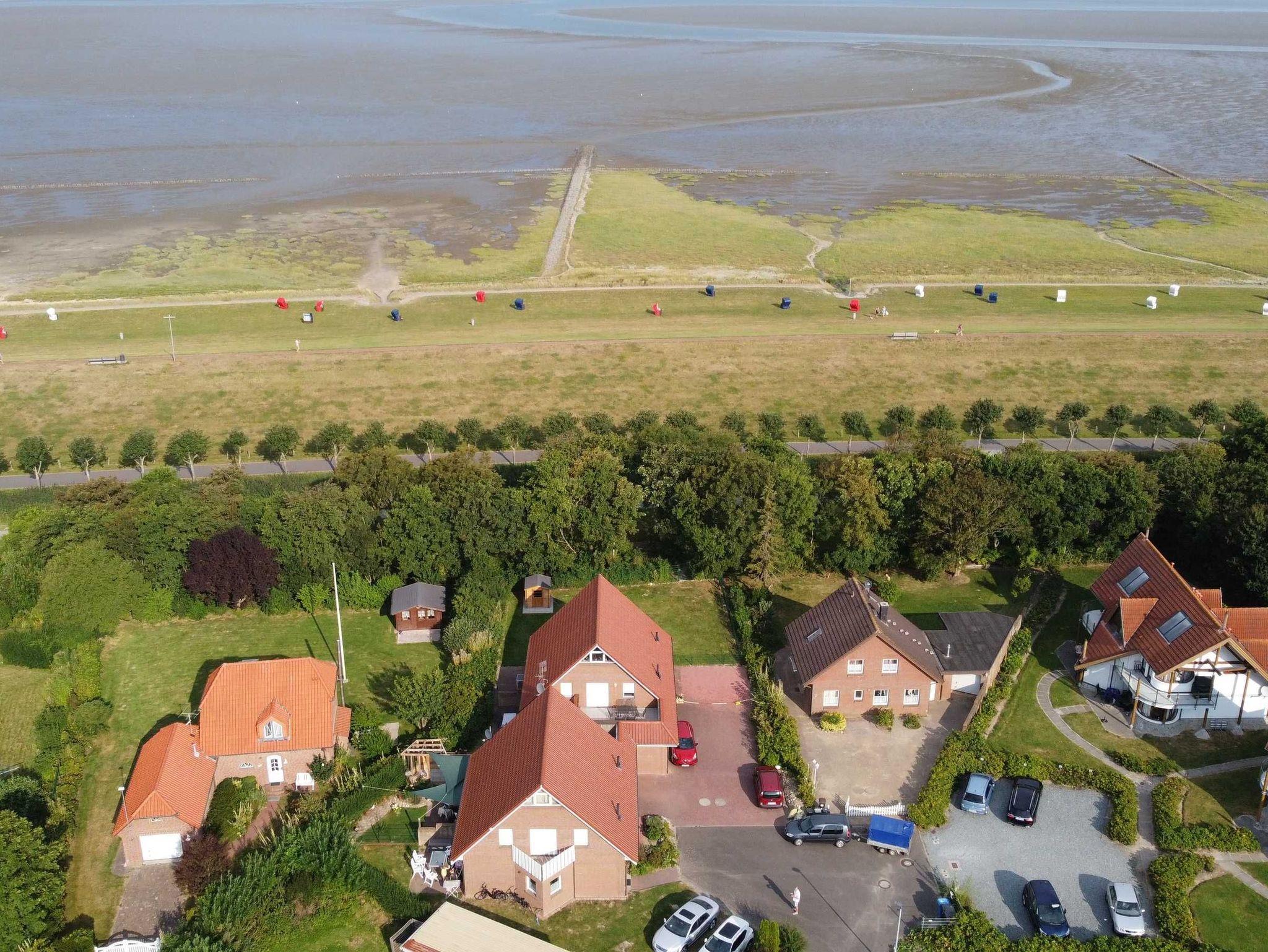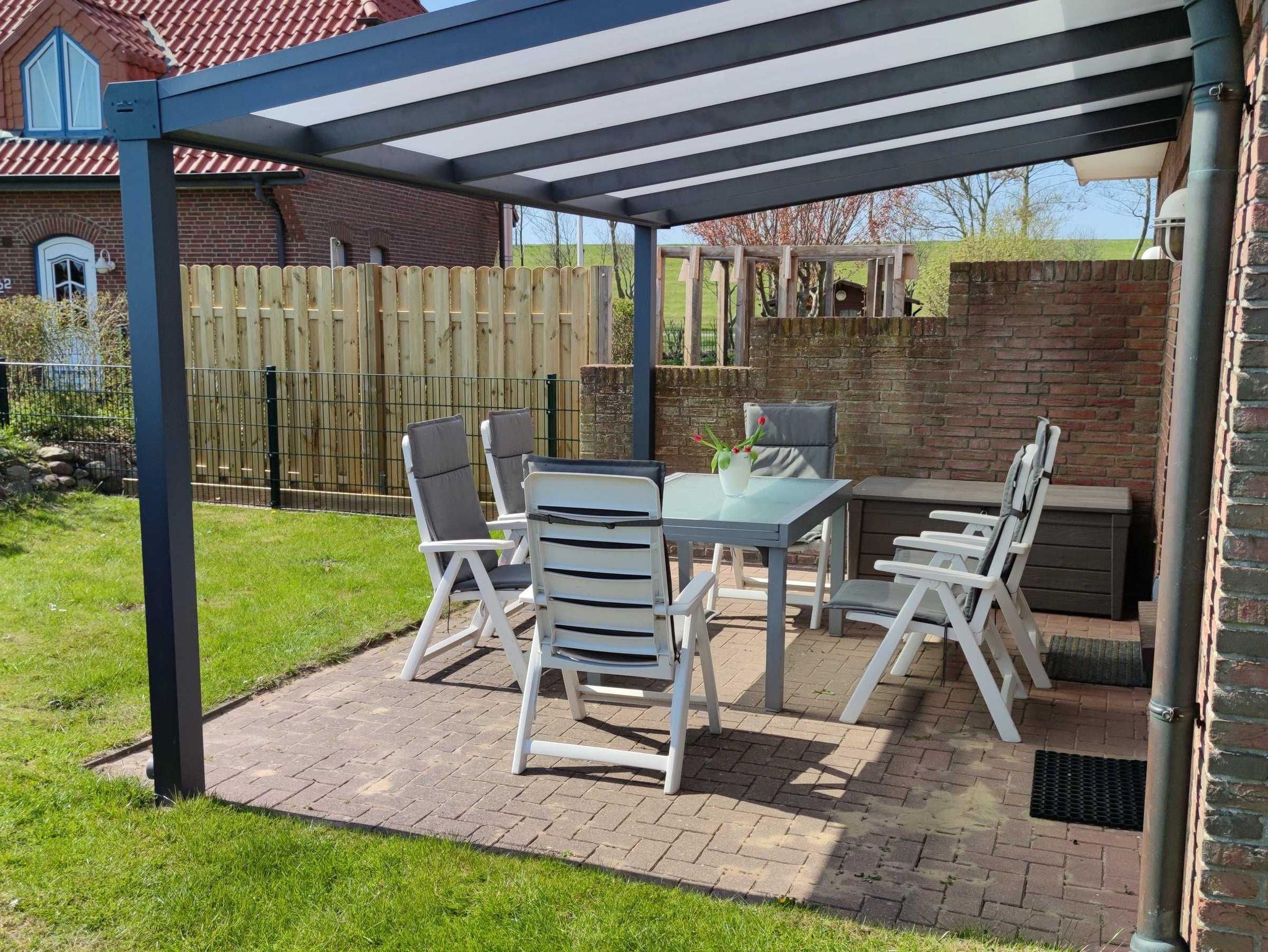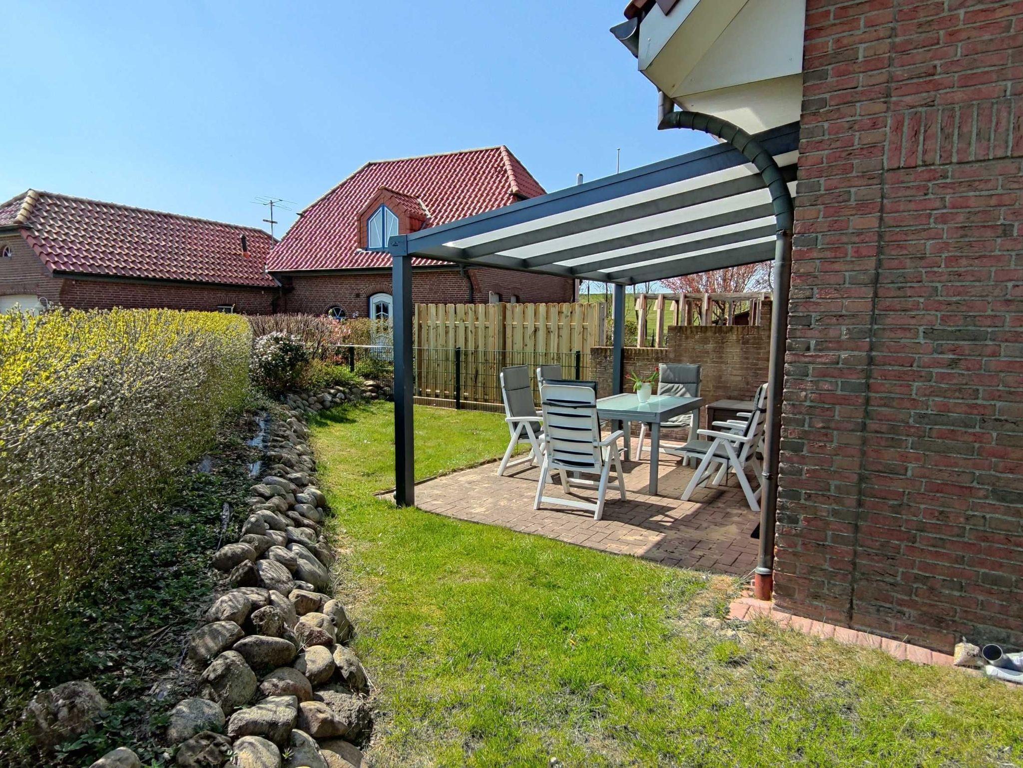 Die 1998 massiv erbaute Doppelhaushälfte bietet max. 6 Personen Platz (optimal 4 Erw. und 2 Kinder). Zu dem Haus gehören eine überdachte Terrasse ( Südwestlage ) und ein Garten mit 2 Pkw Einstellplätzen. Der Garten ist komplett durch einen Zaun eingefriedet. Das Haus liegt in einer ruhigen Sackgasse hinter dem Deich.