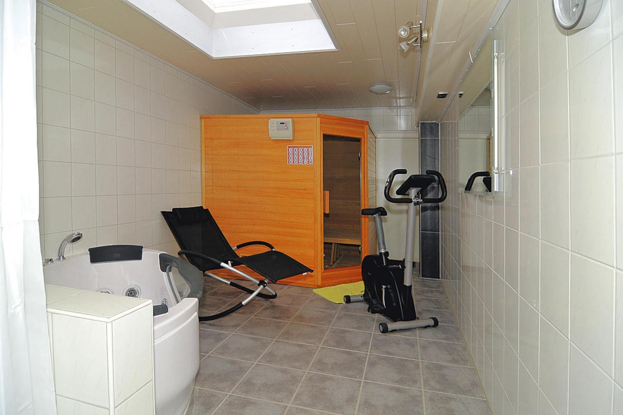 Stueetage: (Køkken(kogeplade(Komfur med fire kogeplader, glaskeramisk, elektrisk), elkedel, emhætte, kaffemaskine, ovn, mikrobølgeovn, opvaskemaskine , køleskab(+ fryser)), stue / spisestue(Fjernsyn(parabol), spisebord, sofahjørne), toilet(håndvask, toilet)) Loft: (soveværelse(dobbeltseng), soveværelse(2x enkeltseng), badeværelse(bruser, håndvask, toilet, føntørrer)) Sidebygning: (Bubble bath(deles med andre gæster, indendørs, betalt), sauna(deles med andre gæster, betalt)) grill, vaskemaskine, terrasse, havemøbler, parkering, cykler til rådighed, barnestol, baby crib(free), Vaskeripakke inkl.