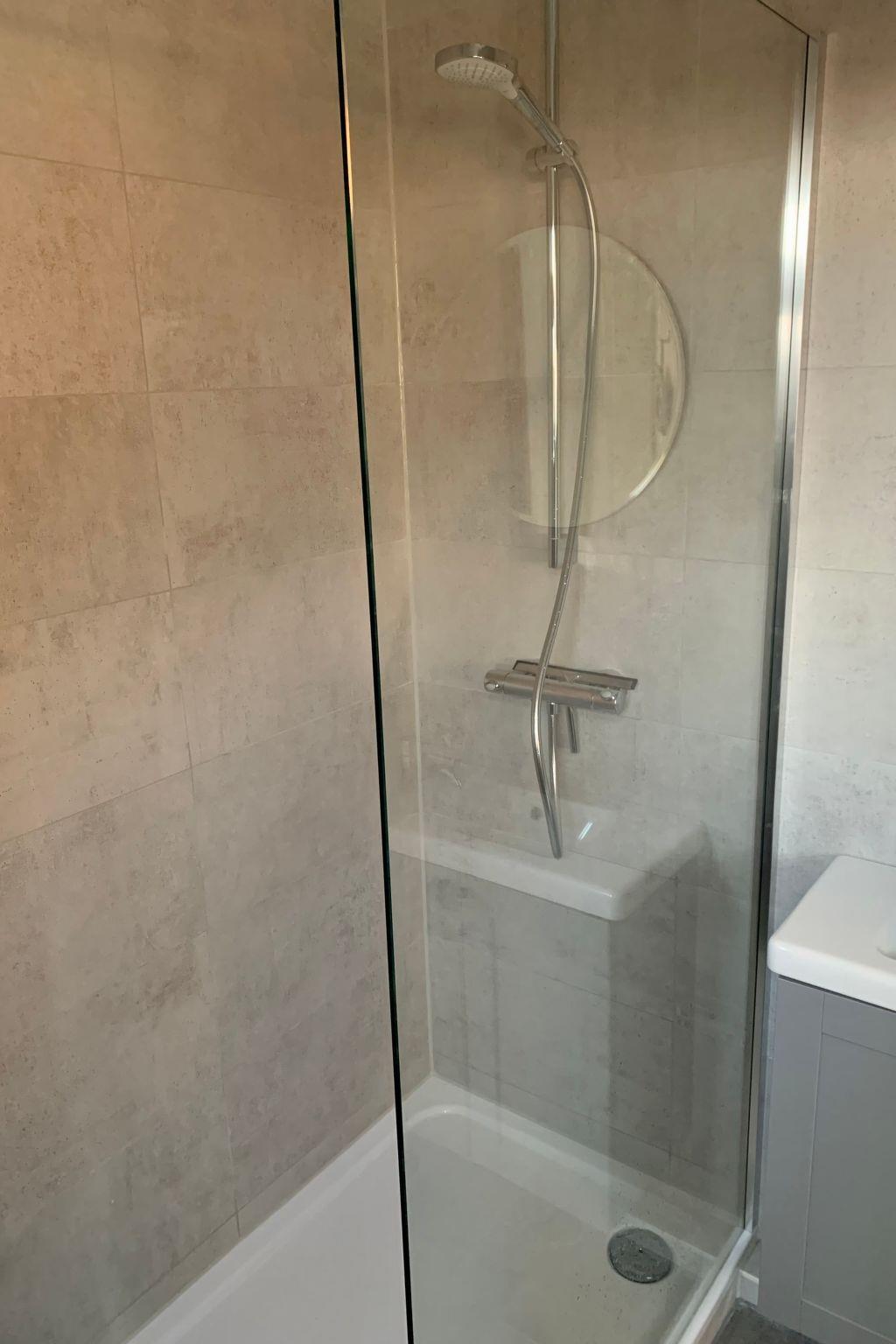 - Open-plan living and dining area with modern fitted kitchen and bar counter