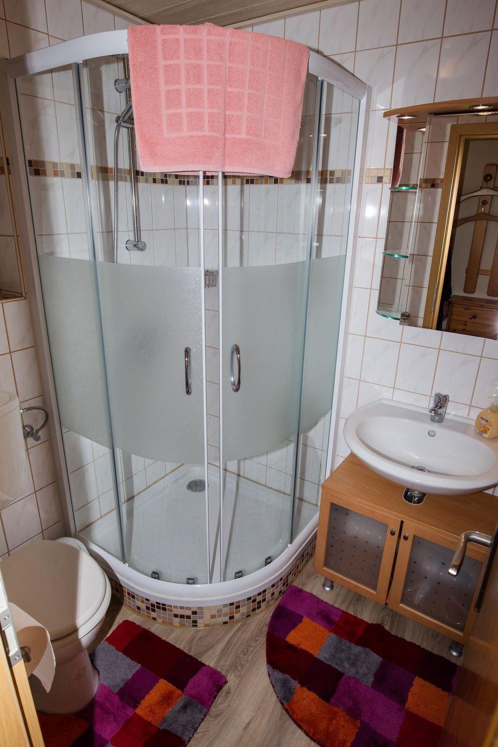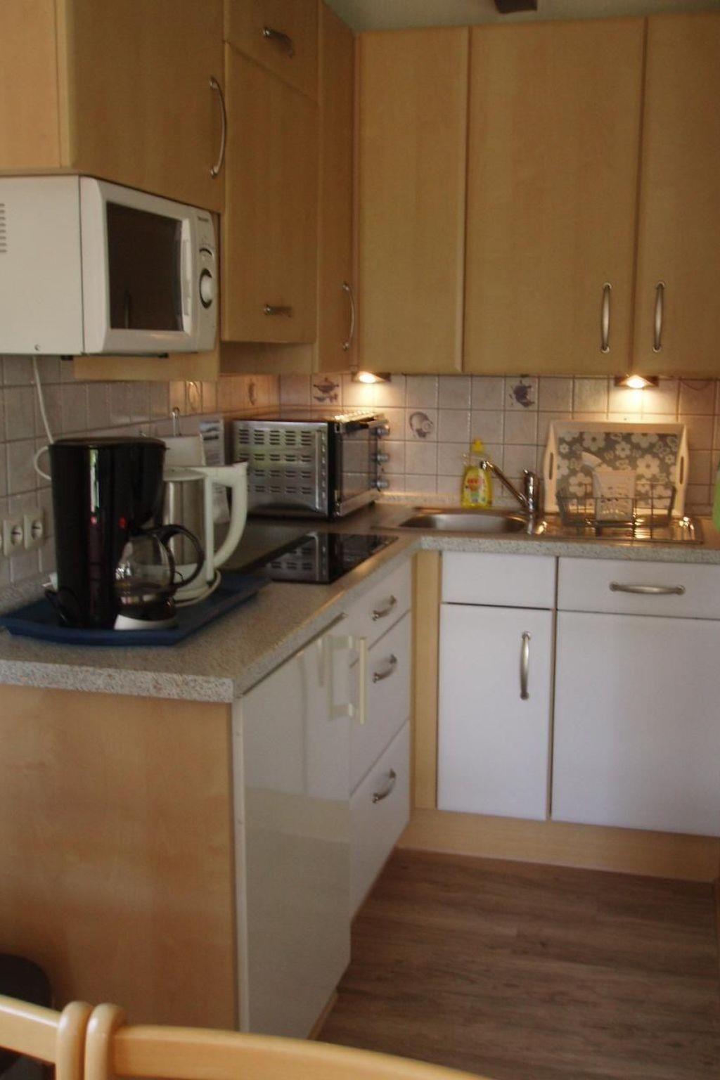 The holiday flats in the semi-detached house are small but nice. The flats are spread over 2 floors and each has a living room with access to the terrace. Two bedrooms (all beds are made), a bathroom and a very well-equipped kitchen with 4-burner ceramic hob, oven, dishwasher, microwave, fridge with freezer compartment are included. The bedrooms are furnished with a double bed, the other with two single beds and the windows are fitted with external blinds and fly screens. A cot and high chair can be provided if required. Max. 4 persons, 50 m² living space, 3 rooms, shower/WC, WLAN, washing machine (free of charge)