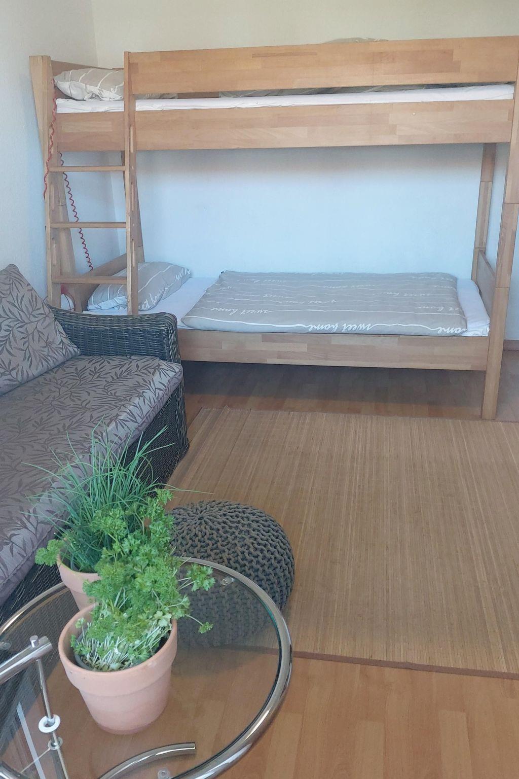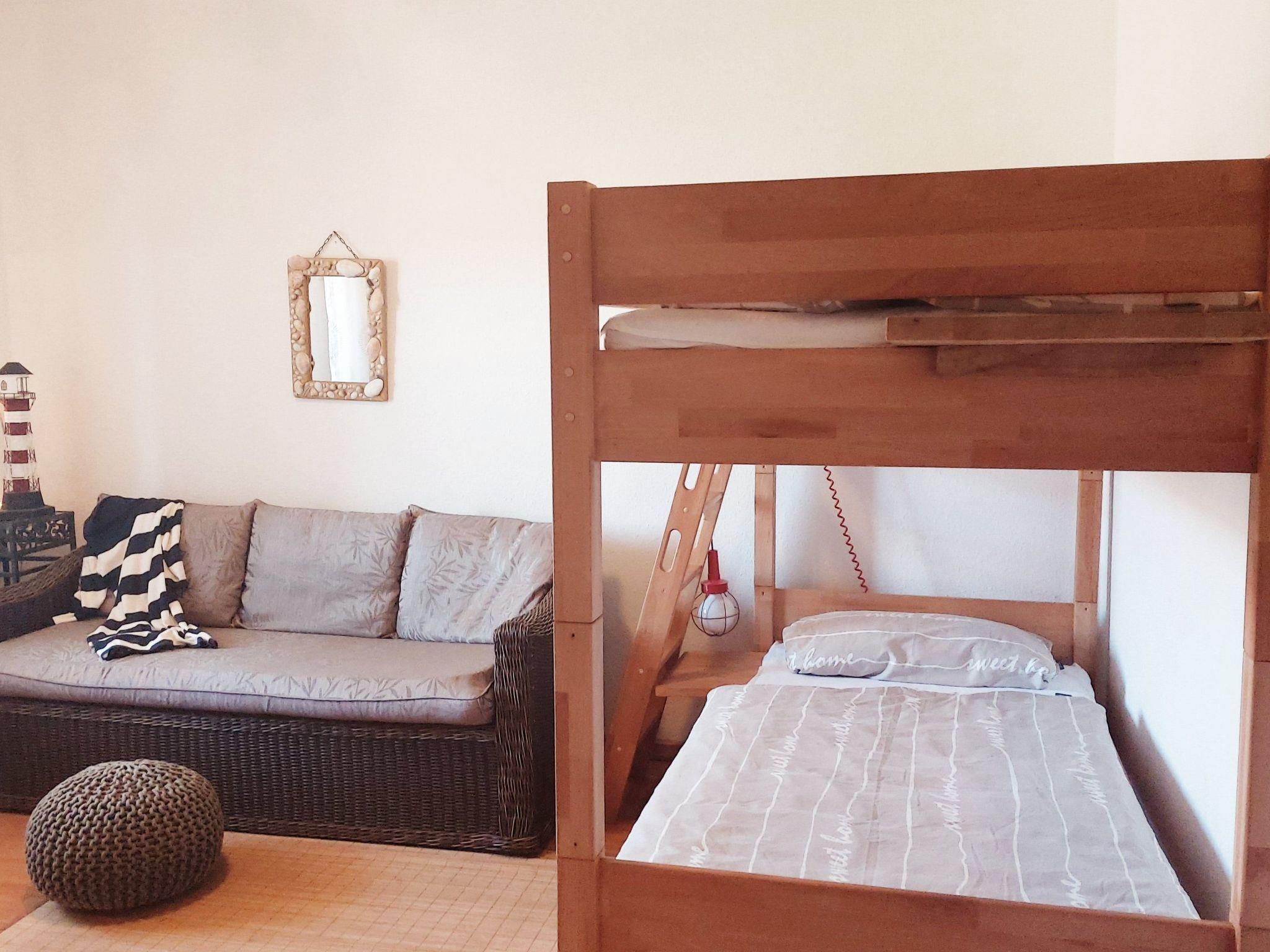 - Bedroom 2 offers a comfortable night's sleep in the natural wood bunk bed and plenty of storage space in the wardrobe and display cabinet, plus space to play and a small reading corner if you want to retreat. Here, too, you will find an external blind to darken the room at night.