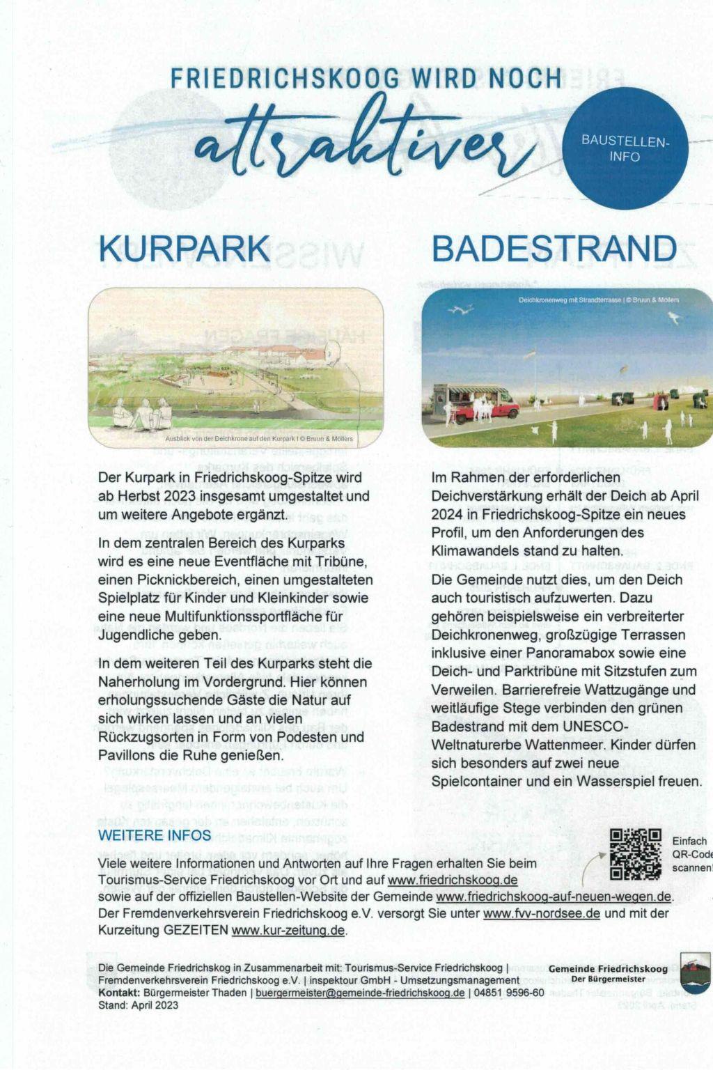 Up-to-date information on the work in connection with the dyke reinforcement required as part of the coastal protection programme can be found on the website: "Friedrichskoog on new paths" or scan the QR code that you will find in our photo gallery. There you will also find a short summary of the measures.