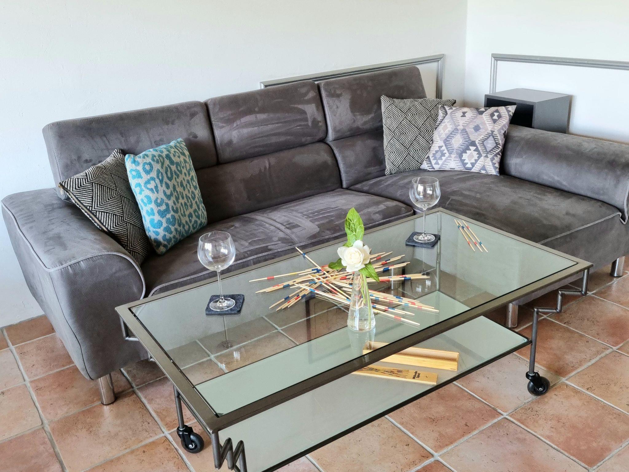 - Living room with comfortable corner sofa with adjustable head cushions for relaxing watching TV, DVD, listening to music, chatting or reading...