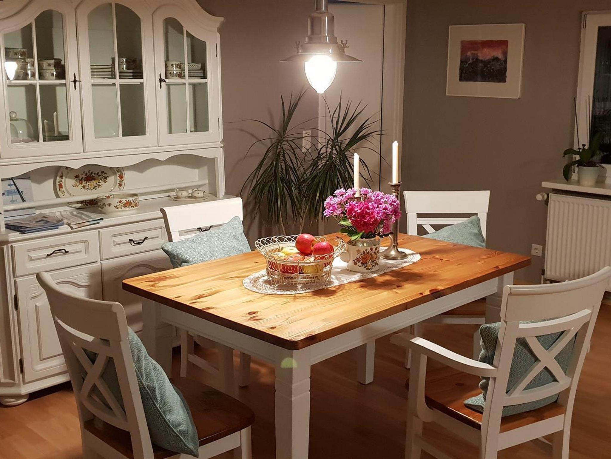 Unsere naturnahe Ferienhaushälfte wurde 2023 komplett renoviert und ist für unsere Gäste im Landhausstil modern und komfortabel eingerichtet.