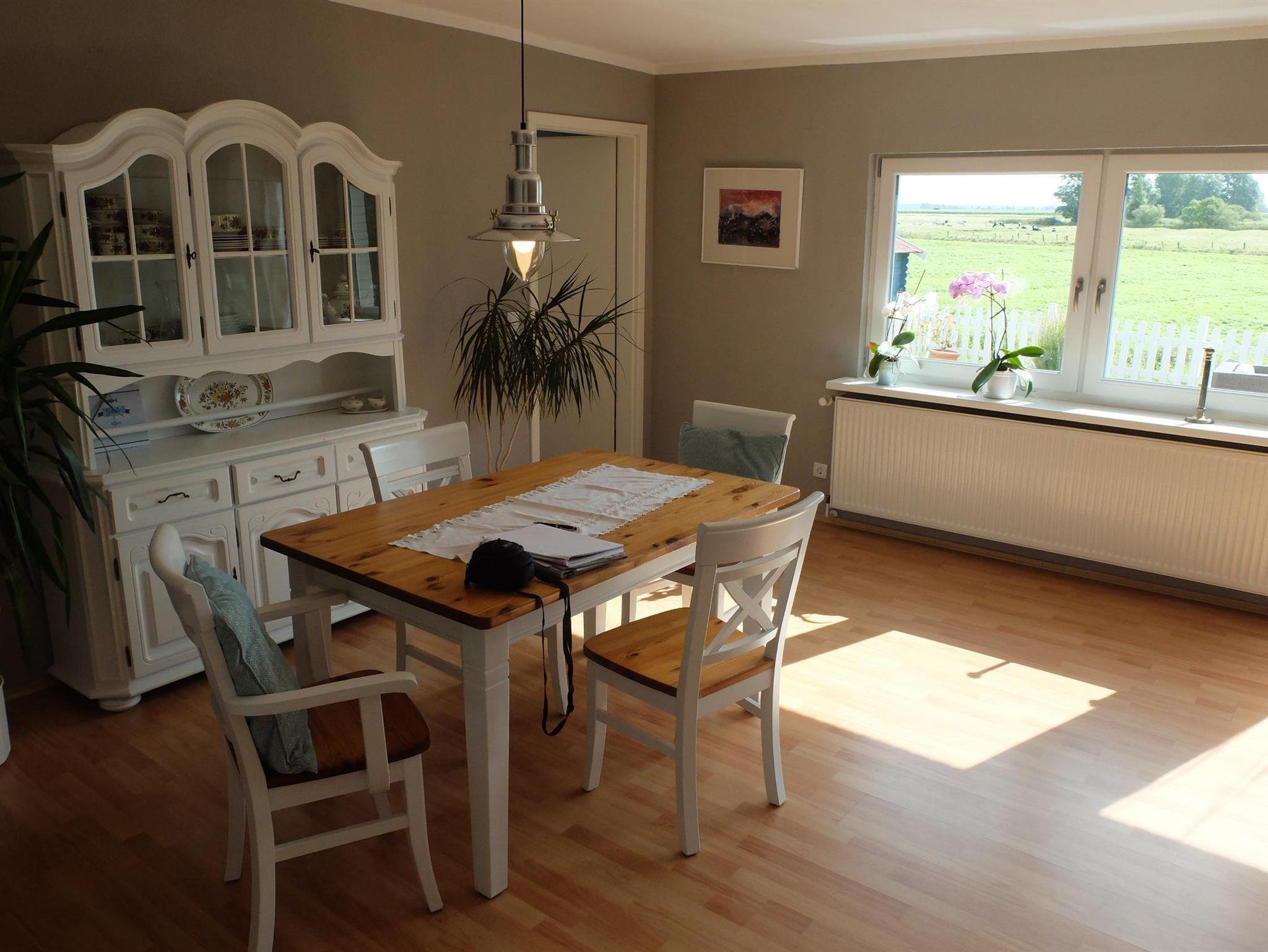 Das Ferienhaus liegt rund 1350 Meter vor Friedrichstadt südlich der Treene neben dem Bungalow des Vermieters. Ideale Lage für Feriengäste mit Hunden, die auf Anfrage willkommen sind. Die Ferienhaushälfte wurde 2023 renoviert und für die Gäste im Landhausstil modern und komfortabel eingerichtet. Sie ist ein idealer Ausgangspunkt, um schöne Tagestouren zu unternehmen. Entdecken Sie die Holländersiedlung Friedrichstadt an der Flusslandschaft zwischen Eider und Treene. Die umliegende Moor- und Waldlandschaft sind ideal für Angler, Kanuten, Wanderer, Fahrradfahrer und Naturliebhaber. Das Eidersperrwerk, Tönning, St. Peter-Ording oder Westerhever mit dem Leuchtturm und der Sandbank sowie Husum laden zu Tagestouren und zum Strandurlaub ein. Tagesausflüge zu den Halligen und den Nordfriesischen Inseln Sylt, Amrum, Föhr und Pellworm werden regelmäßig angeboten.