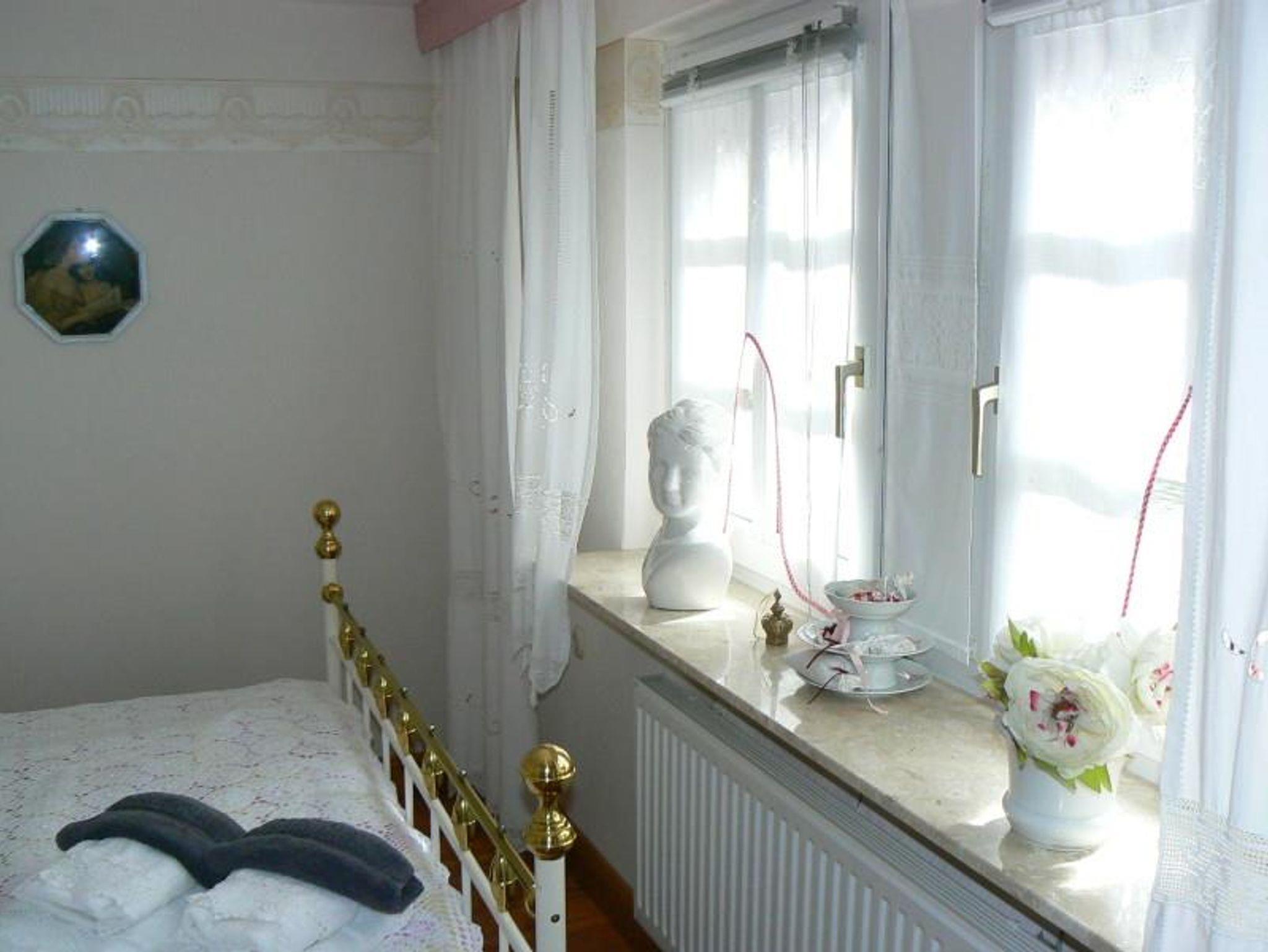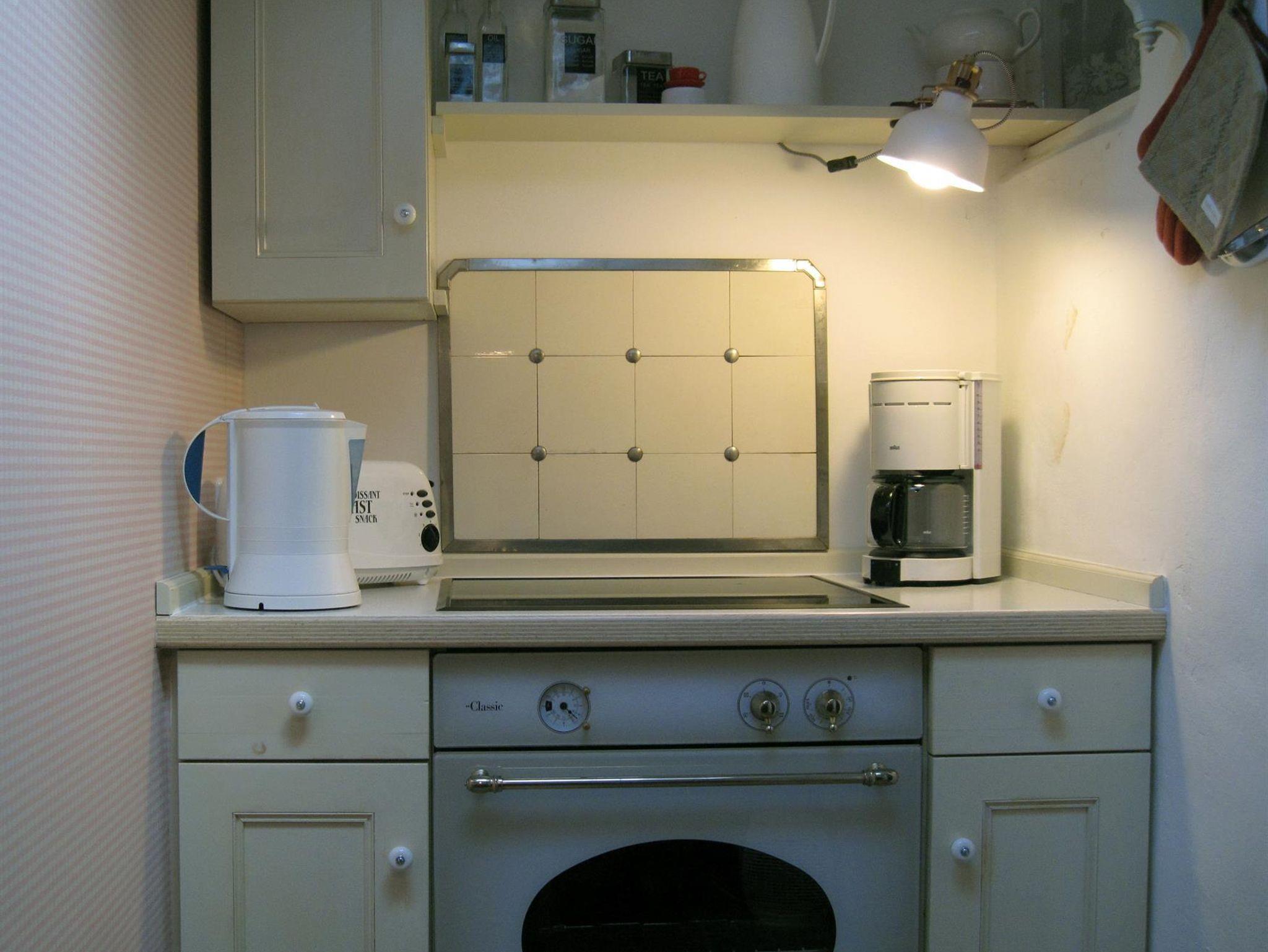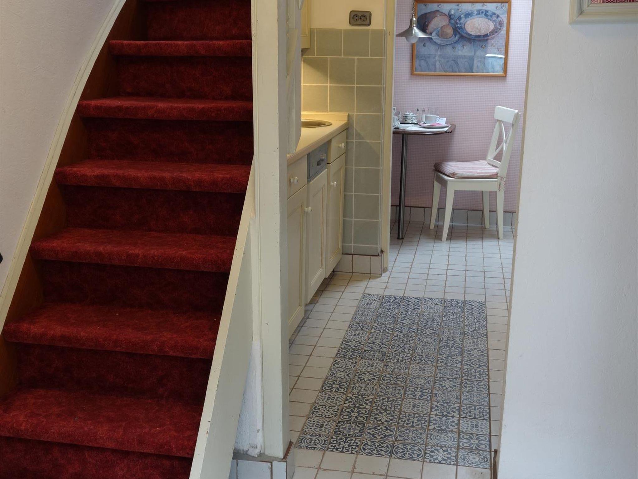 Den Charme des alten Hauses bewahrend, sind die zwei Zimmer auf zwei Etagen (ca. 40 qm²) mit vielen ausgefallenen antiken Stücken und Accessoires möbliert.