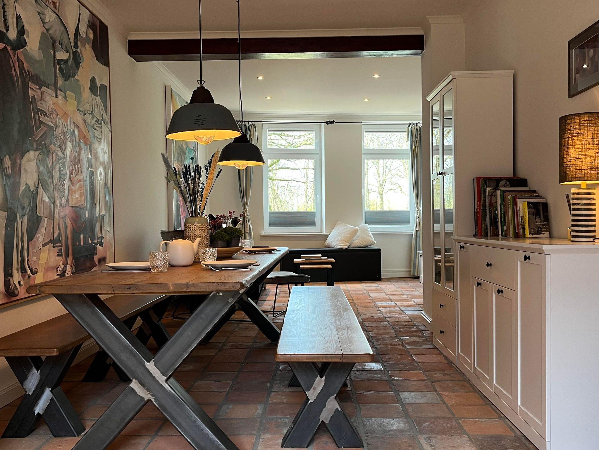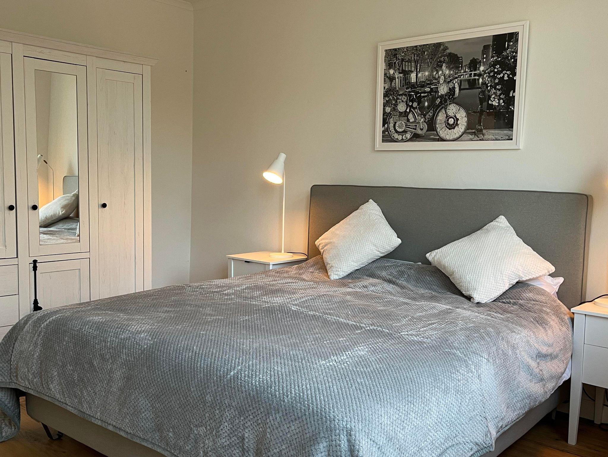 Das Grachtenhaus verfügt über zwei sehr schöne Schlafzimmer für je zwei Personen im ersten Stock und ein ausziehbares hochwertiges, ausziehbares Schlafsofa im Wohnzimmer im Erdgeschoss. Die Küche hat eine Spülmaschine, Kühlschrank mit Eisfach und eine große Ausstattung von allem was das Herz begehrt, wenn man einen längeren Urlaub plant und gerne kocht. Es gibt zwei Badezimmer – ein größeres Badezimmer im ersten Stock mit Dusche/Badewanne und ein Duschbad/Gästebad im Erdgeschoss. Im 2. Stock gibt es einen Yogaraum, der gegen Absprache gegen Aufpreis dazugebucht werden kann. Für größere Gruppen sind ebenso die beiden Loftwohnungen (pro Apartment max. 3 Personen) dazubuchbar. Abstellmöglichkeit für Fahrräder ist vorhanden.